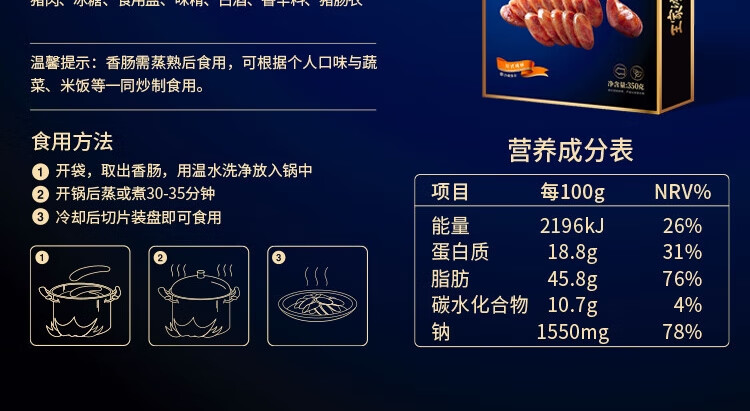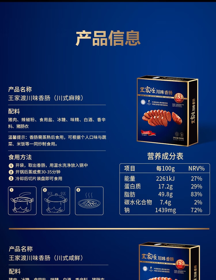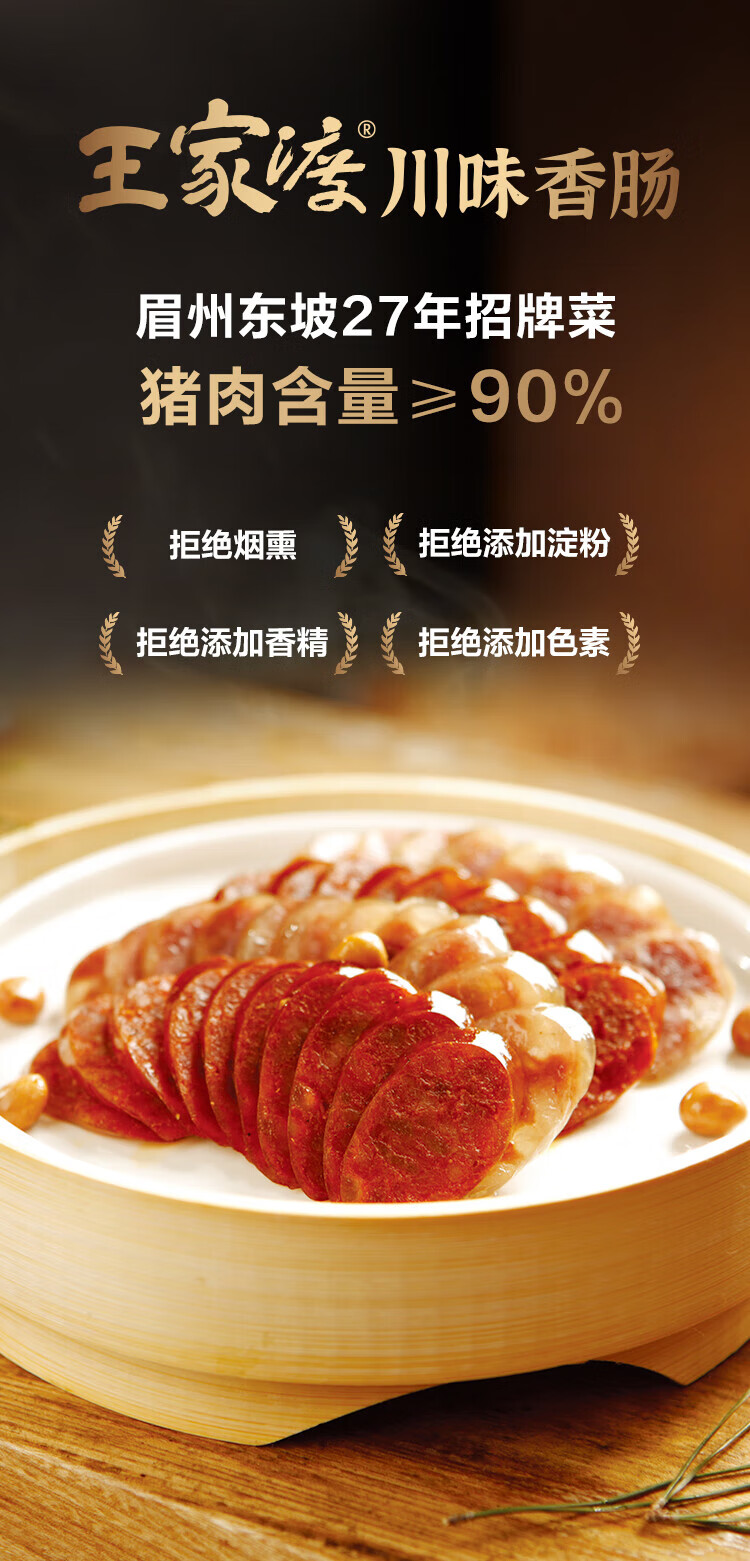 王家渡川味腊肠非烟熏 四川特产麻辣香肠眉州东坡腊味礼盒预制菜 350g*2盒(麻辣+咸鲜)