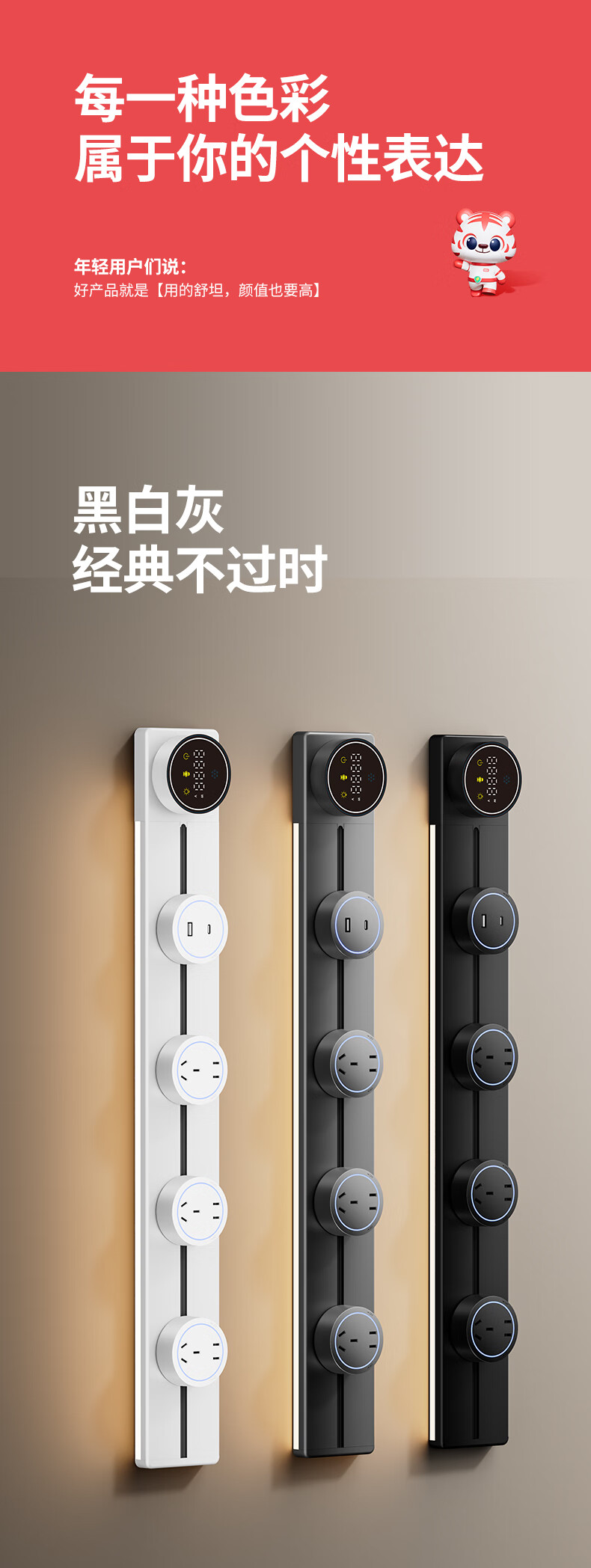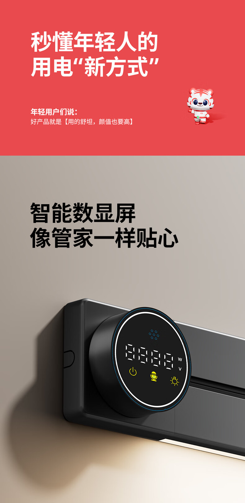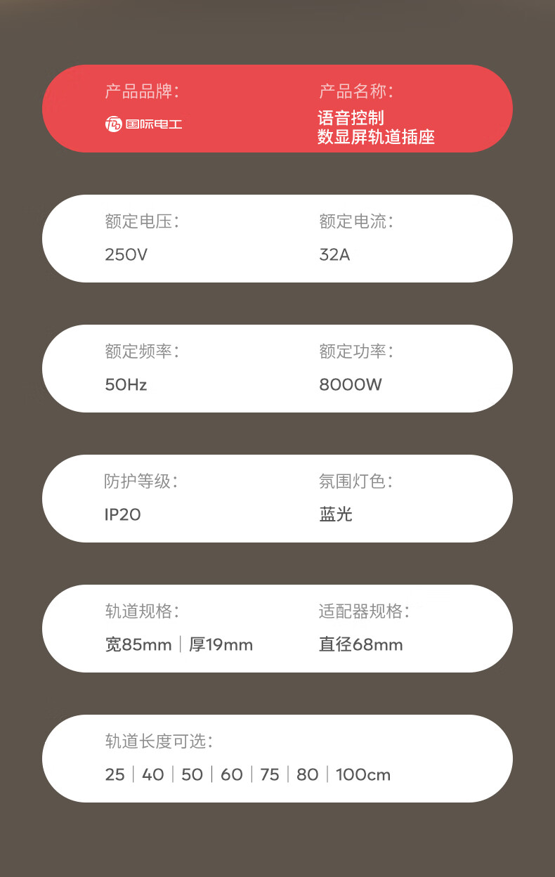 FDD国际电工数显智能移动轨道插座语音触摸感应壁挂排插厨房明装电源插板白色 屏显智能语音带灯【40CM*2个五孔】