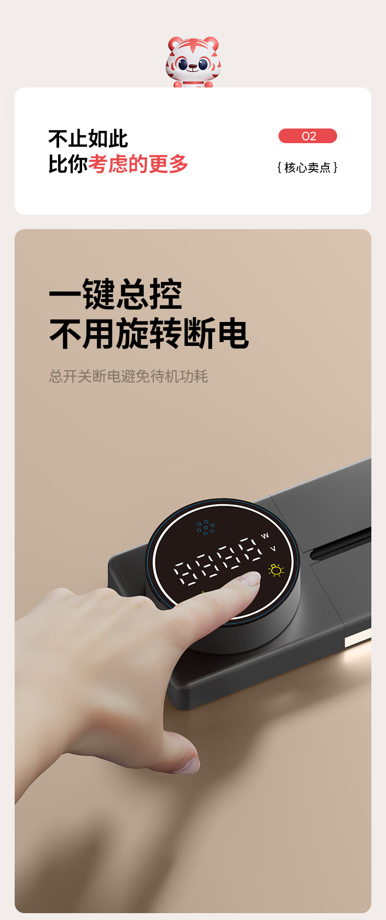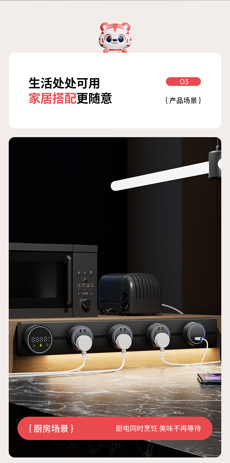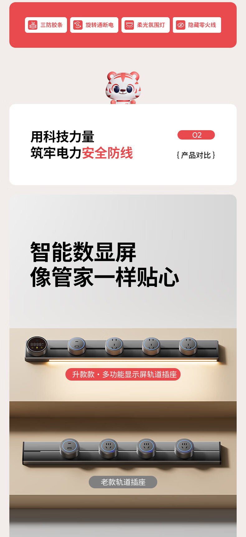 FDD国际电工数显智能移动轨道插座语音触摸感应壁挂排插厨房明装电源插板白色 屏显智能语音带灯【40CM*2个五孔】