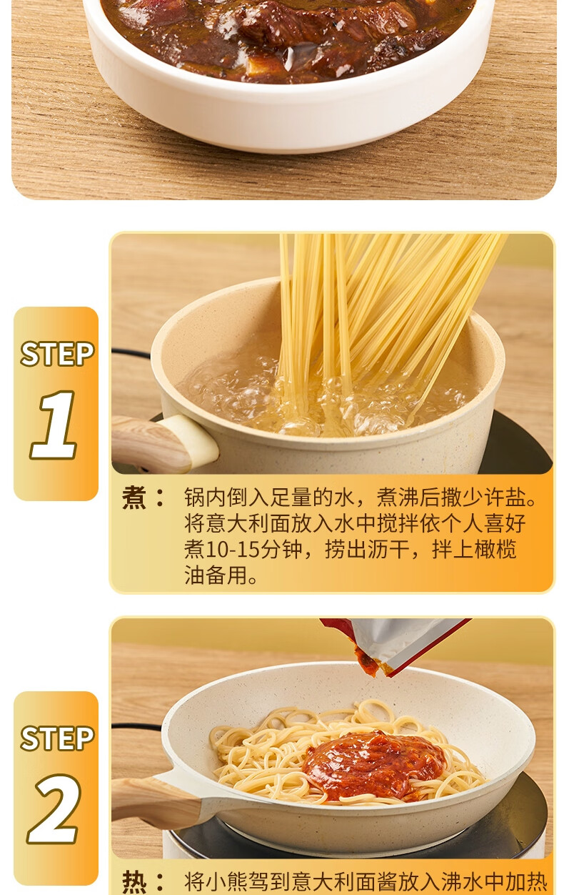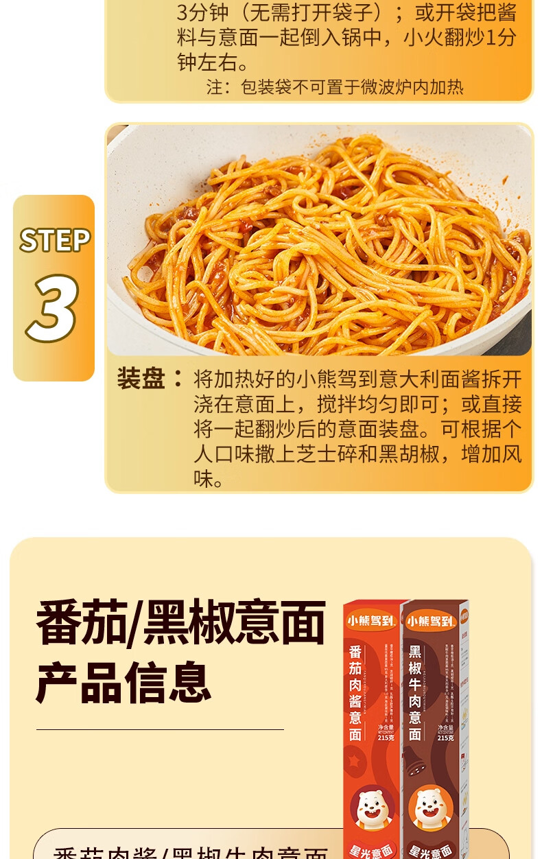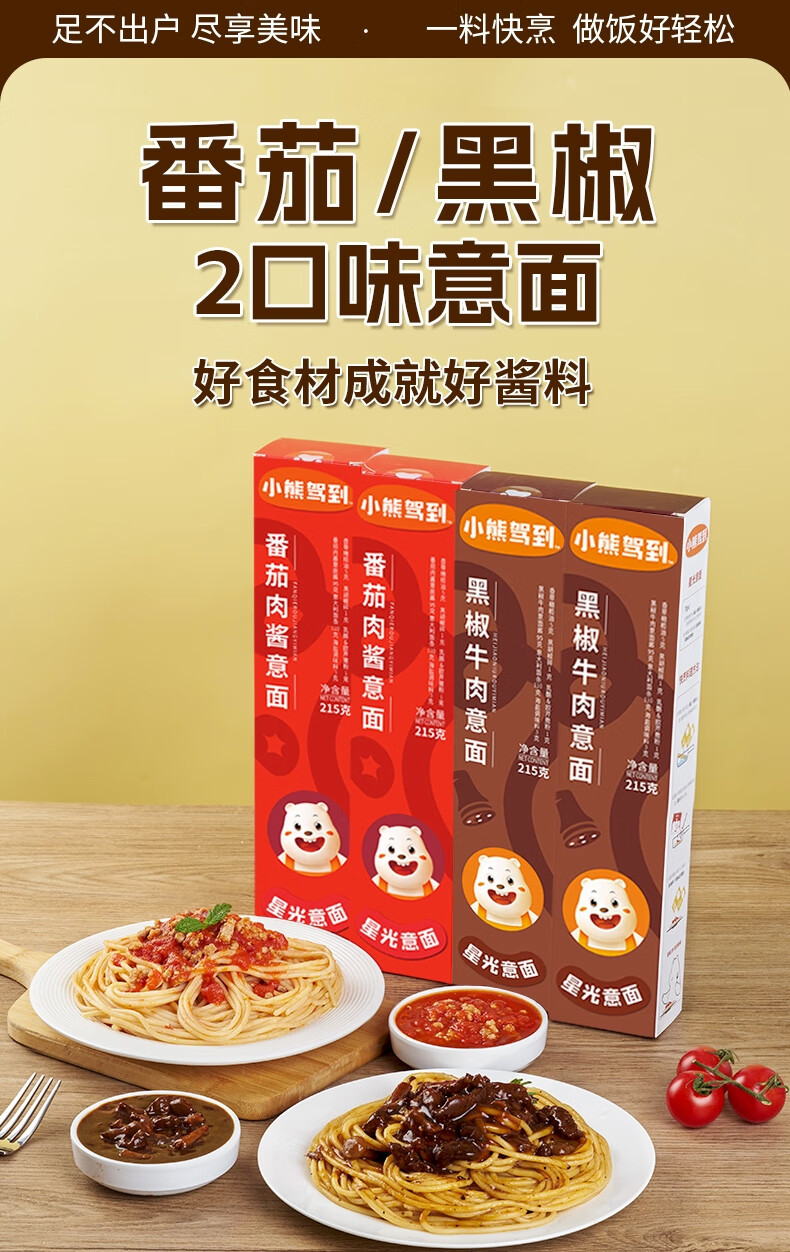 小熊驾到 番茄肉酱意面 儿童速食肉酱意大利面方便面意粉通心粉面 番茄肉酱意面 215g*4盒