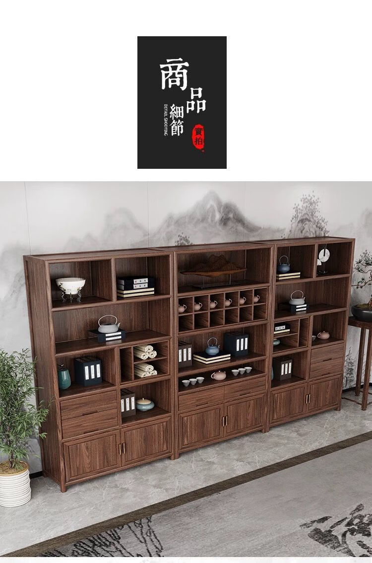 弘星隆新中式老榆木茶室展示柜实木博古架办公柜书柜多宝阁酒柜 左边柜1