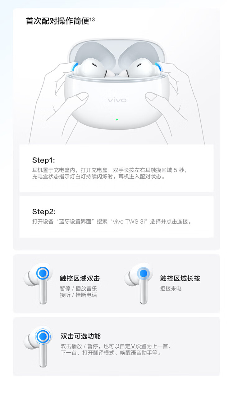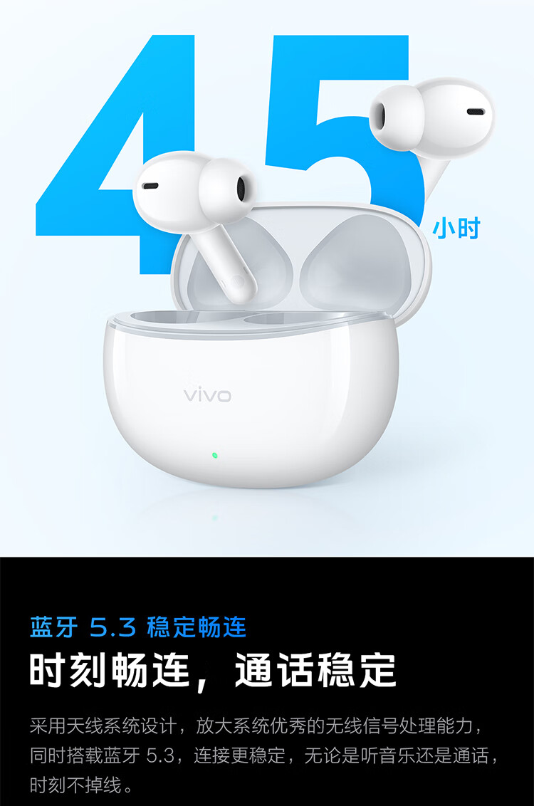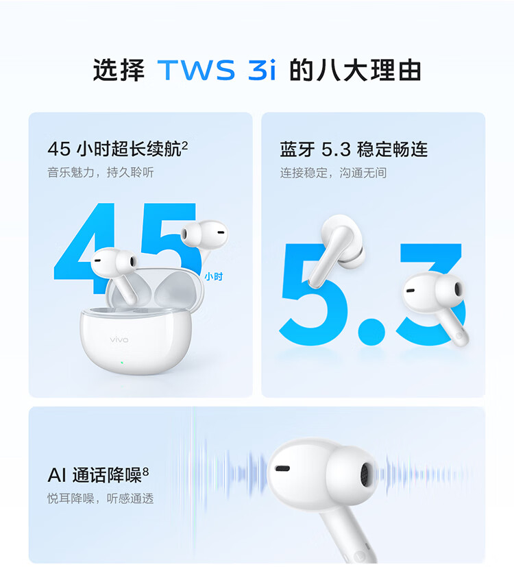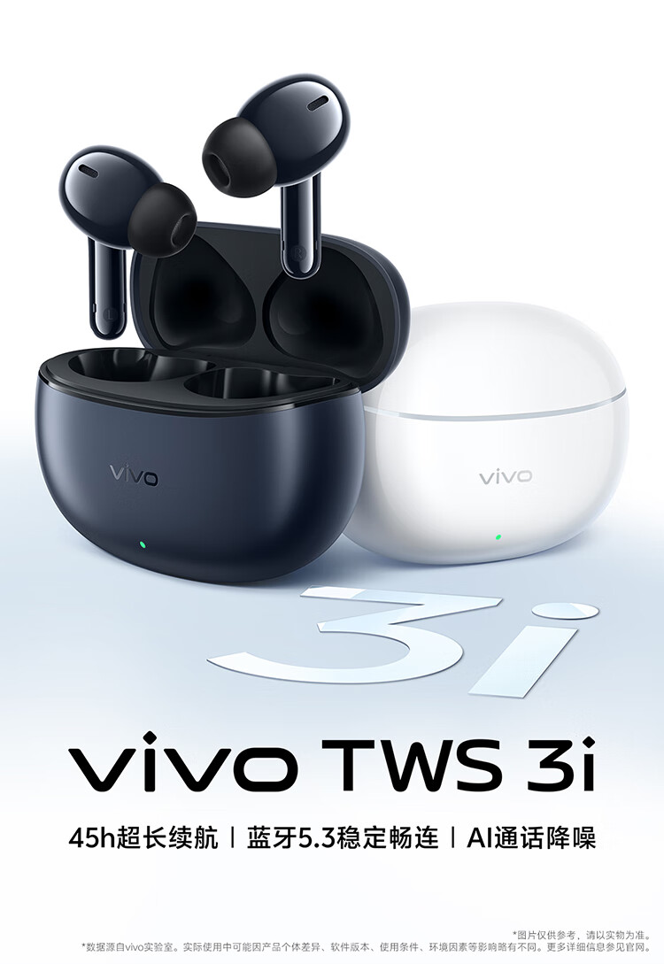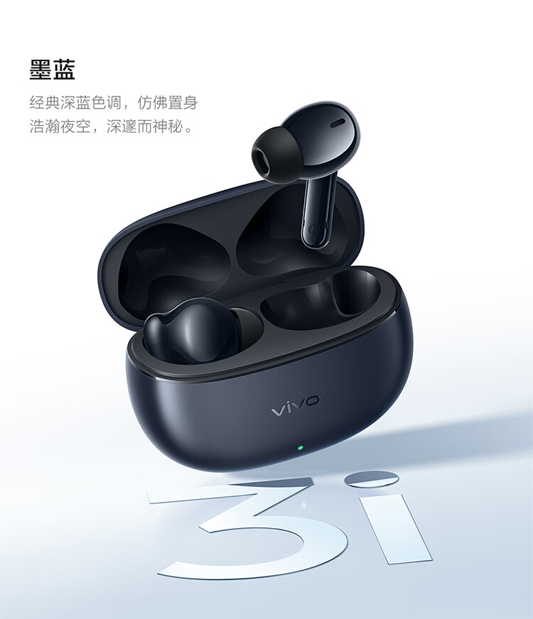 vivoTWS 3i 真无线蓝牙耳机 长续航AI通话降噪蓝牙5.3 苹果华为小米手机适配入耳式 墨蓝情人节送礼物