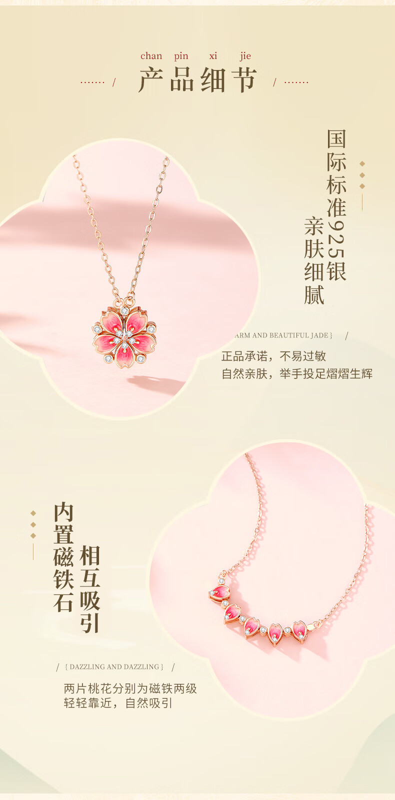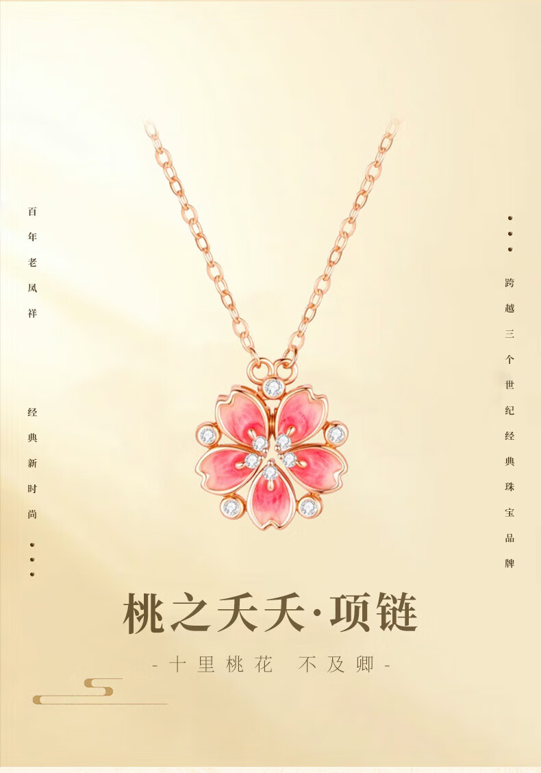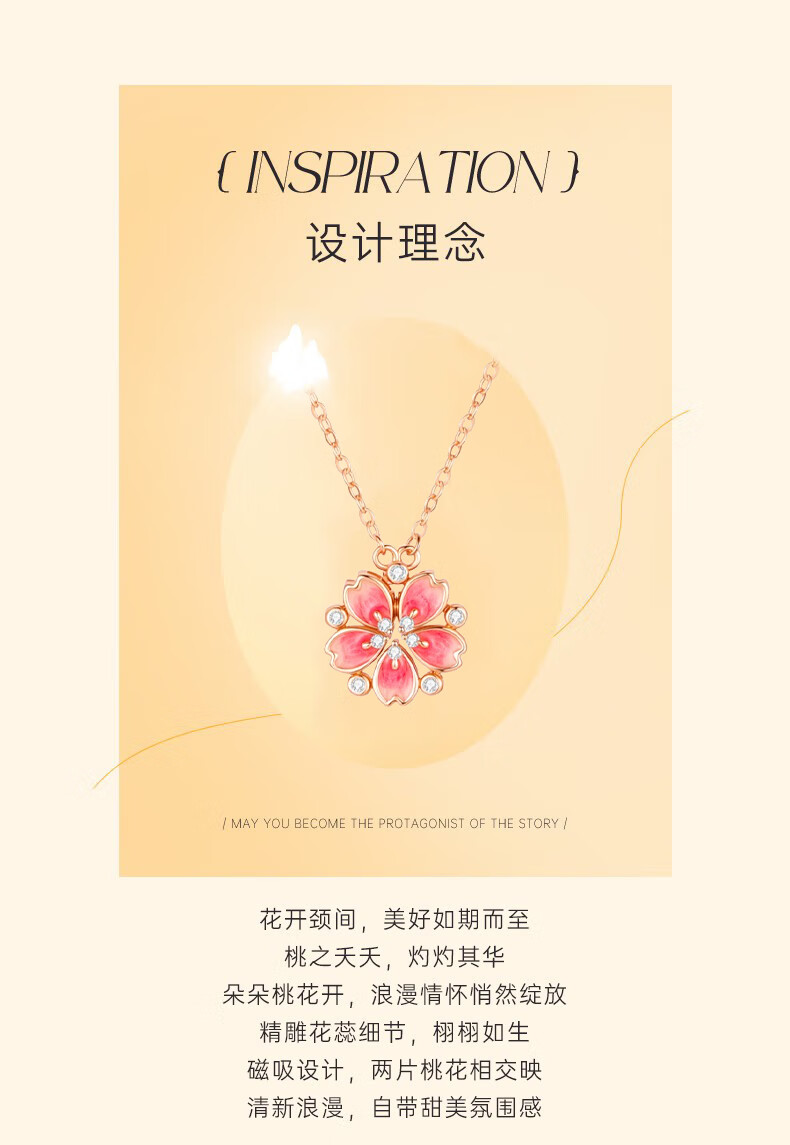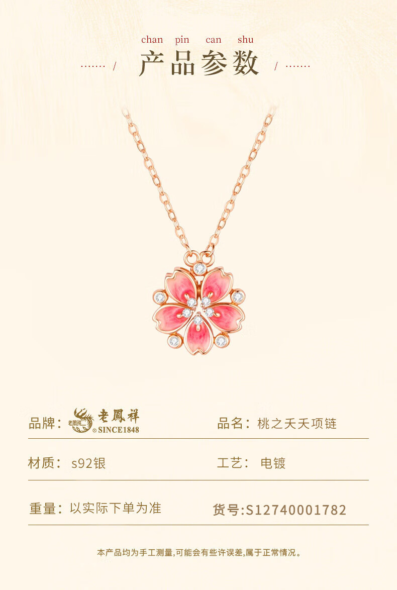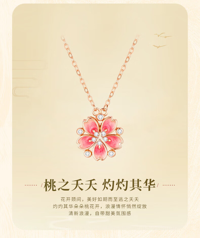 老凤祥轻奢S925银项链女桃花经典百搭吊坠首饰纪念日生日礼物女士送女友 G款*925银桃之夭夭项链【品牌礼盒】