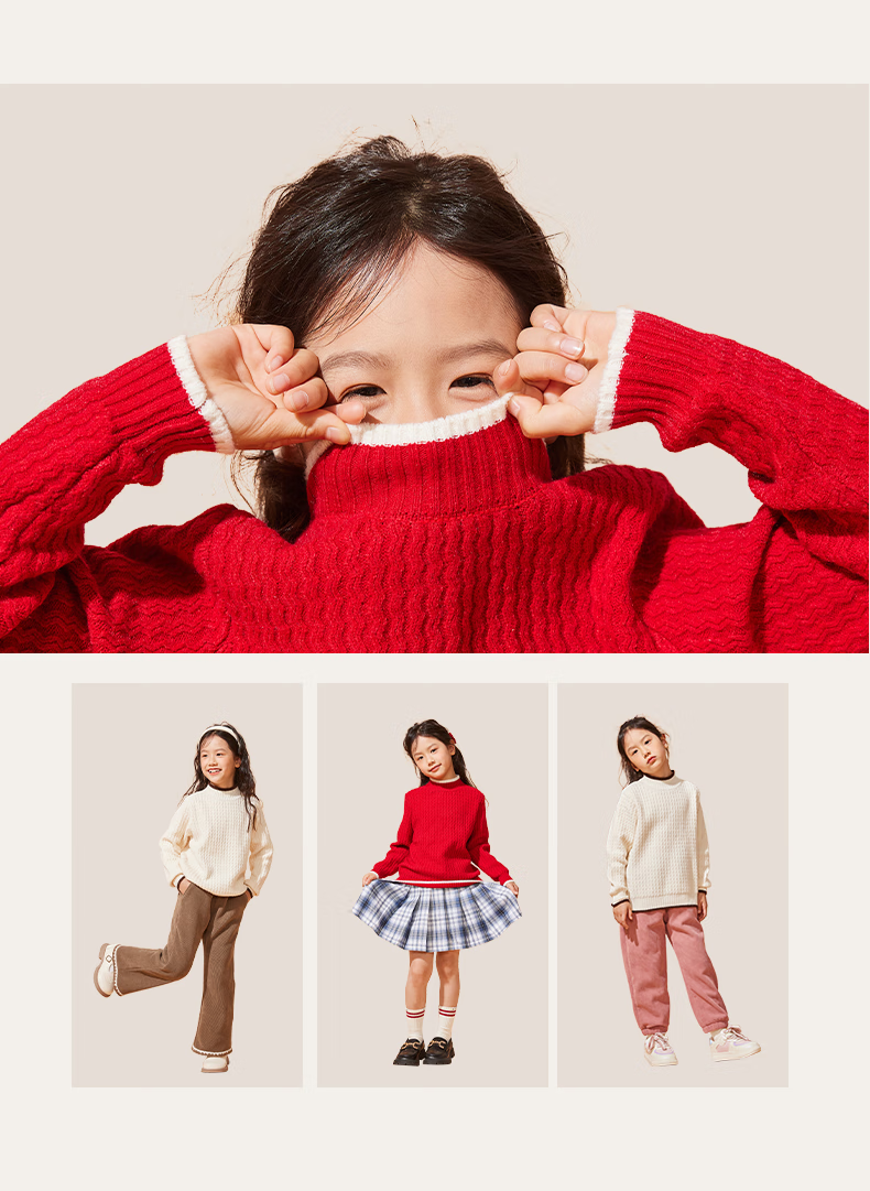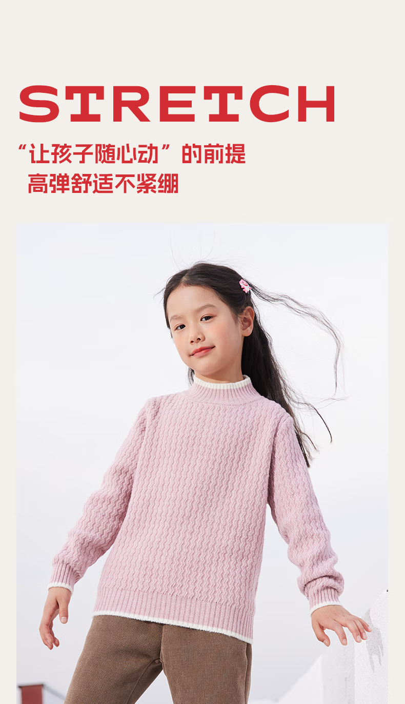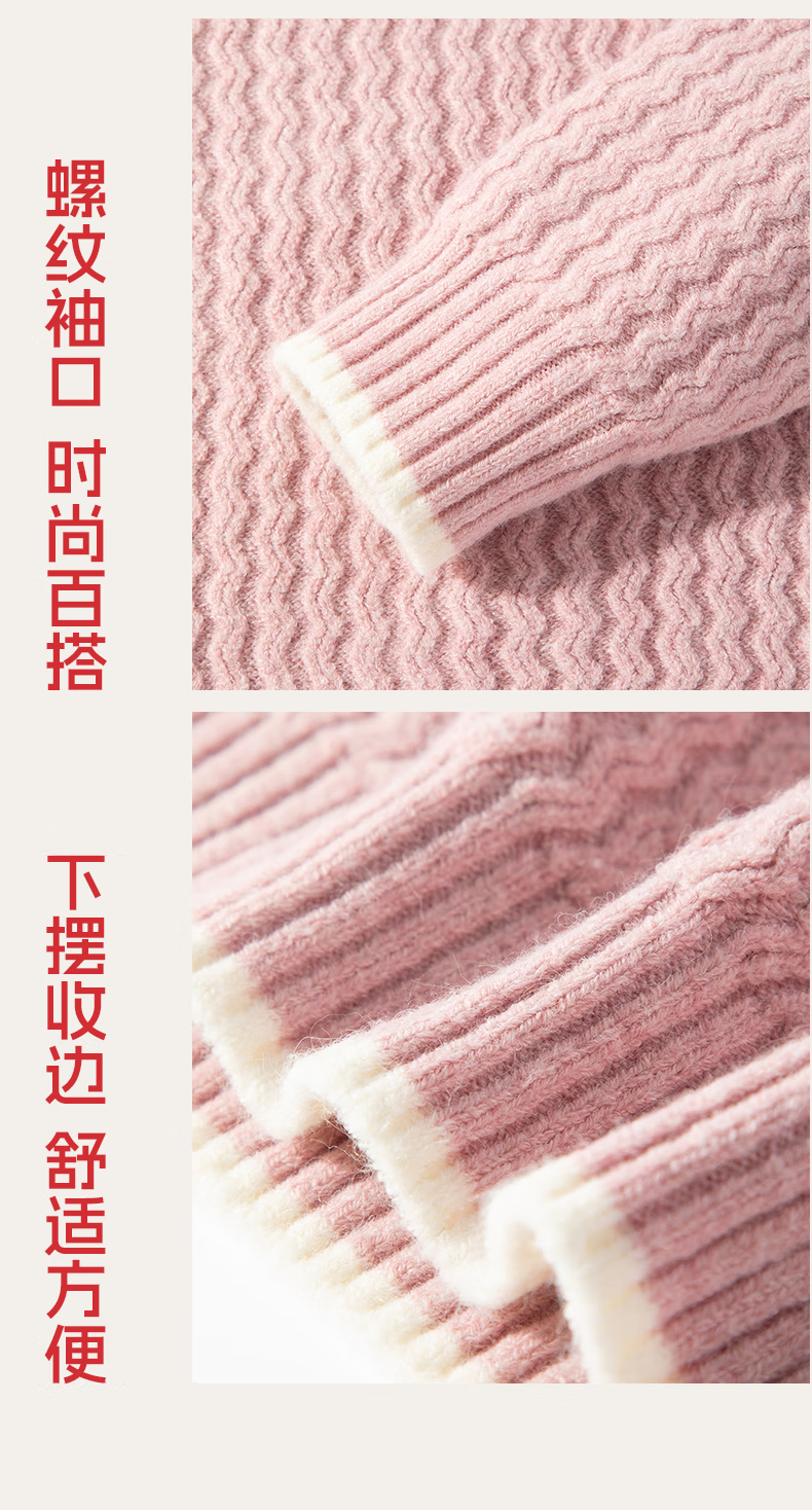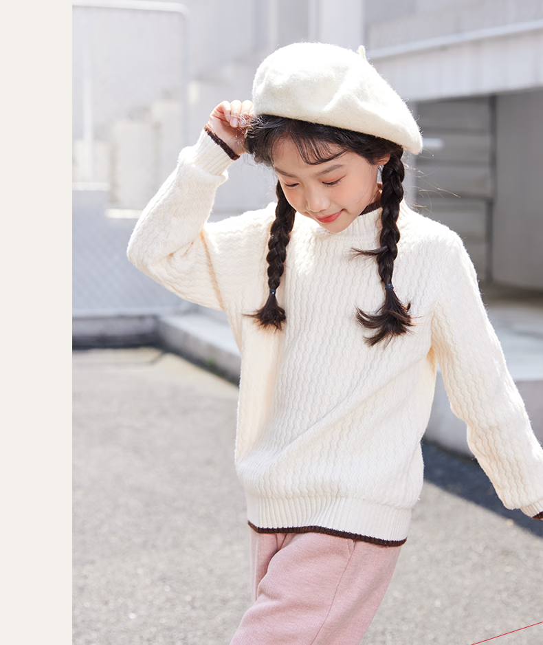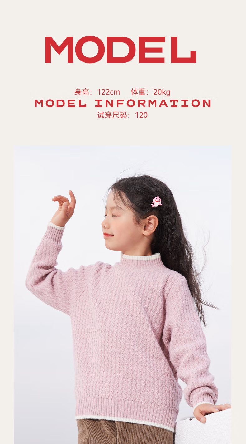 小猪班纳儿童毛衣2025冬季新款女童舒适保暖针织衫时髦洋气女孩秋冬款上衣 杏/纯色 140