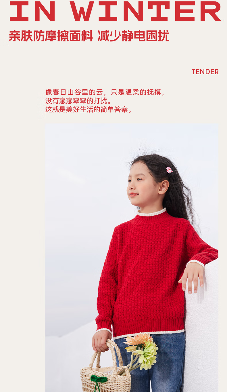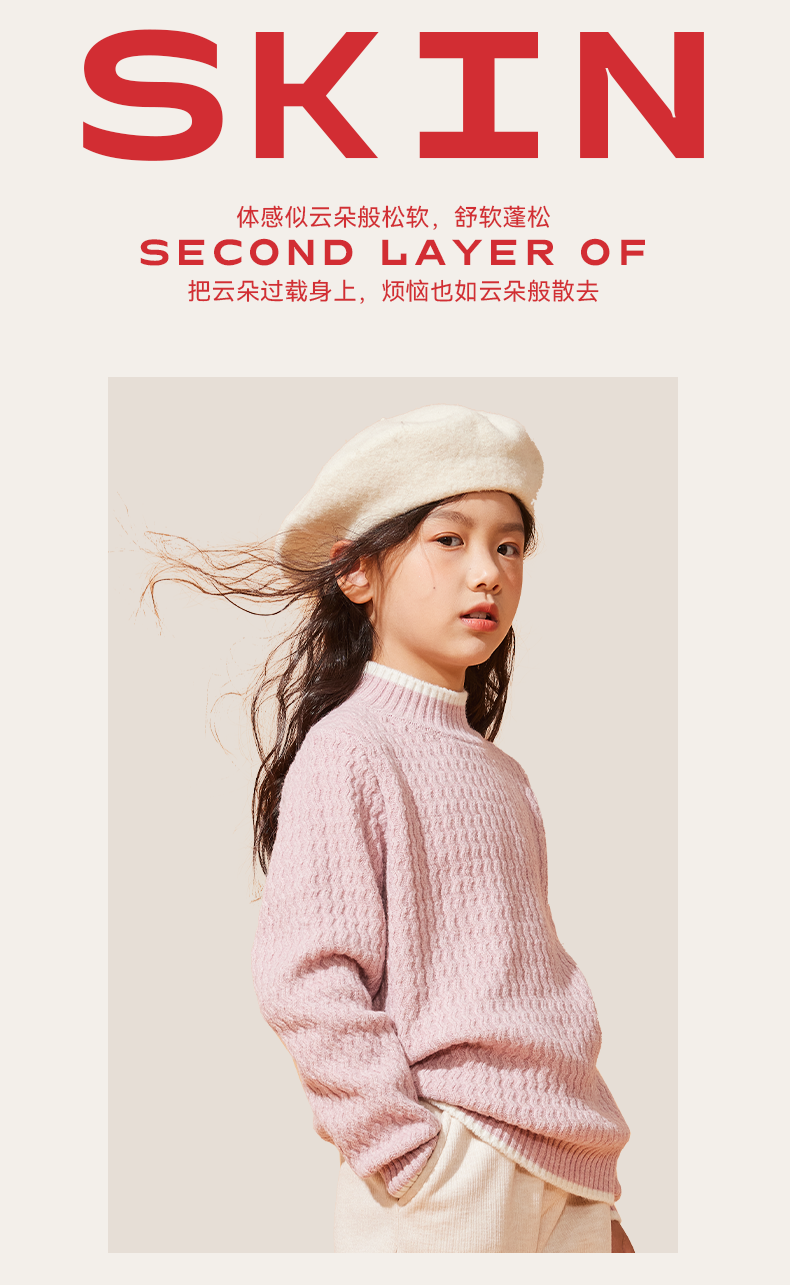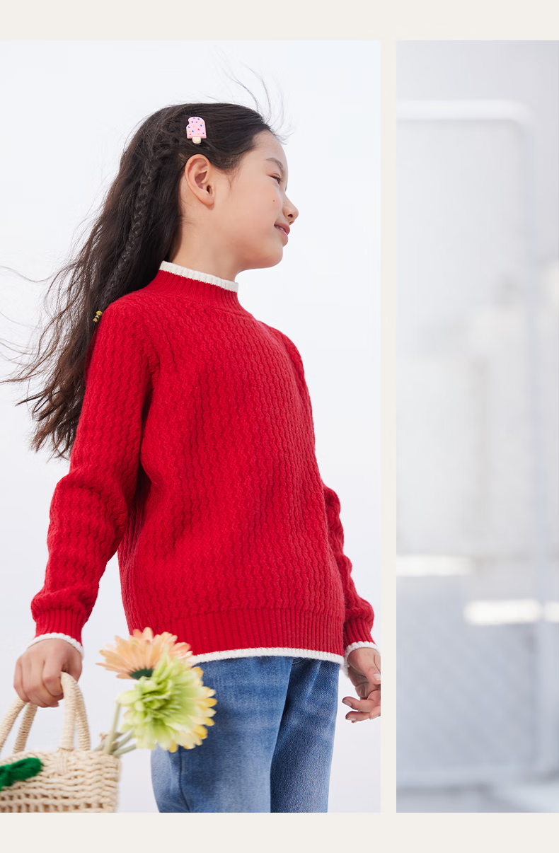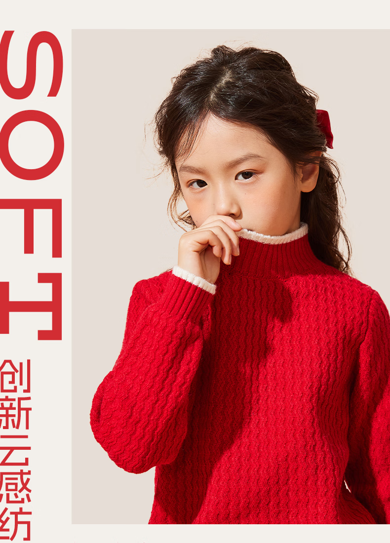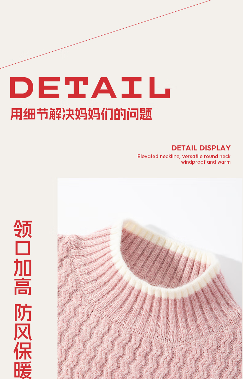 小猪班纳儿童毛衣2025冬季新款女童舒适保暖针织衫时髦洋气女孩秋冬款上衣 杏/纯色 140
