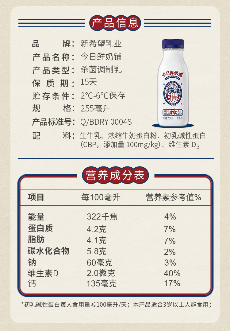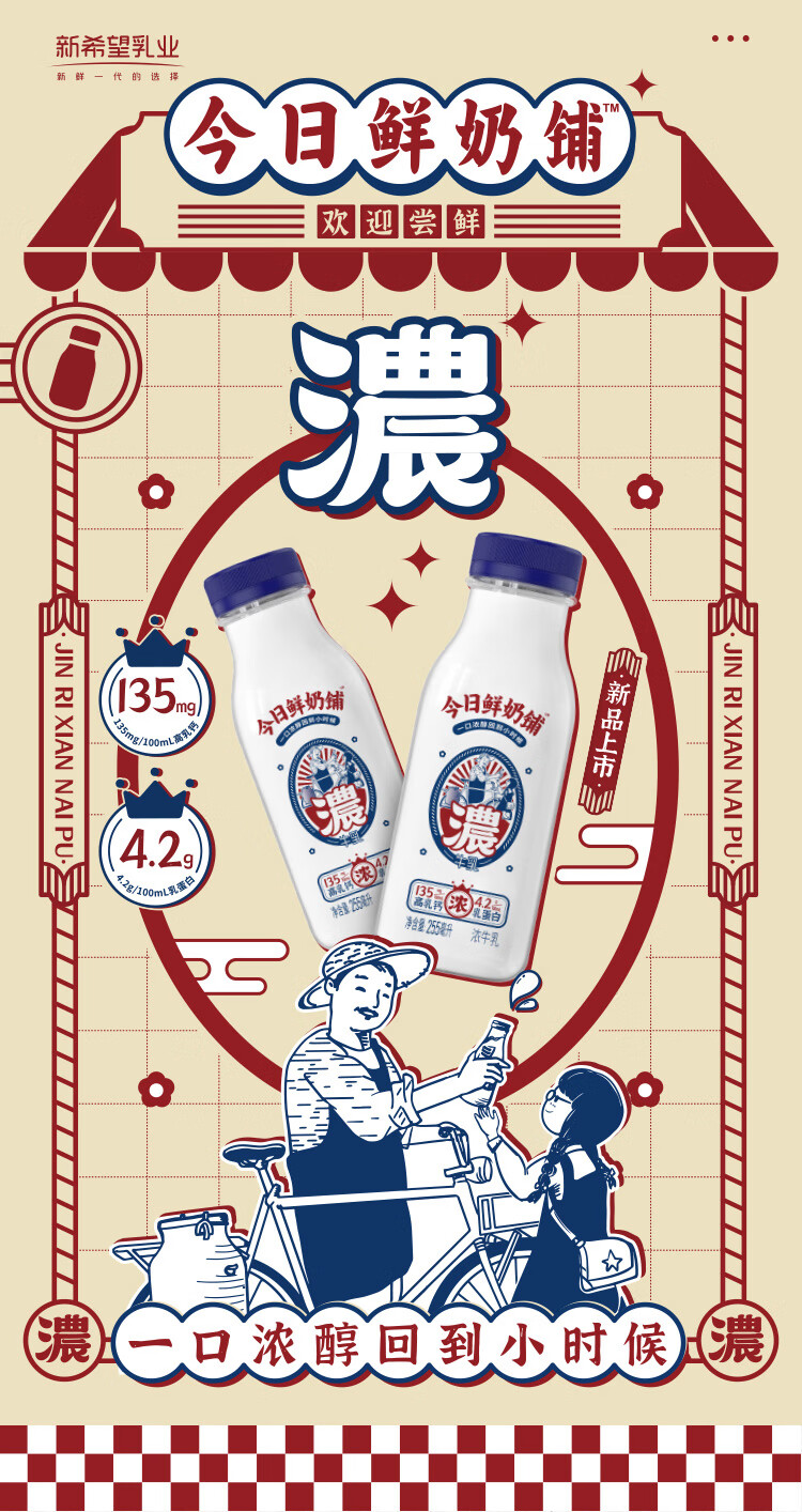 新希望 今日鲜奶铺牛乳 低温牛奶 营养儿童早餐奶 纯正牧场奶源 更营养珍稀A2牛乳200ml*12