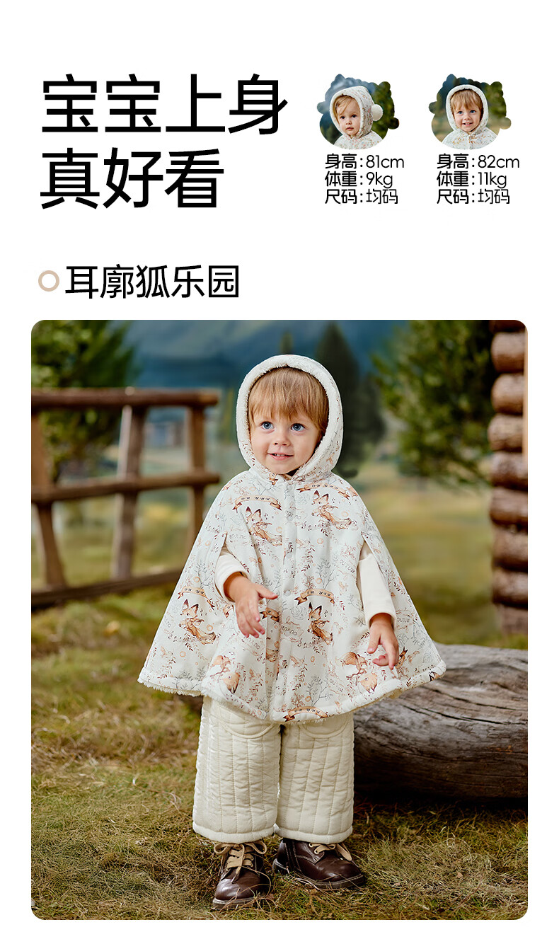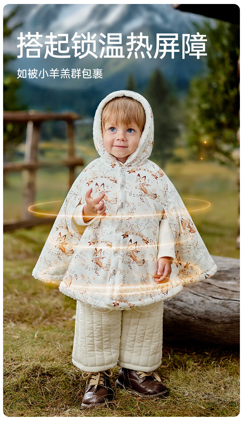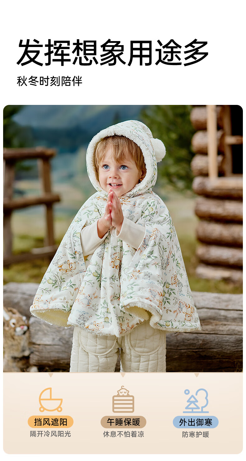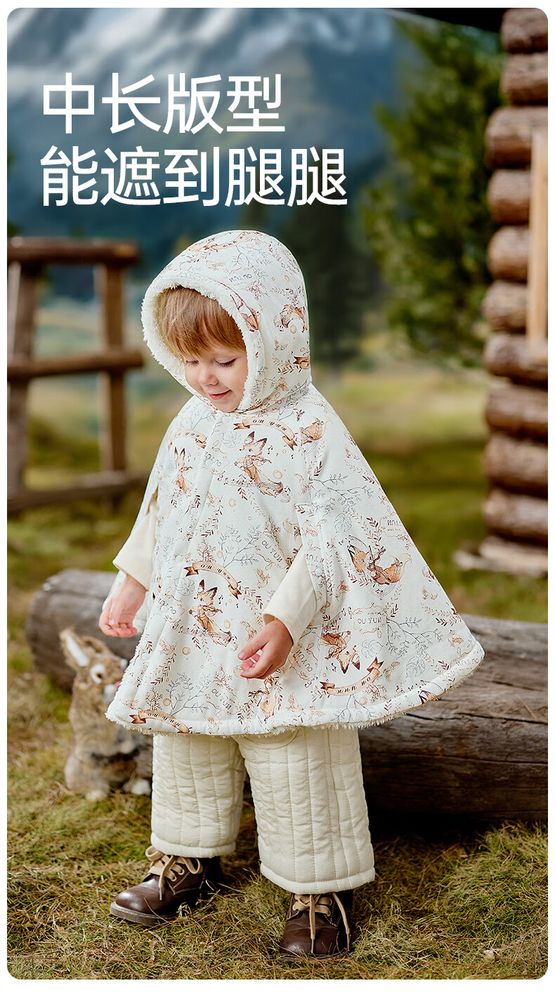 欧孕婴儿斗篷秋冬季加绒宝宝外出防风披肩可伸手儿童外套保暖冬装 耳廓狐乐园(中长款)北极绒 均码