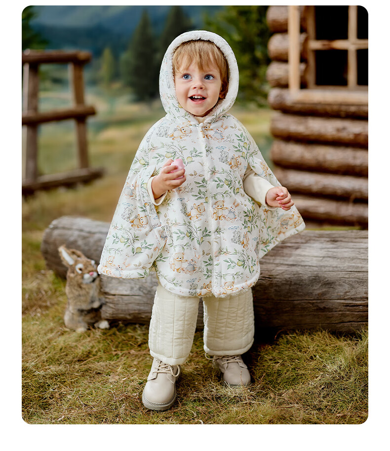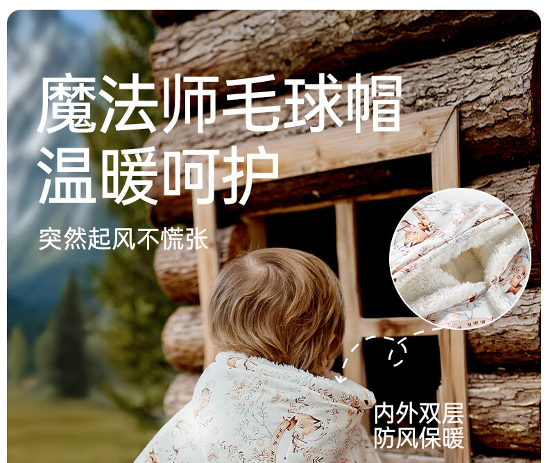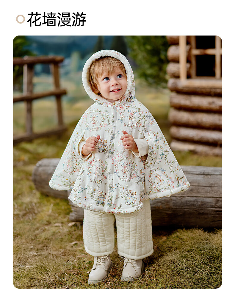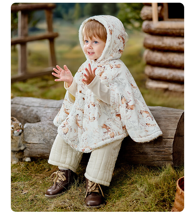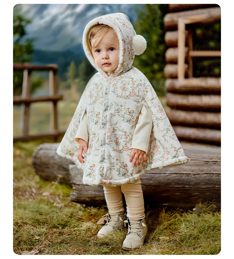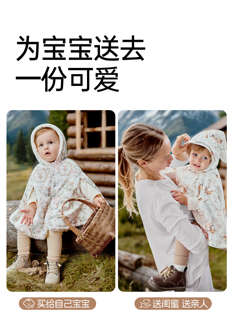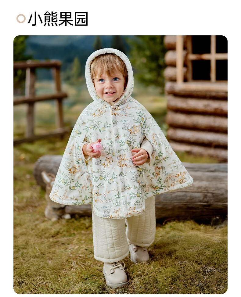 欧孕婴儿斗篷秋冬季加绒宝宝外出防风披肩可伸手儿童外套保暖冬装 耳廓狐乐园(中长款)北极绒 均码