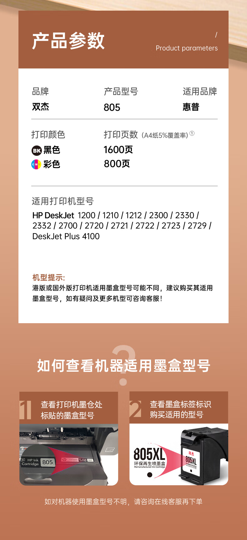 双杰805墨盒可加墨适用惠普2720墨盒 hp2700 2330 1210 1200 2300 1212 2721 2332 805XL墨盒打印机墨盒墨水