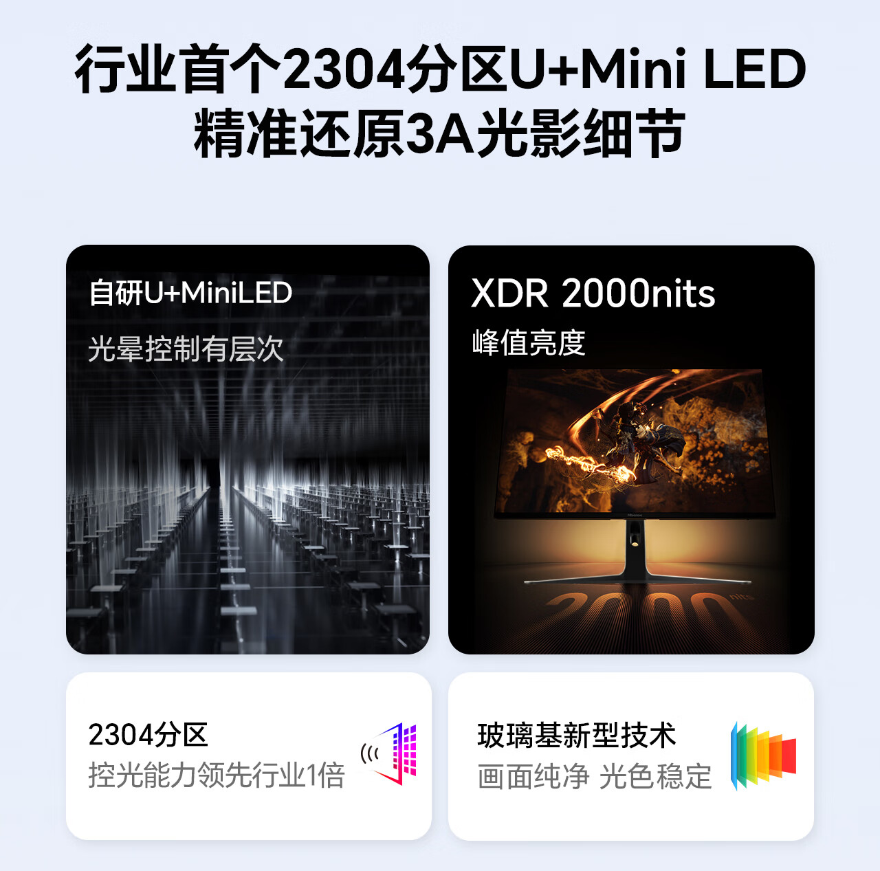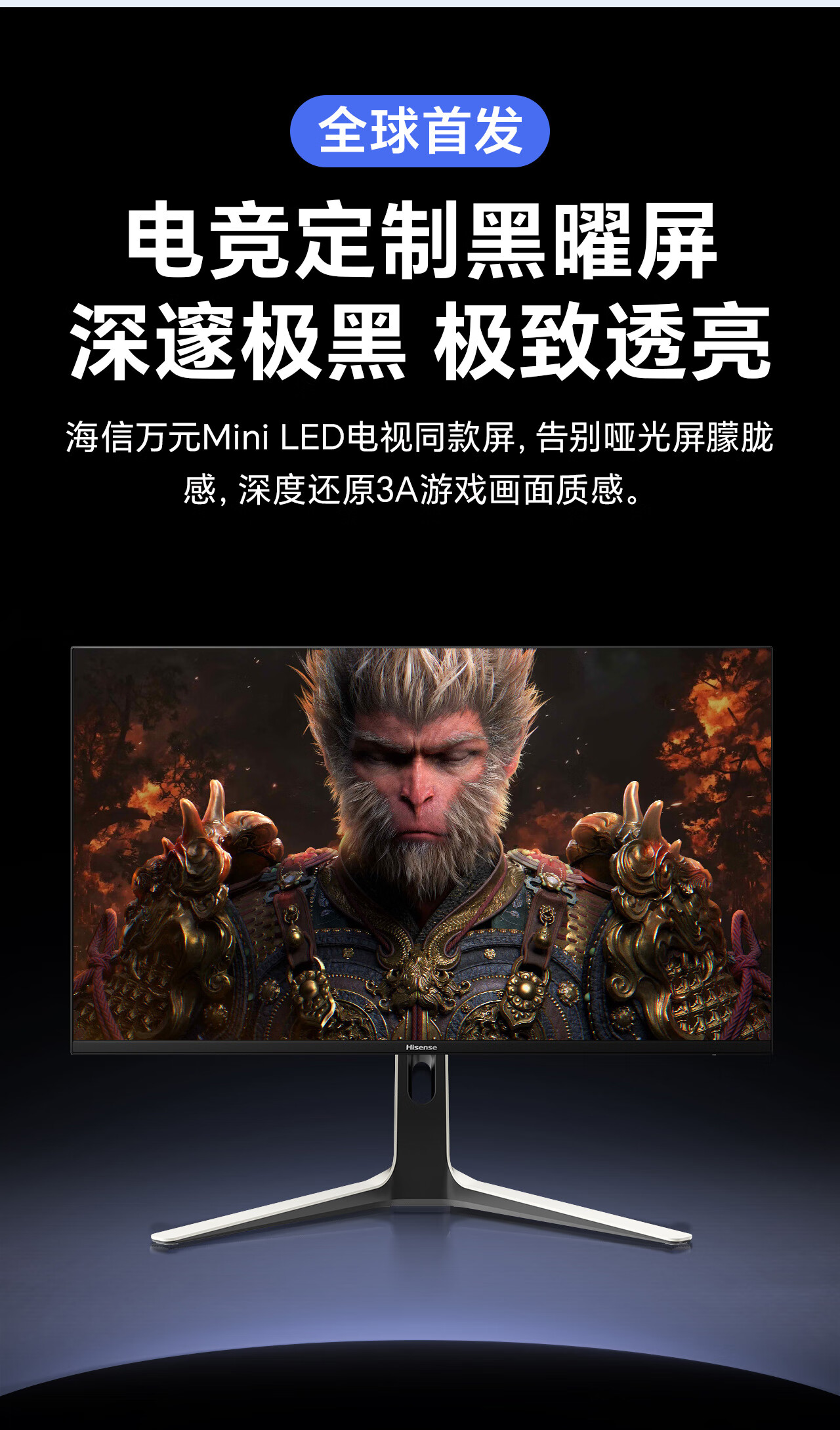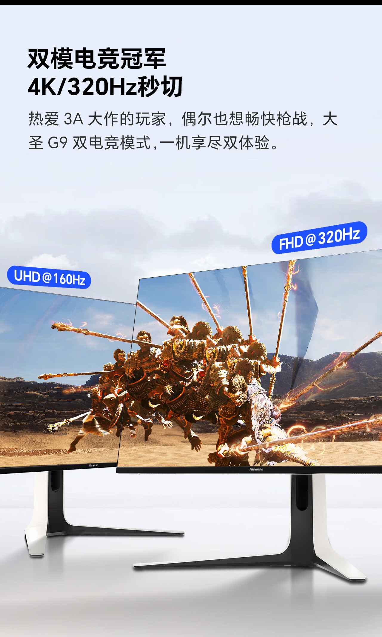 海信大圣G9 31.5英寸3A原画 黑曜屏 2304分区 U+MiniLED 4K160Hz双模 内置音响 冰川白 电竞显示器32G9