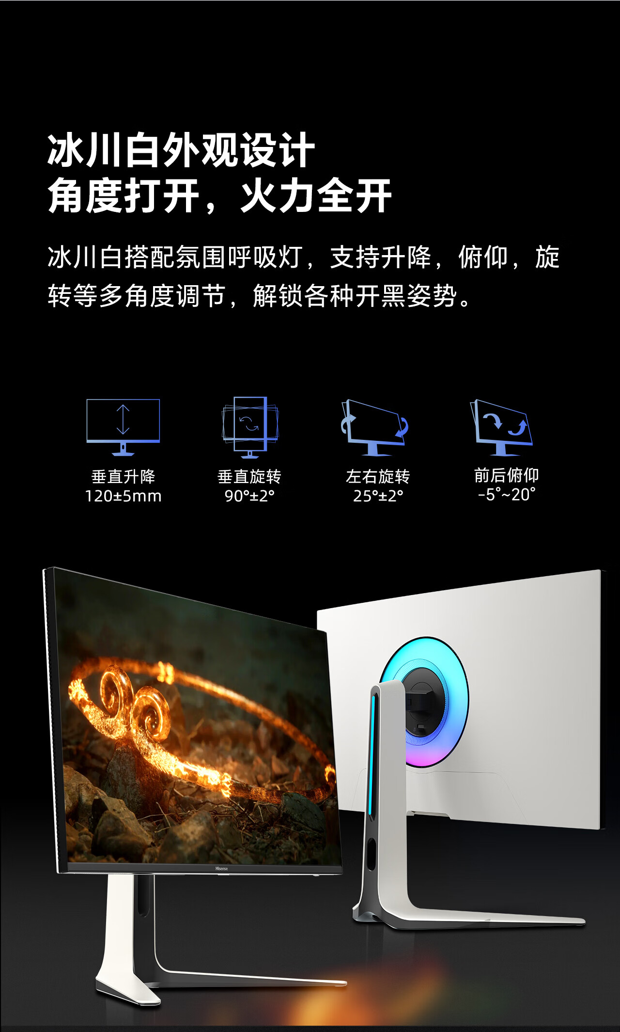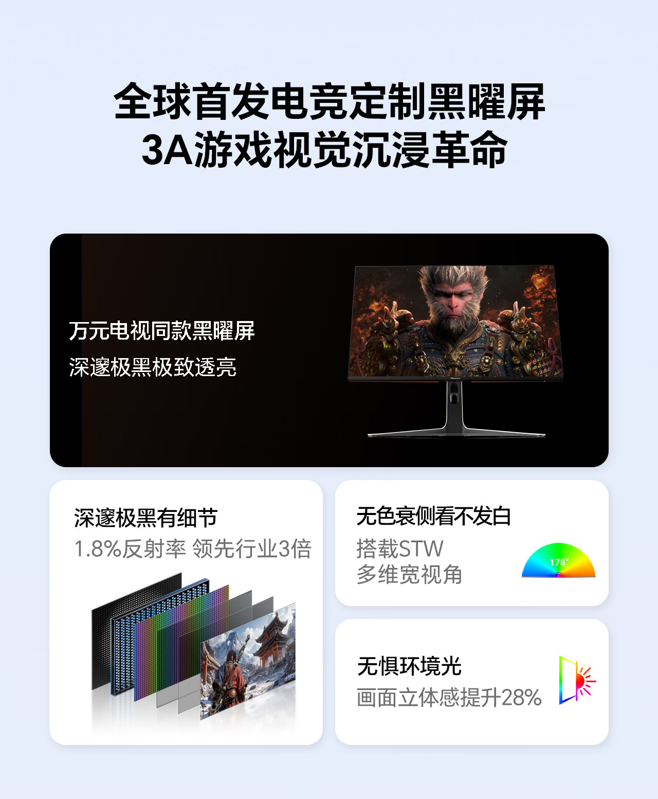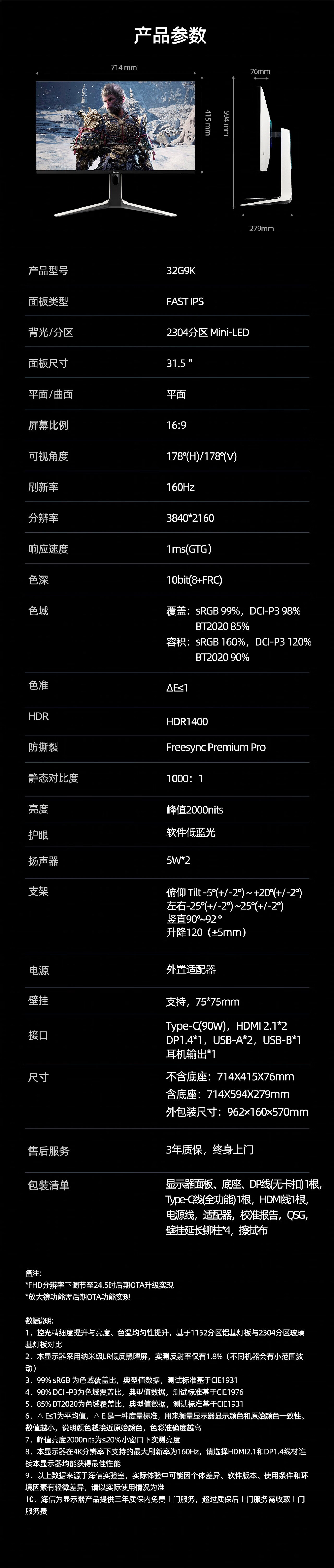 海信大圣G9 31.5英寸3A原画 黑曜屏 2304分区 U+MiniLED 4K160Hz双模 内置音响 冰川白 电竞显示器32G9