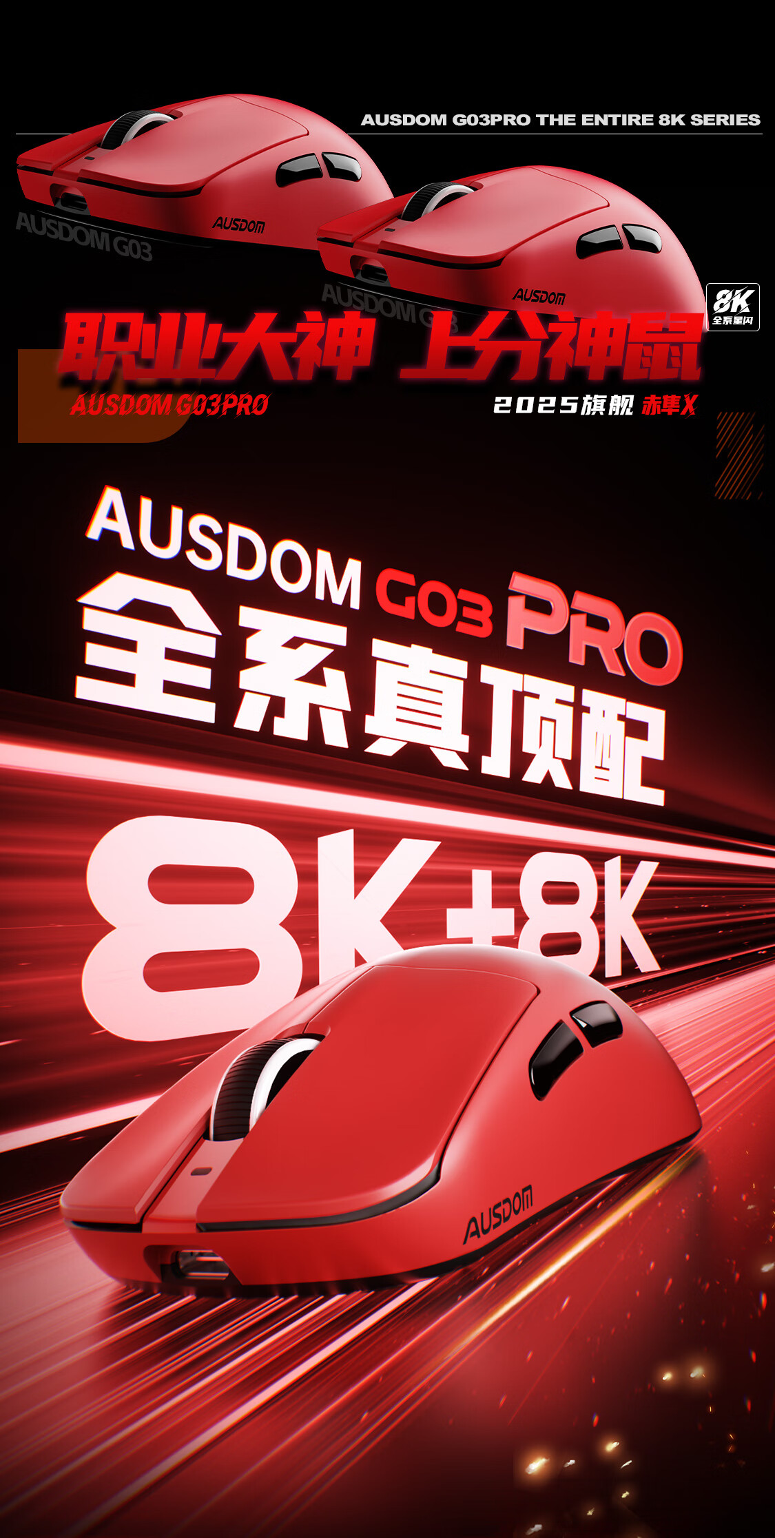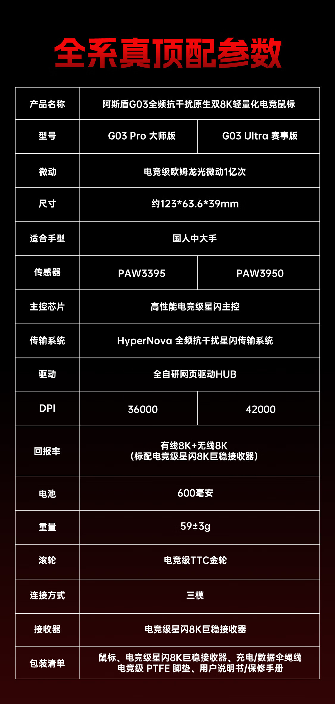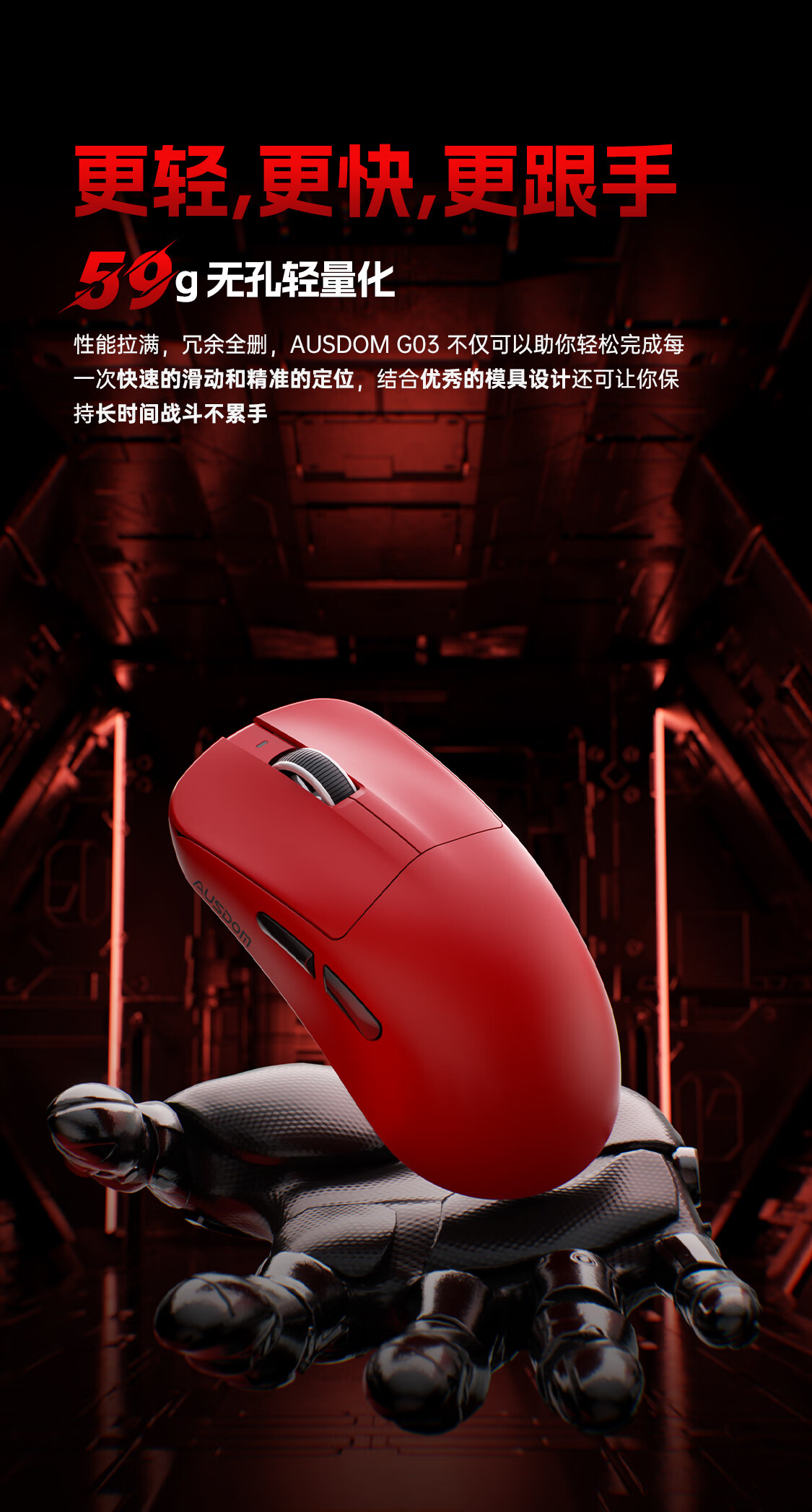 阿斯盾G03PRO大师版无线鼠标轻量化中大手专用电竞游戏鼠标原相3950引擎星闪原生双8K回报率赤隼红