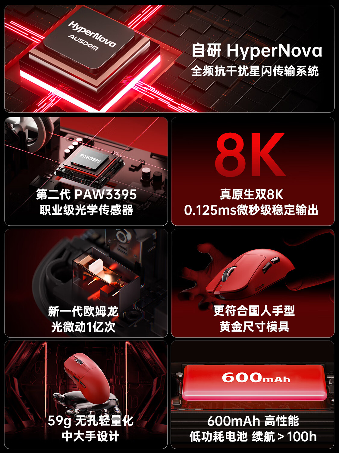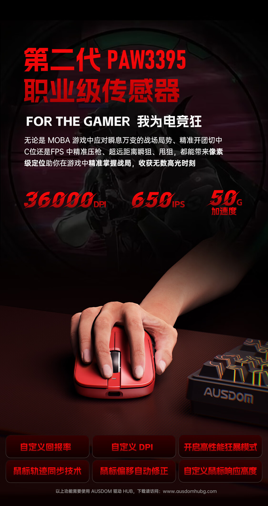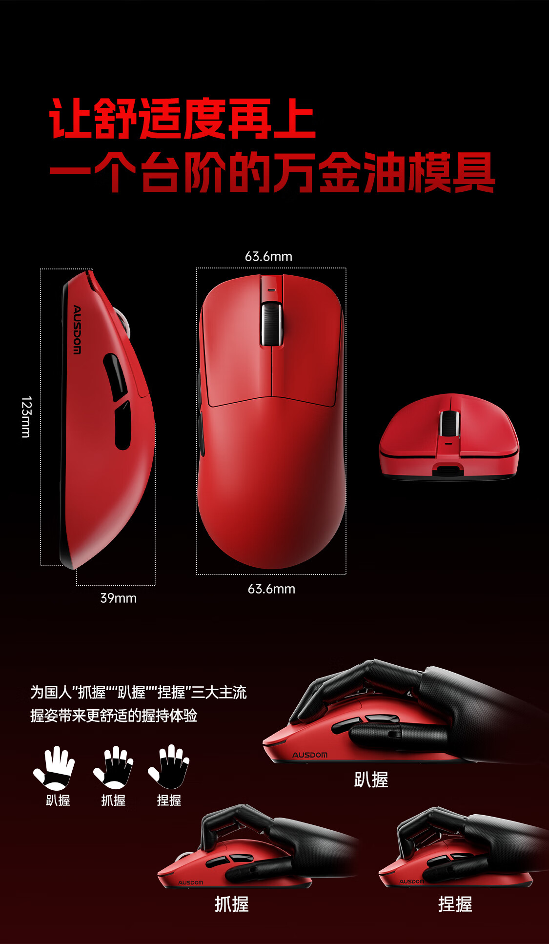阿斯盾G03PRO大师版无线鼠标轻量化中大手专用电竞游戏鼠标原相3950引擎星闪原生双8K回报率赤隼红