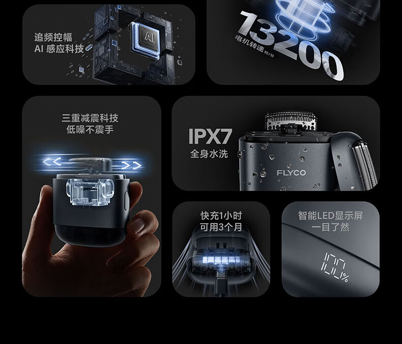 飞科(FLYCO)男士电动往复式刮胡剃须刀全身水洗干湿双剃便携出行必备生日礼物送男友老公送父亲F8银河灰