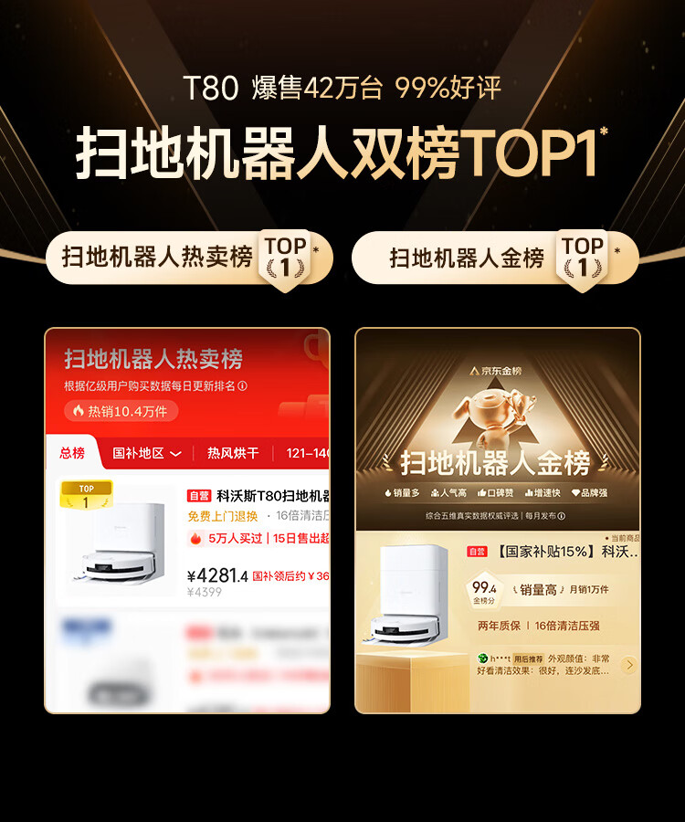 科沃斯T80扫地机器人扫拖洗烘一体自动清洗恒压滚筒洗地机器人智能语音水箱版DEX68【国家补贴】