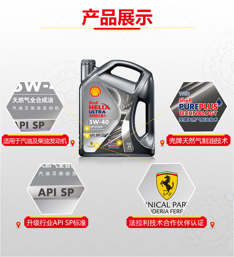 壳牌(Shell)机油全合成机油5w-40(5w40) API SP级 4L 都市光影版 京东养车