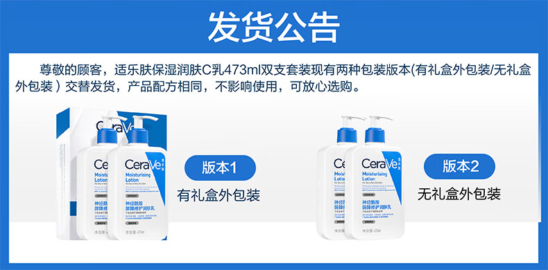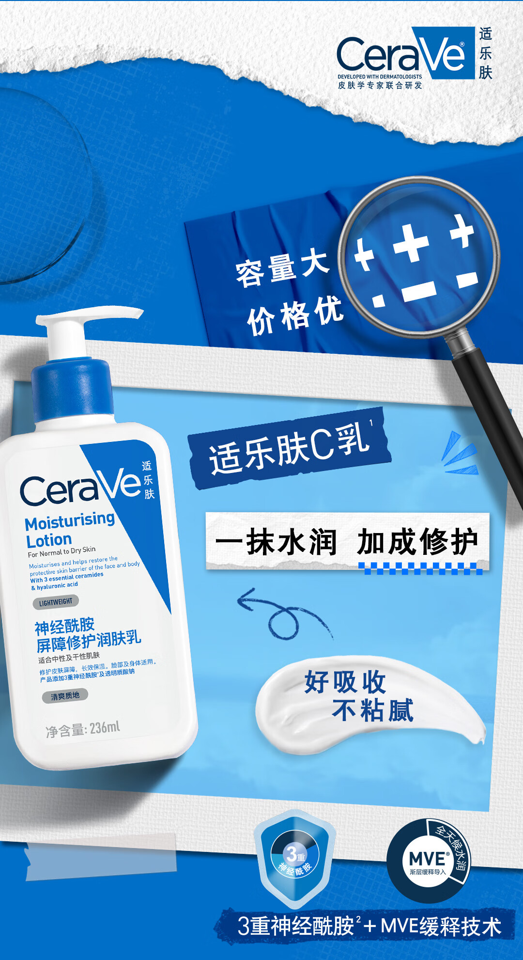 适乐肤(CeraVe)【张凌赫同款】保湿润肤C乳473ml双支装(修护乳液面霜护肤品礼物)