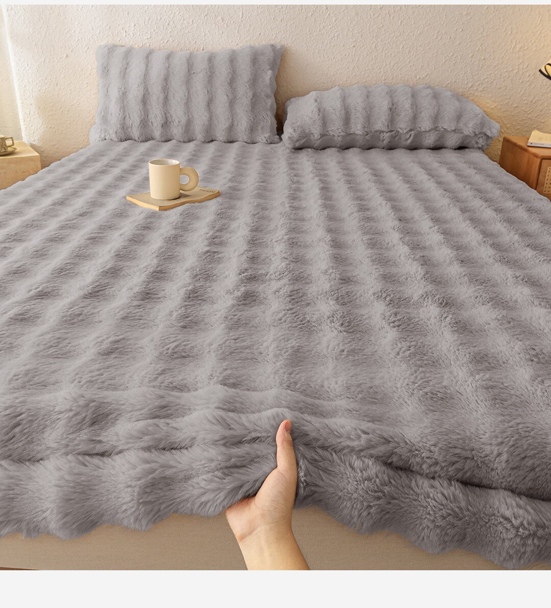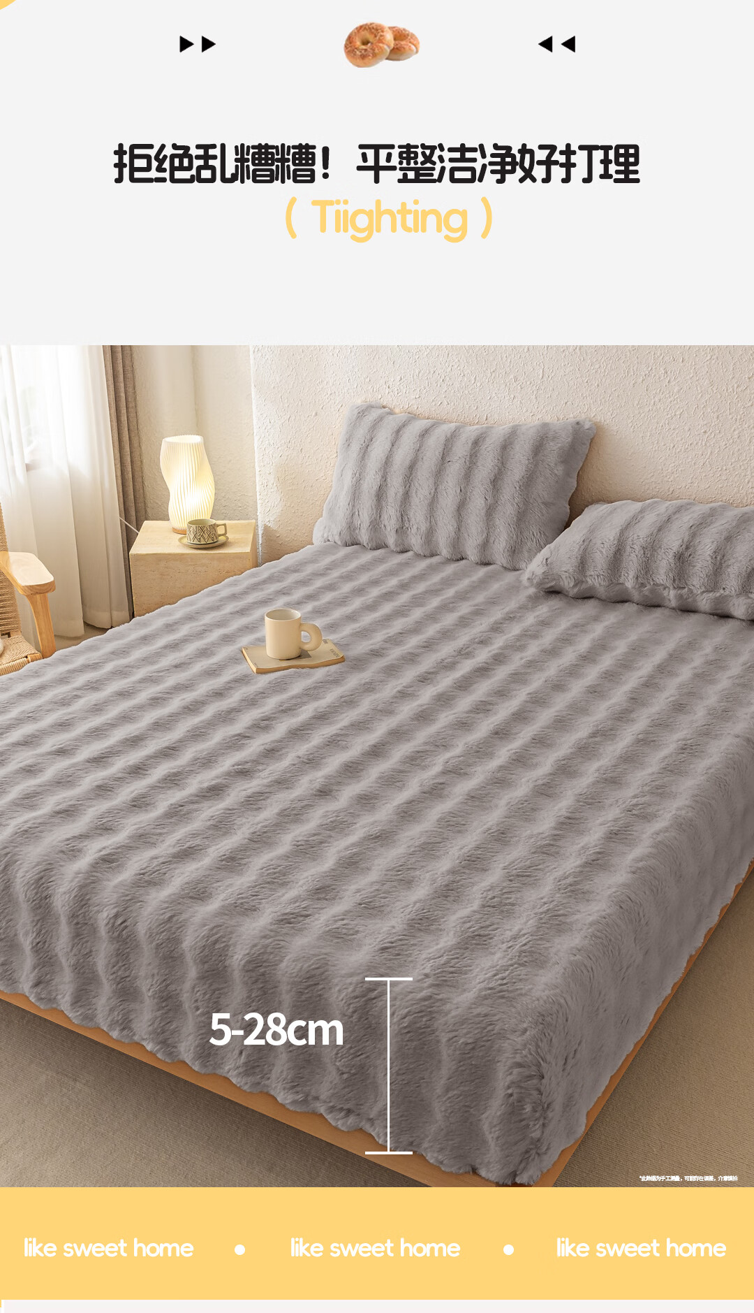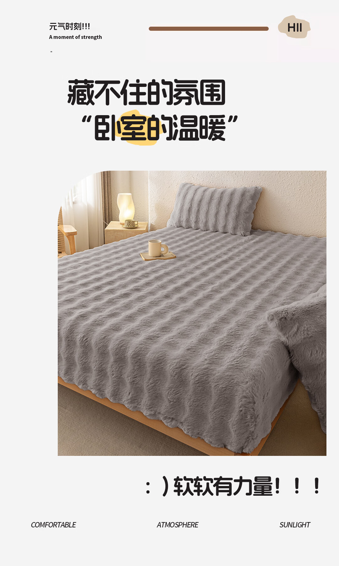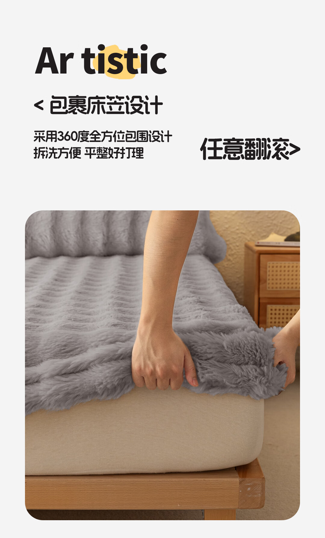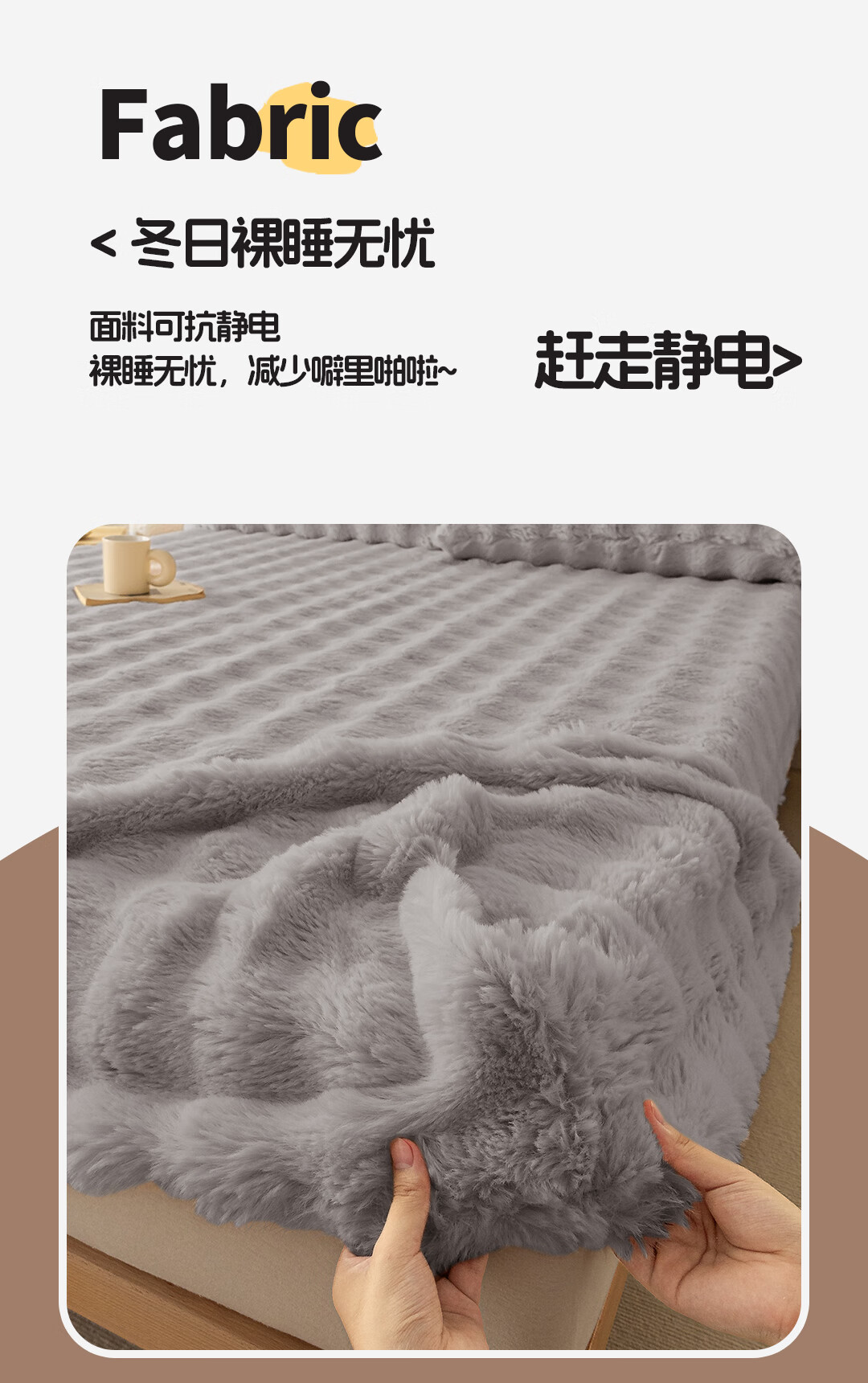 高睿兔毛绒床笠罩单件牛奶珊瑚绒冬季加绒床垫保护罩加厚床套2025新款 米白【兔毛绒撸猫手感不易掉毛】 【单床笠】 180cm*200cm