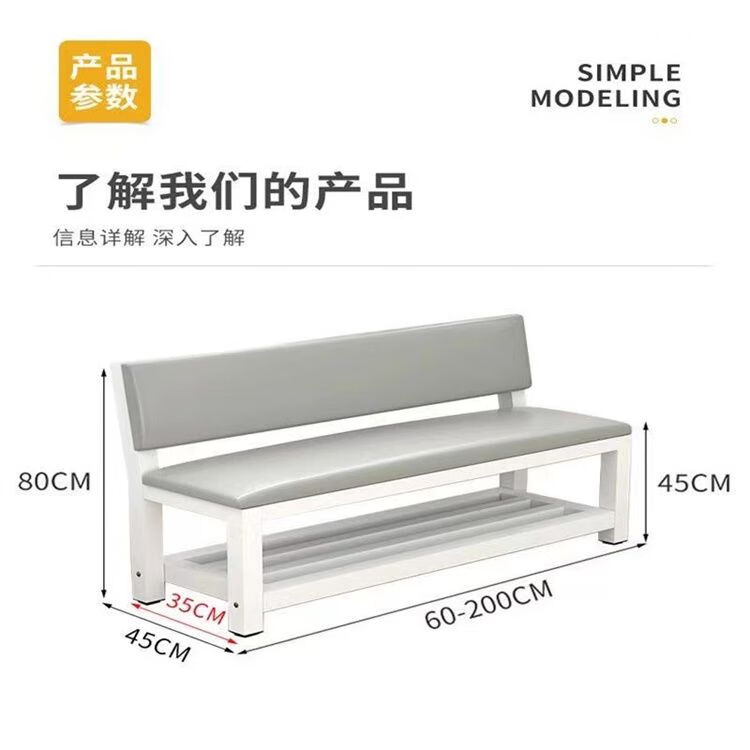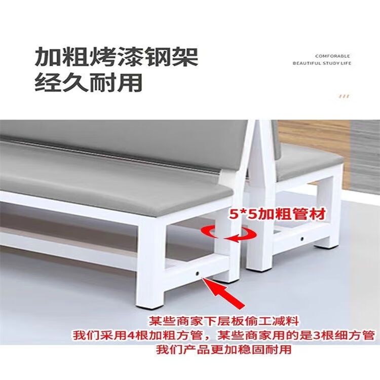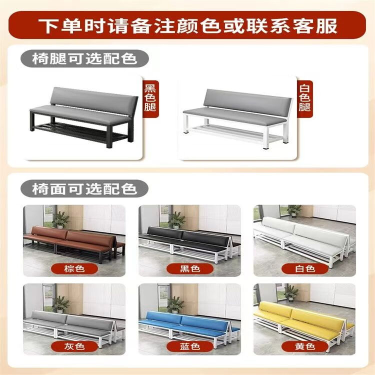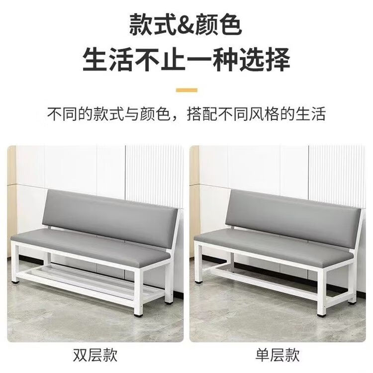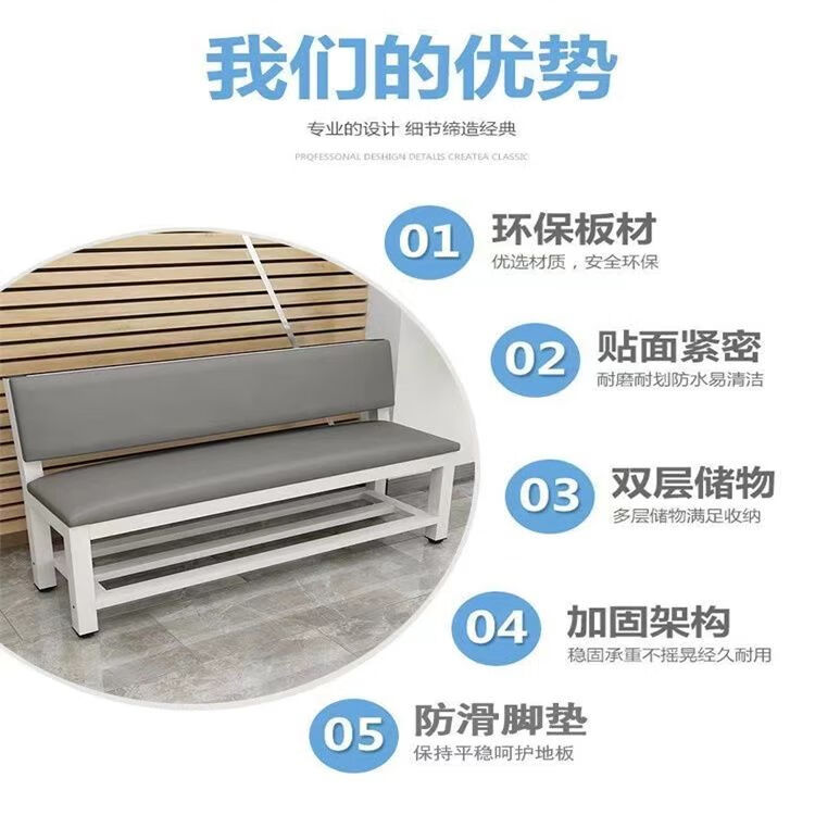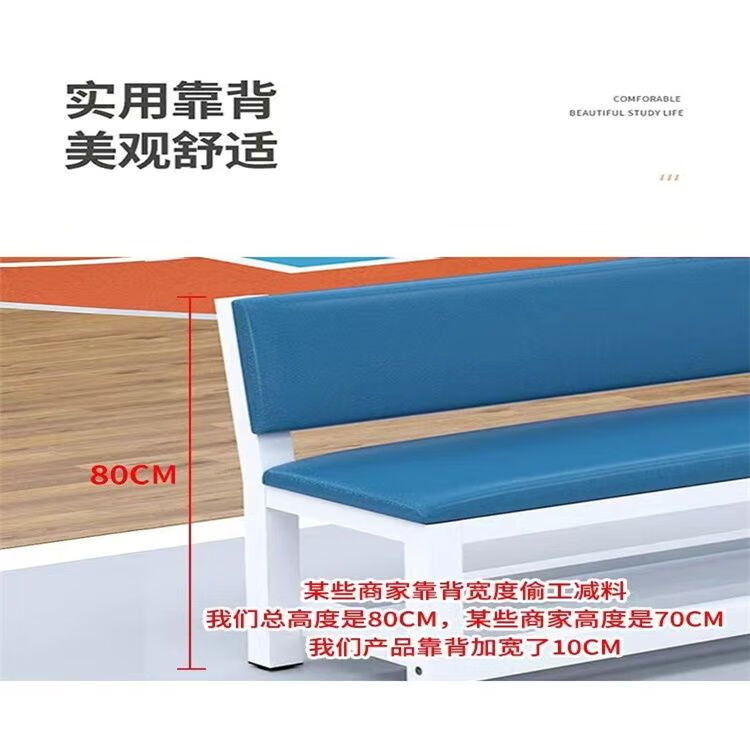 倘然之家软包靠背长椅理发店沙发等候健身房篮球场休息区凳子长条椅子餐桌 【靠背椅】白架蓝色单层 长80宽45高45总高80