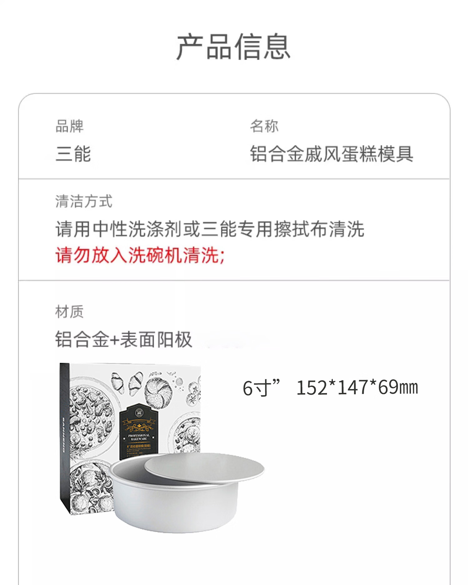 三能SN50223蛋糕模具6寸烘焙工具活底家用六寸空气炸锅戚风胚模