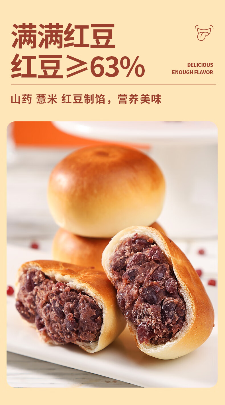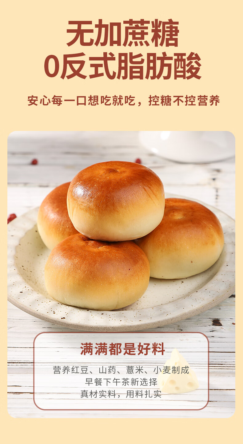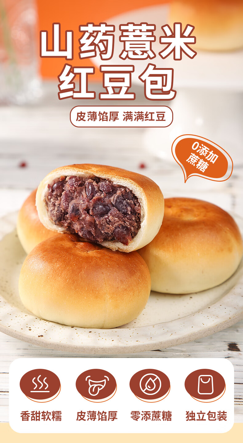 杏享山药薏米红豆包薄皮无蔗糖即食早餐下午茶饱腹零食茶点盒装240g 山药薏米红豆包240g*2盒装