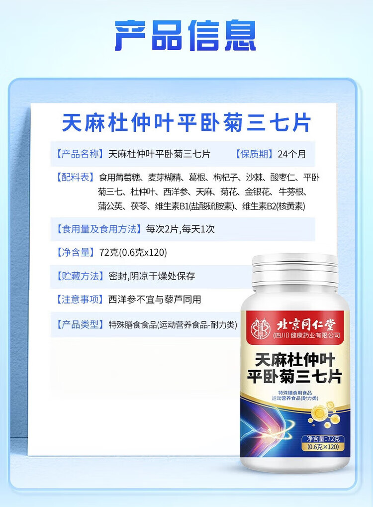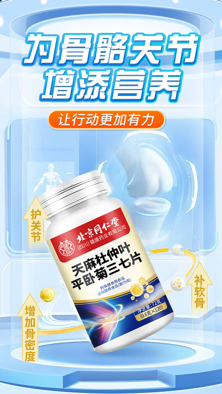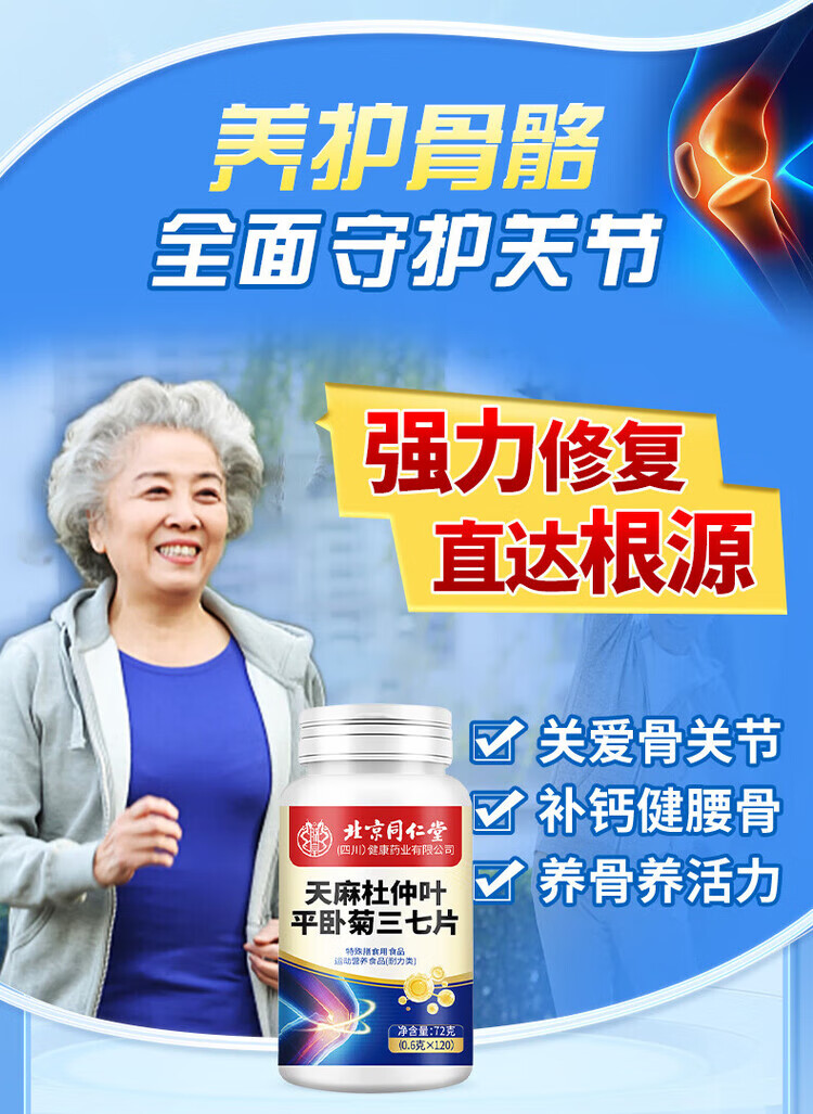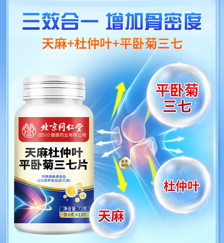 天麻杜仲叶平卧菊三七通络片成人中老年骨质疏松手脚麻木骨骼养护 五瓶/600片【巩固装】 胖DL东来大药房线上商城同品质京官方店东自旗舰营正