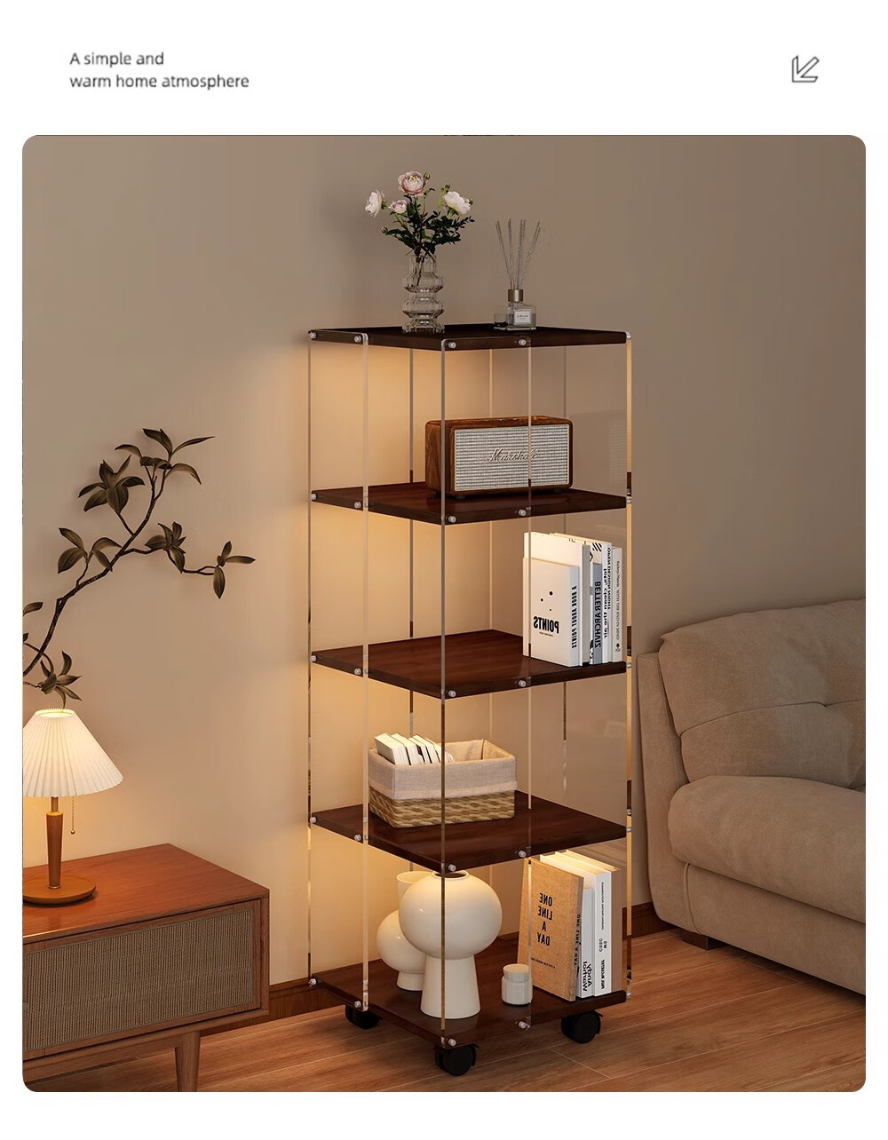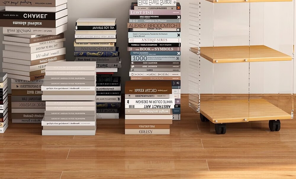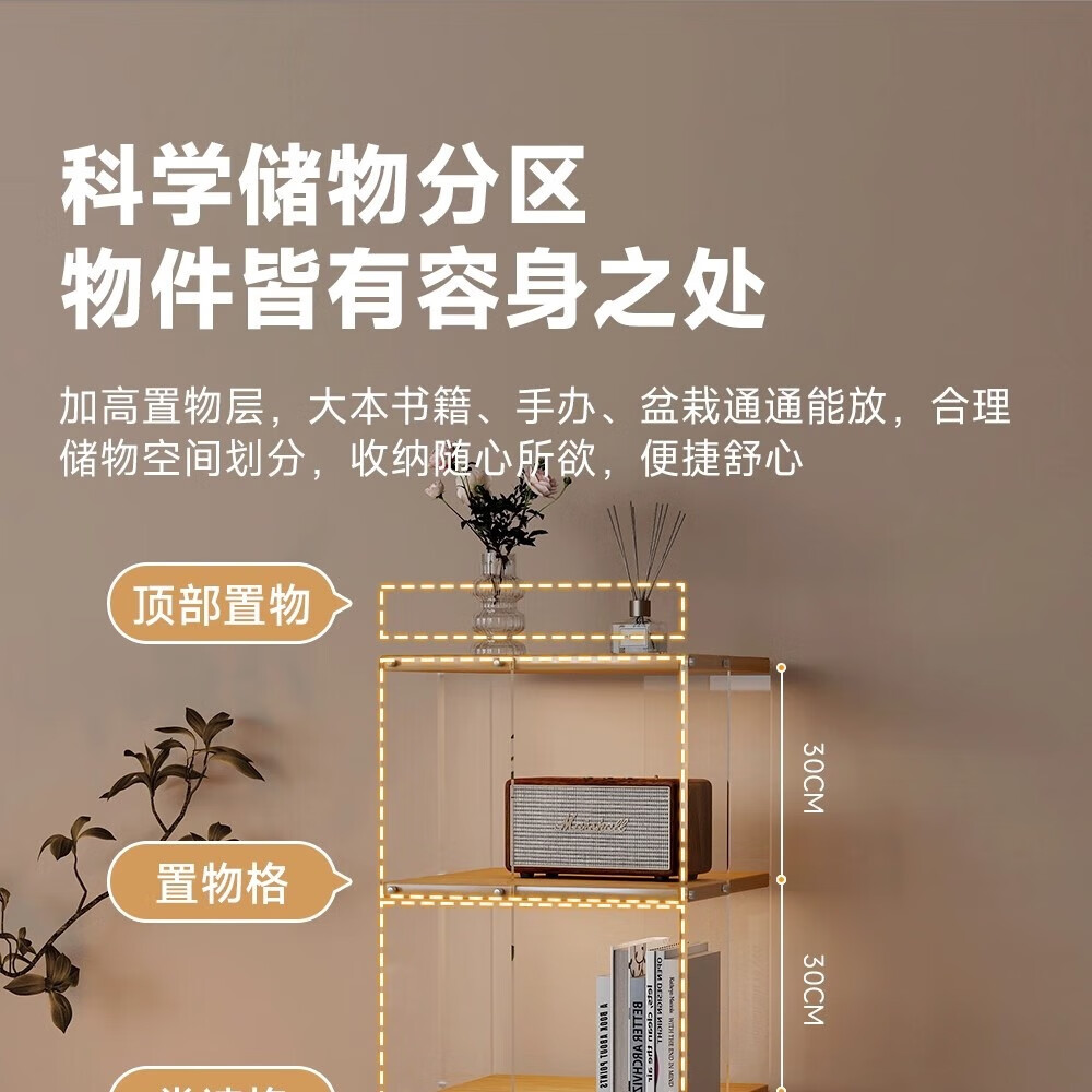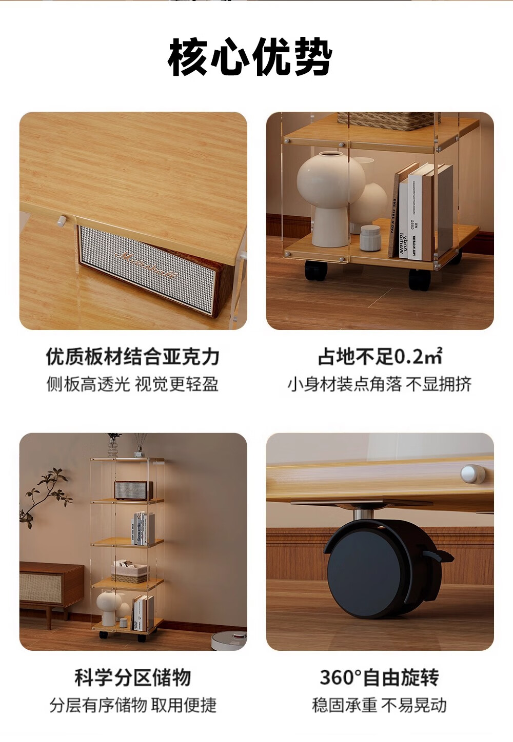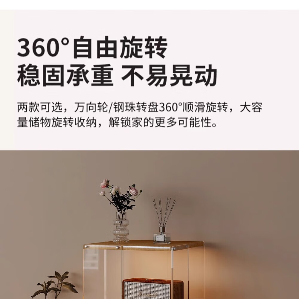 美竹乐实木书架落地置物架亚克力多层旋转可移动客厅书房展示柜转角书柜 【亚克力书架】 四层-原木色 (360度旋转)