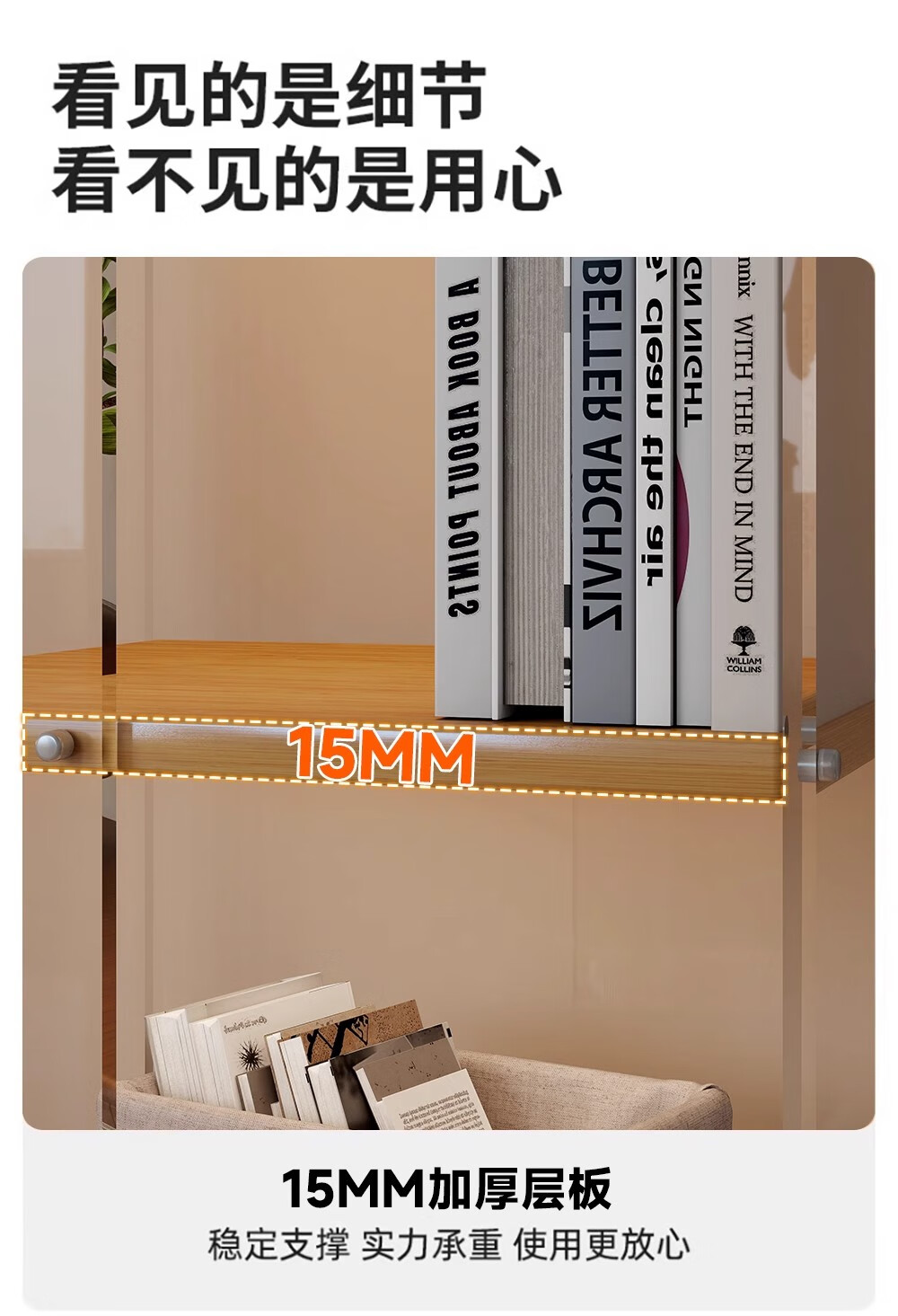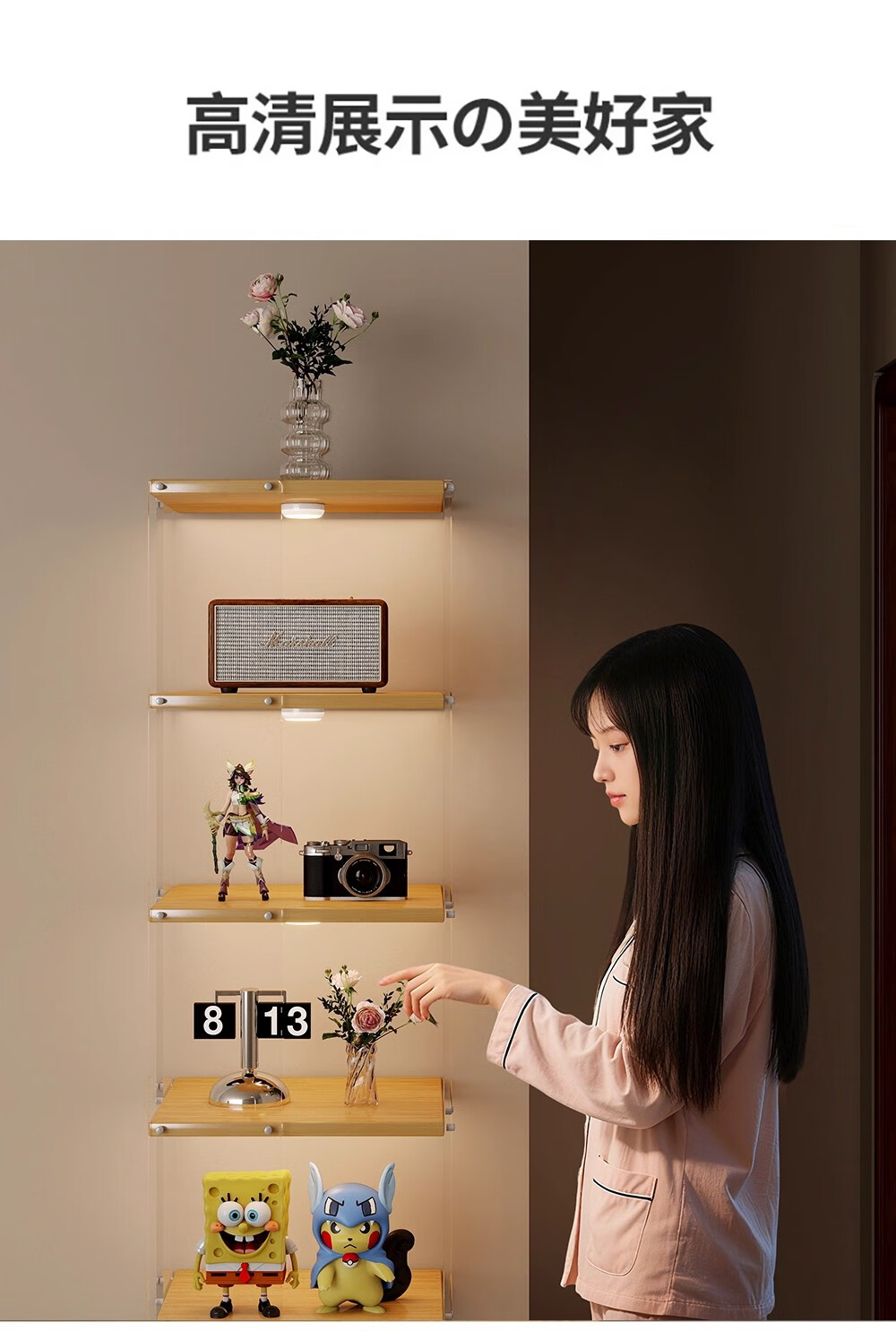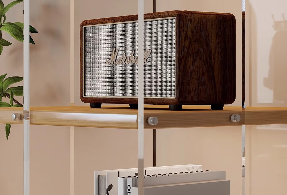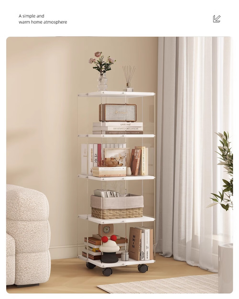 美竹乐实木书架落地置物架亚克力多层旋转可移动客厅书房展示柜转角书柜 【亚克力书架】 四层-原木色 (360度旋转)