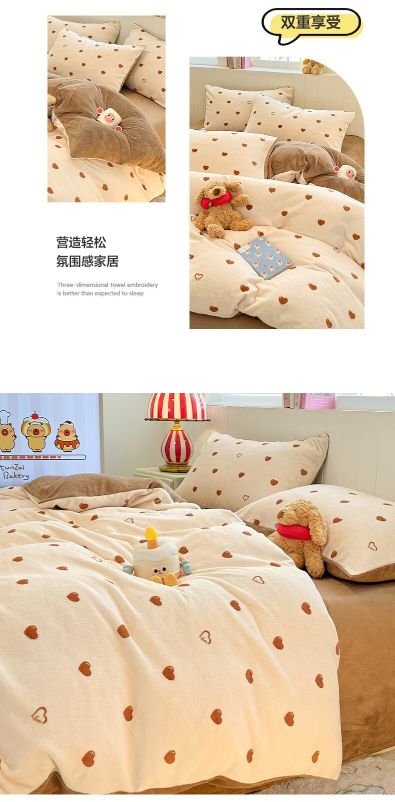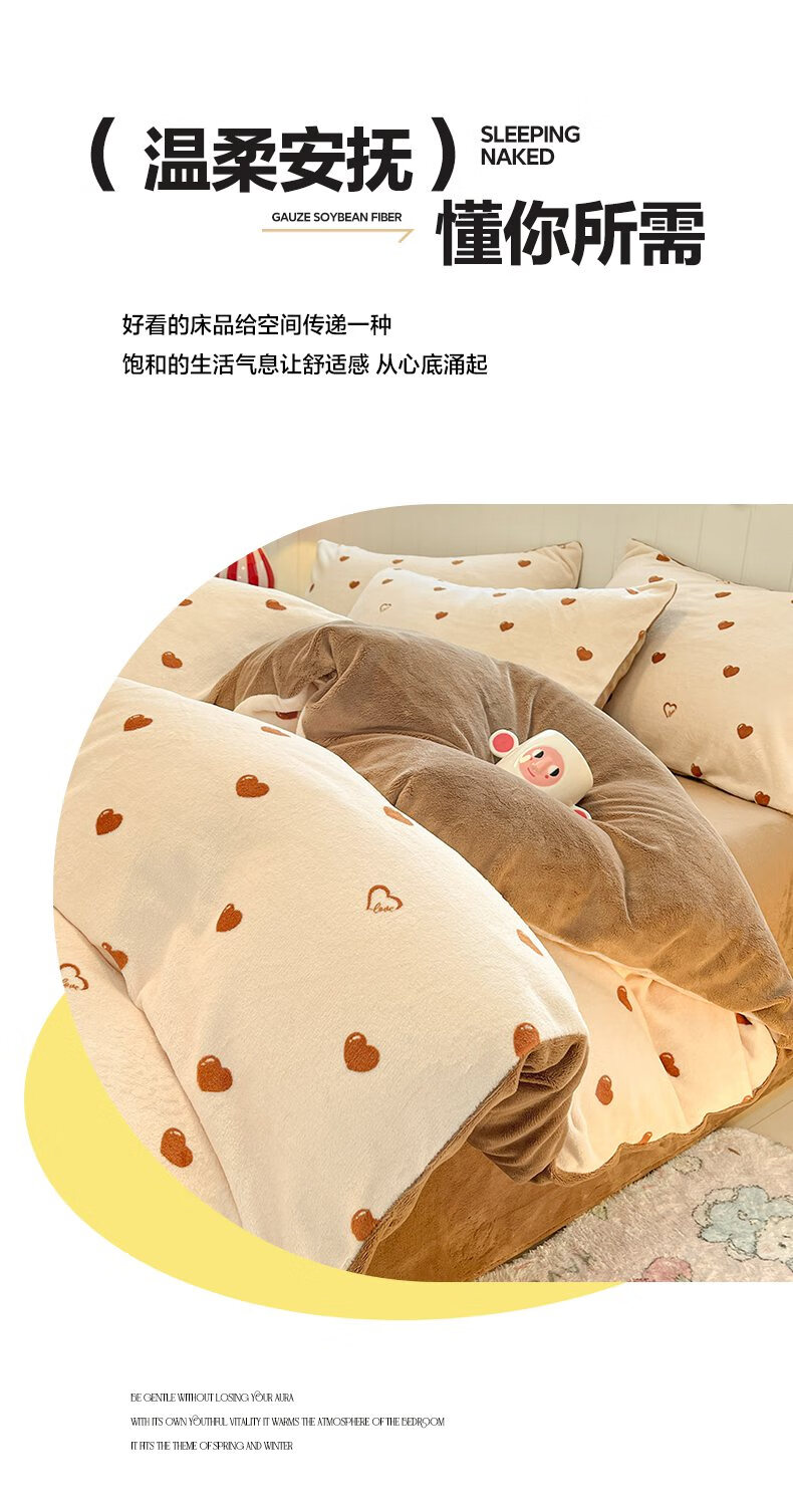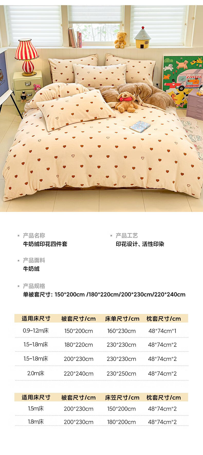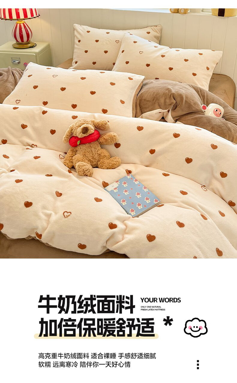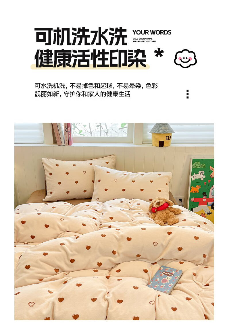 猫人(MiiOW)冬季加厚牛奶绒被套单件150x200x230cm加绒法兰珊瑚绒床单被罩套 彩怪悦时【高克重牛奶绒加倍保暖】 2.0m床单款四件套【适合220*240cm被芯】