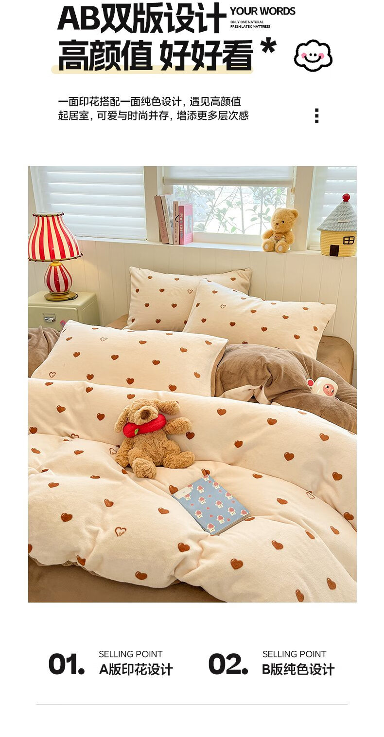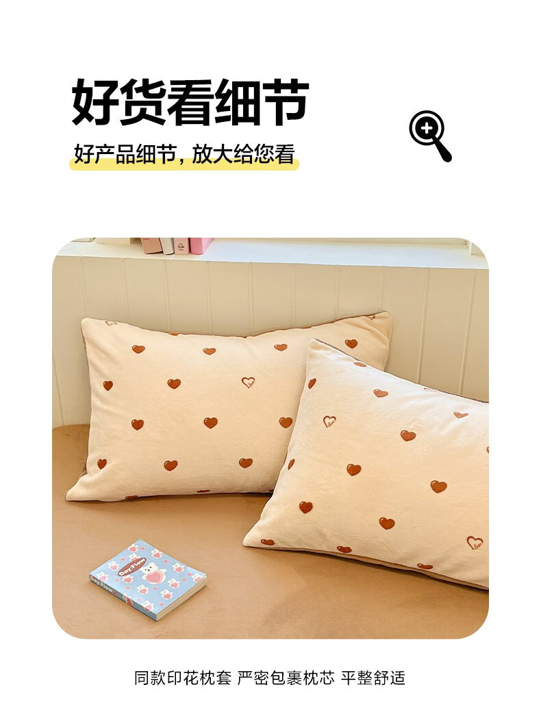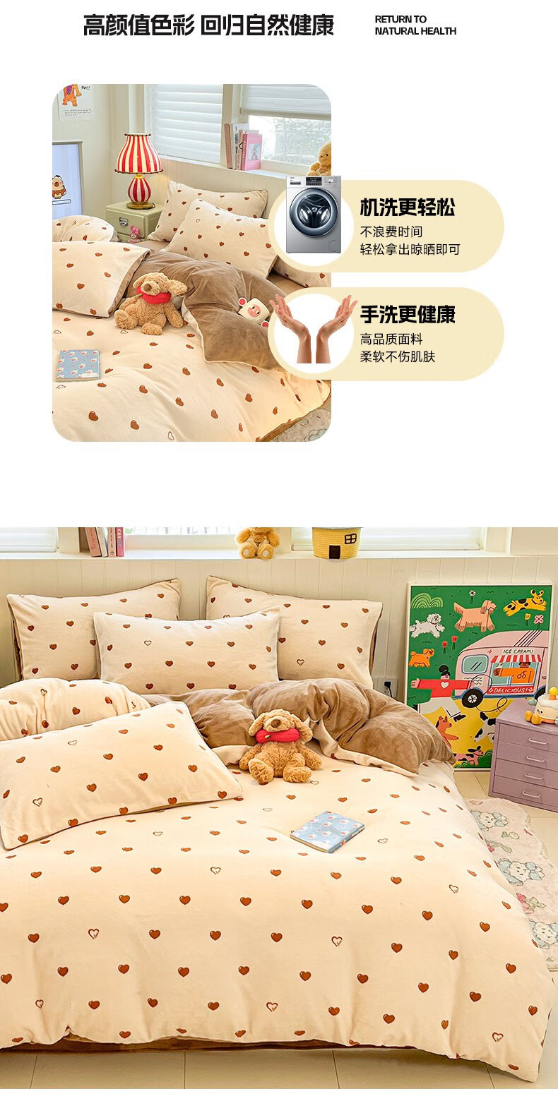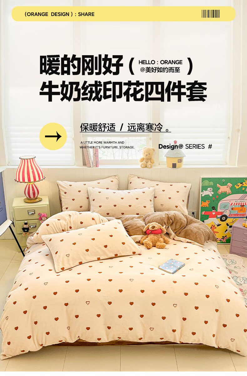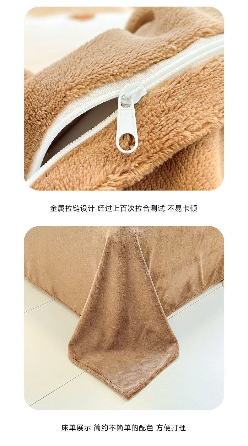 猫人(MiiOW)冬季加厚牛奶绒被套单件150x200x230cm加绒法兰珊瑚绒床单被罩套 彩怪悦时【高克重牛奶绒加倍保暖】 2.0m床单款四件套【适合220*240cm被芯】