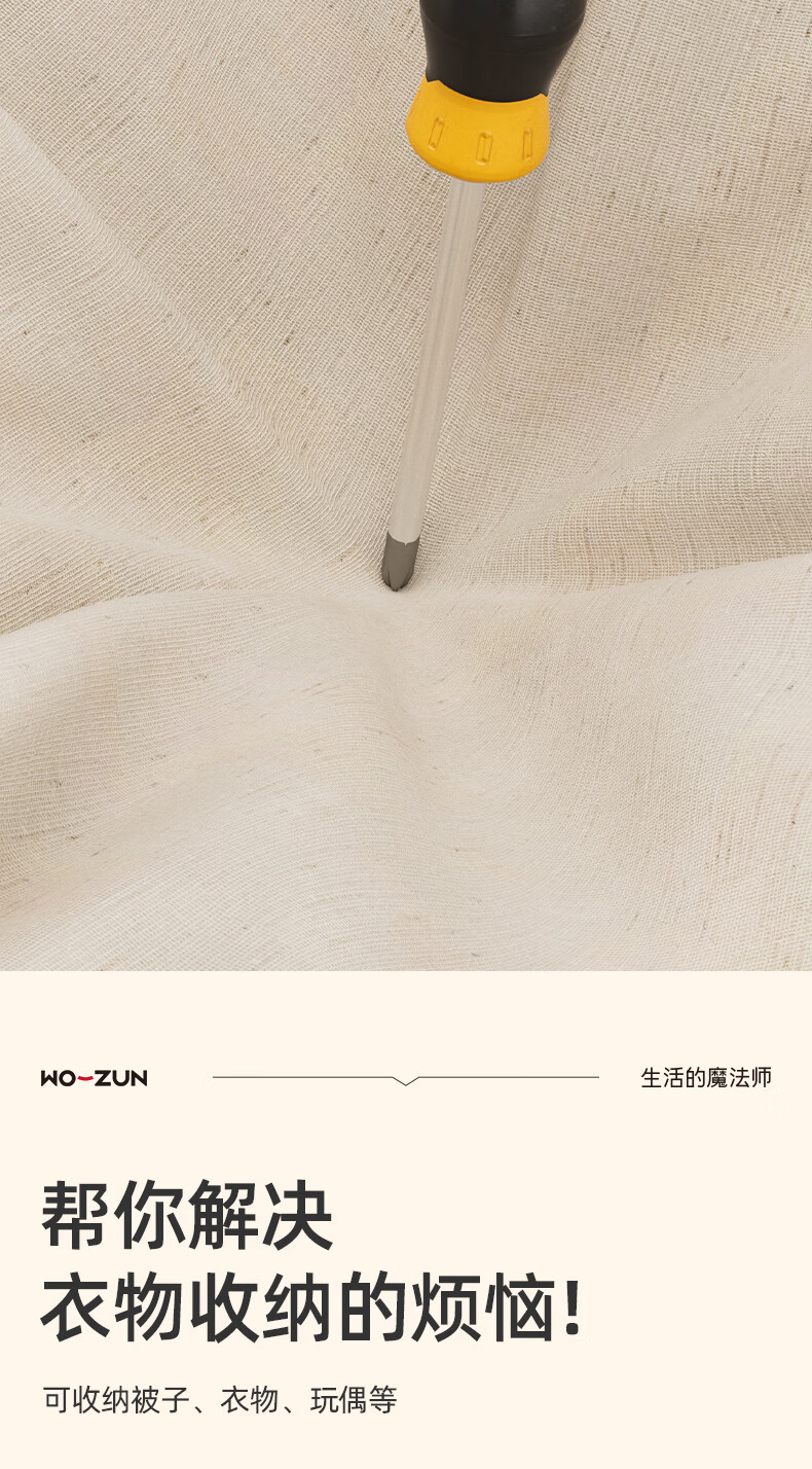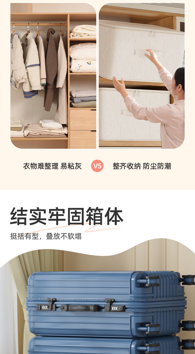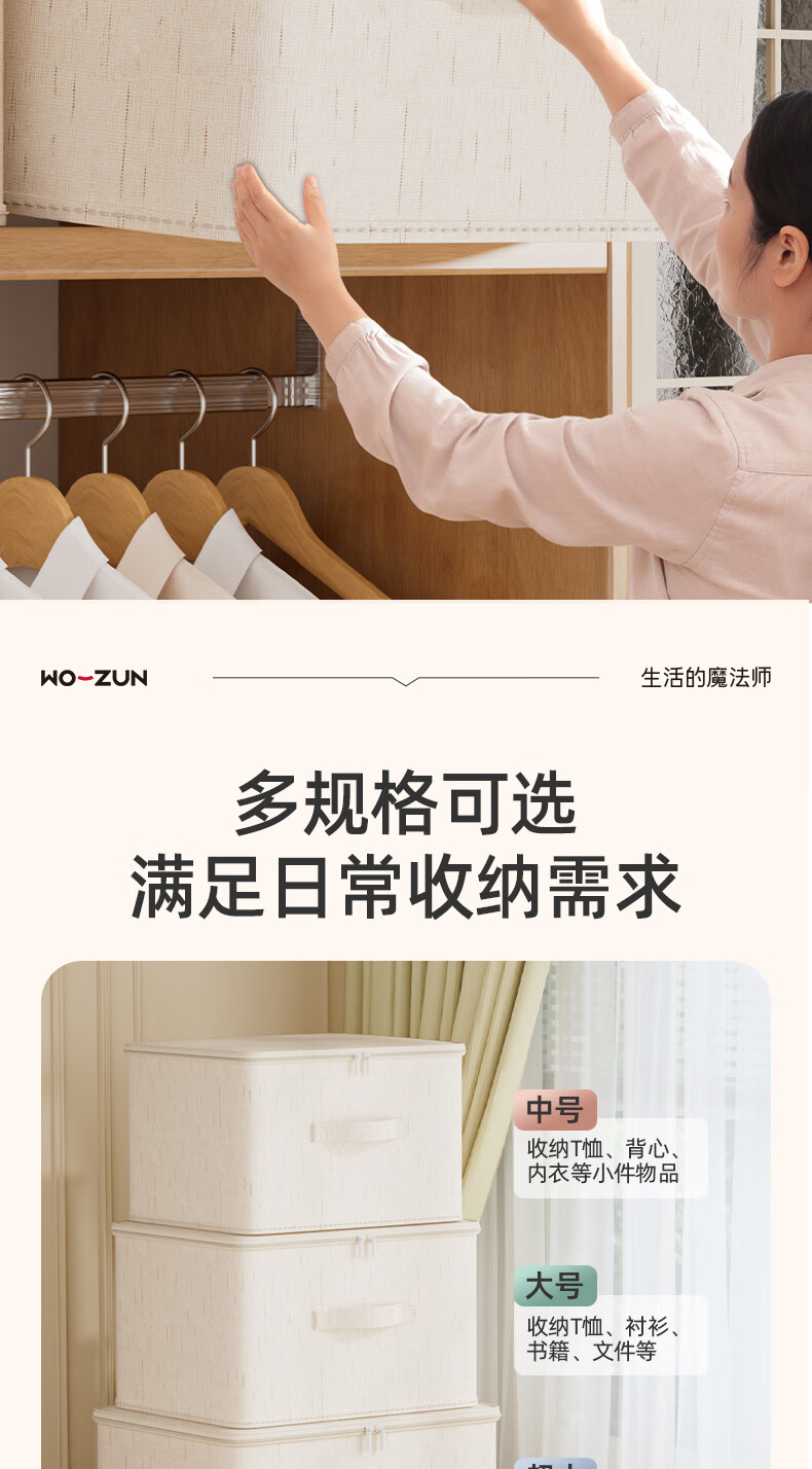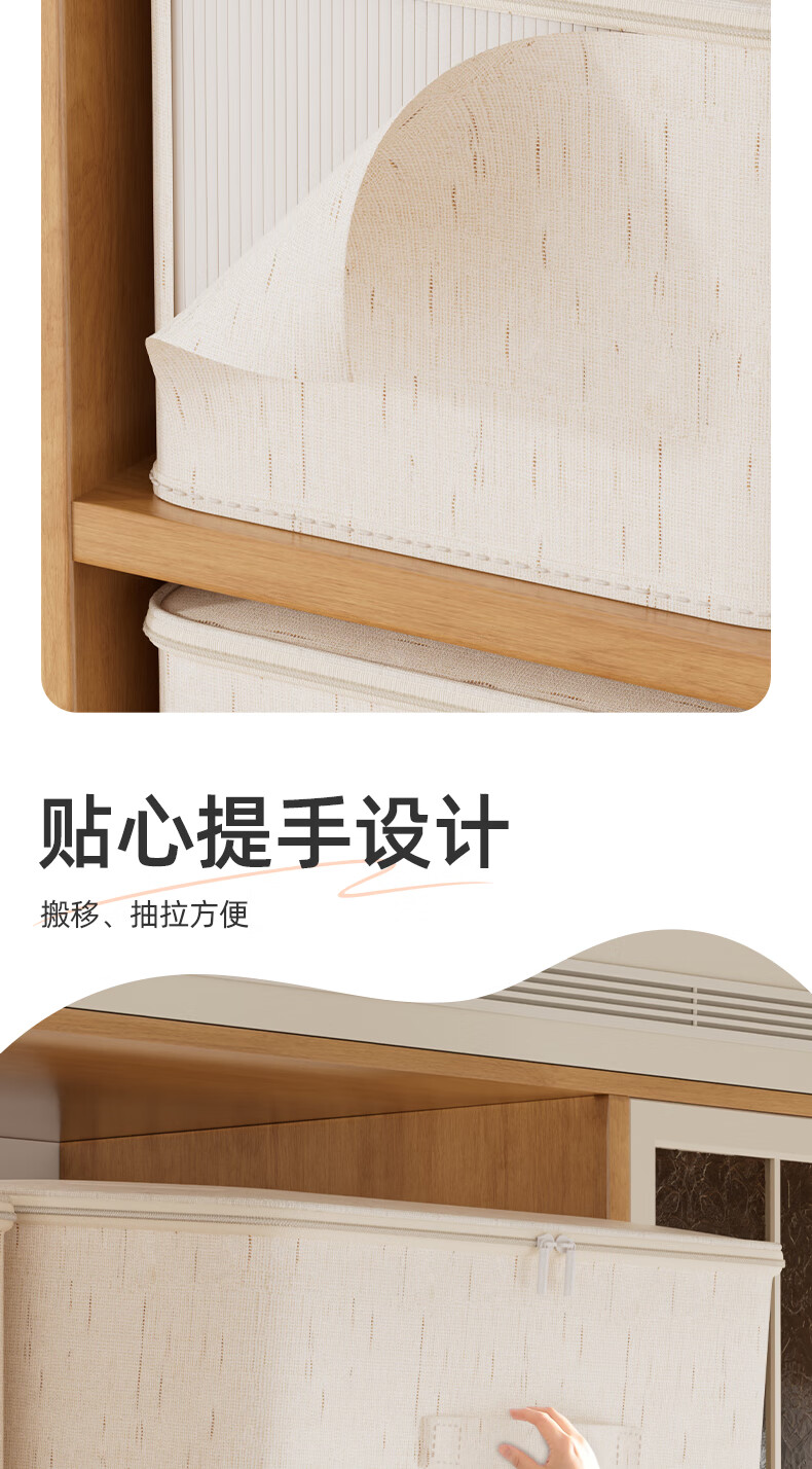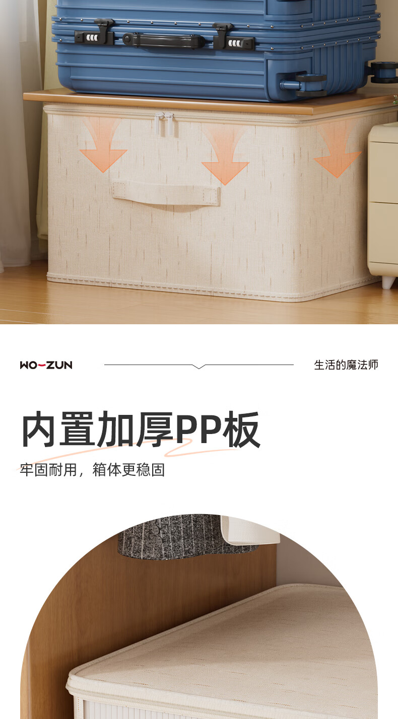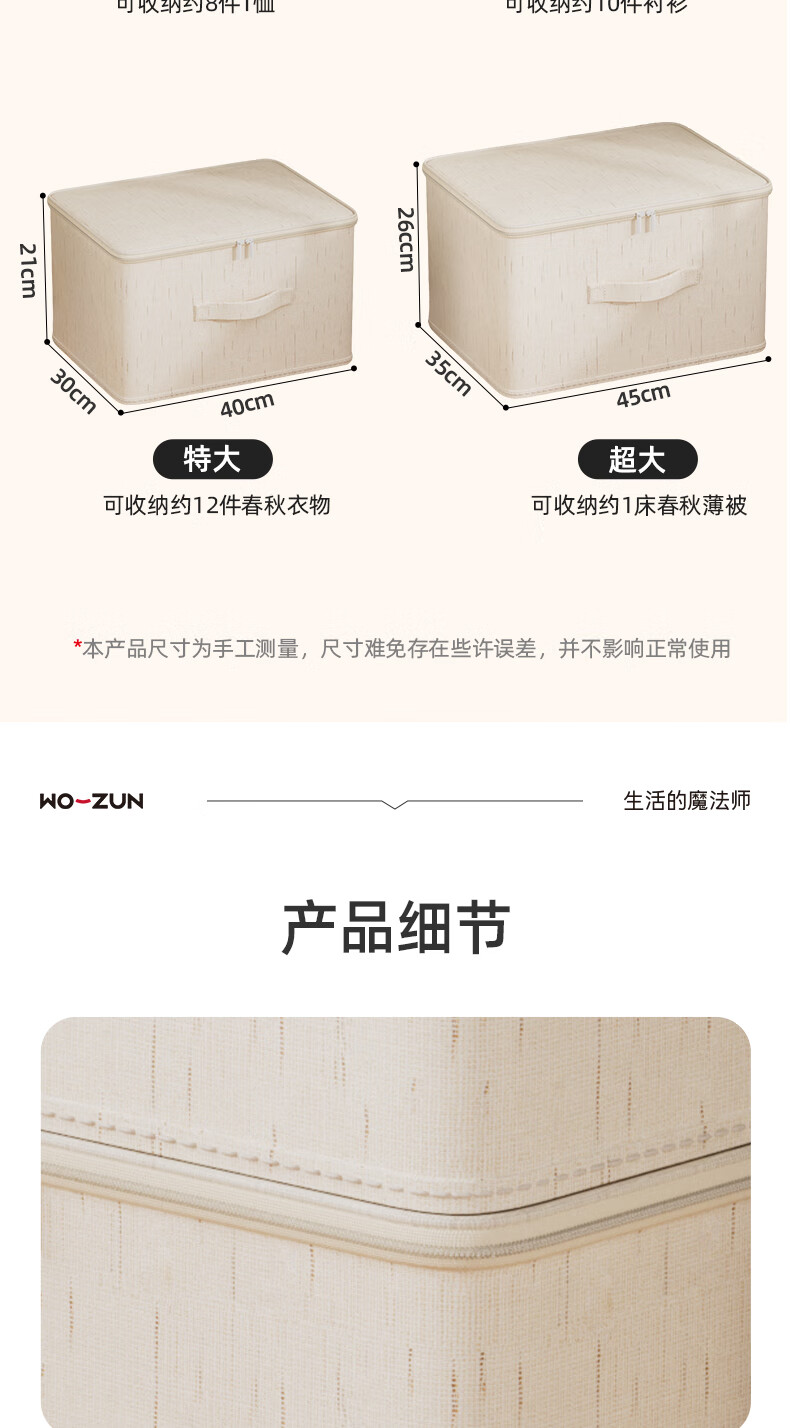 沃尊拉链收纳箱被子收纳筐收纳箱大容量超大周转箱衣柜收纳衣服收纳箱 米色-【中号】棉麻拉链箱30*24*14cm