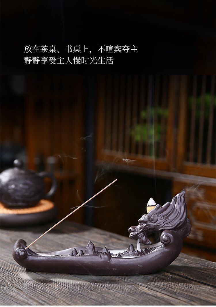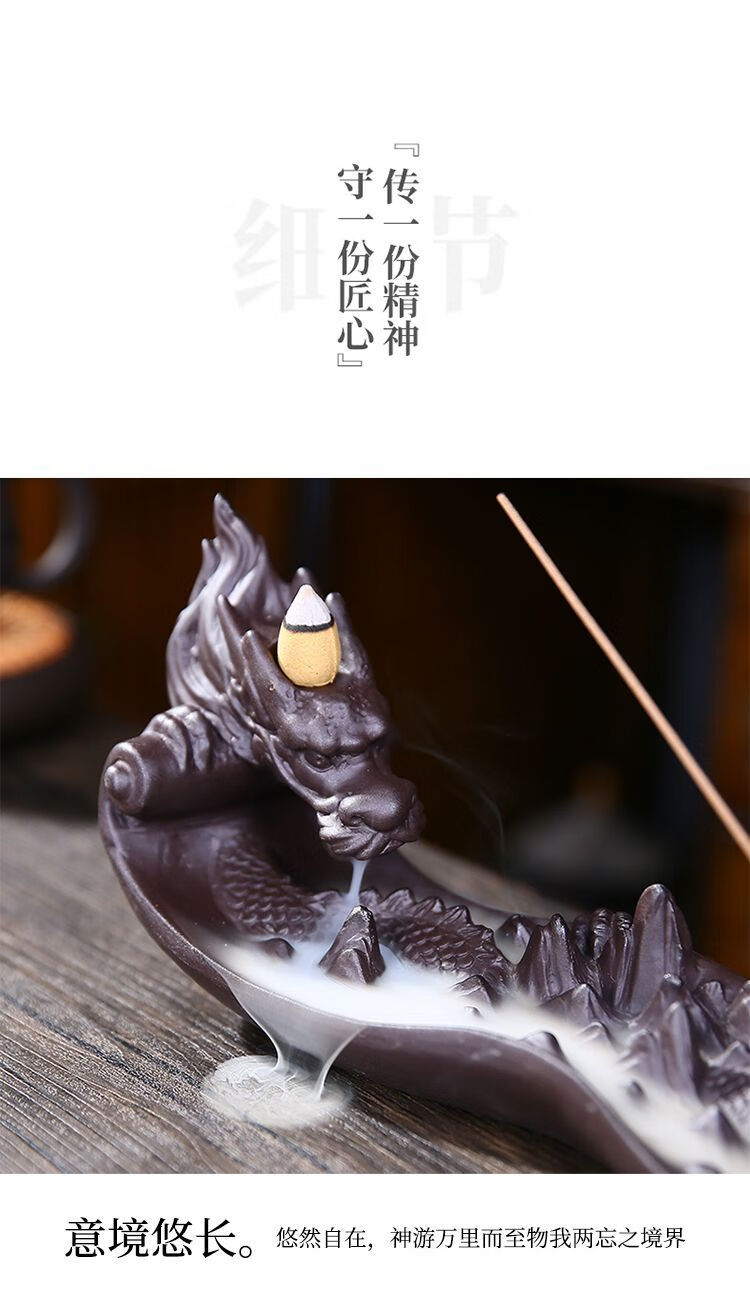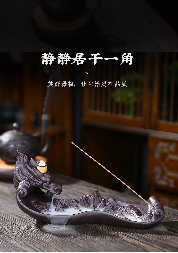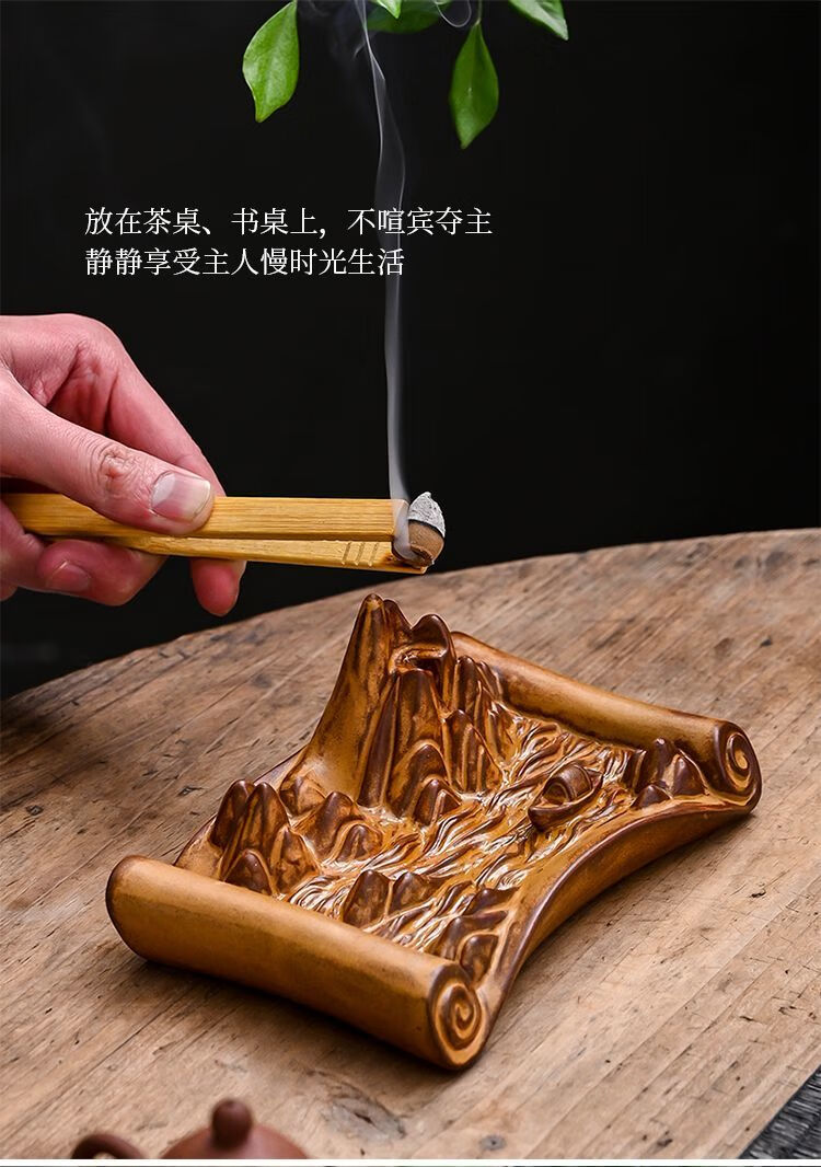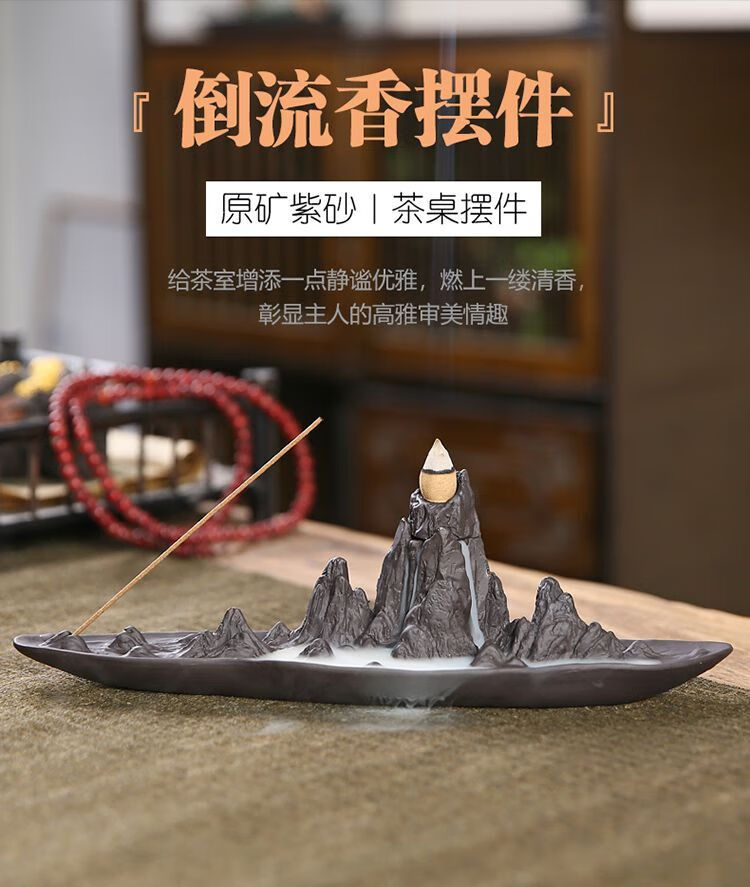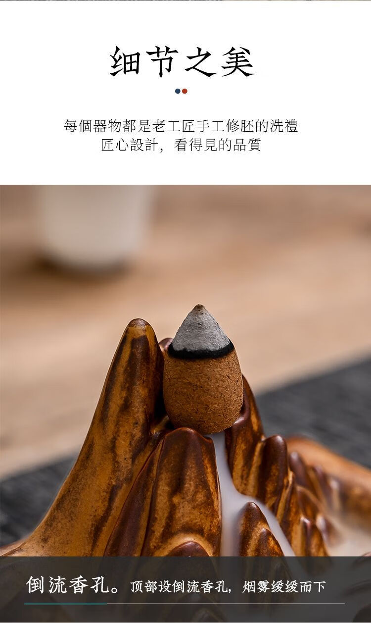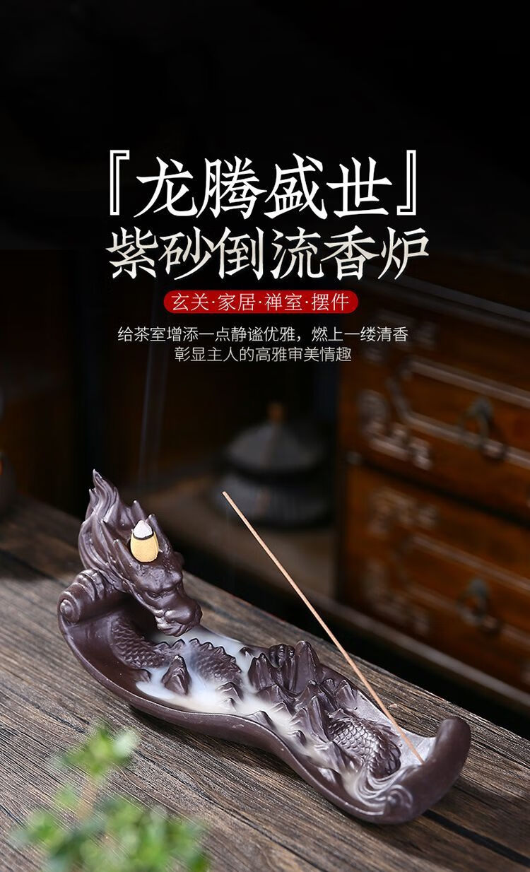 OYKTN盘香倒流香炉高山流水创意摆件紫砂线香炉禅意家用卧香熏炉线香插 浪涛山境 人工随机装-约50颗混合花香+镊子