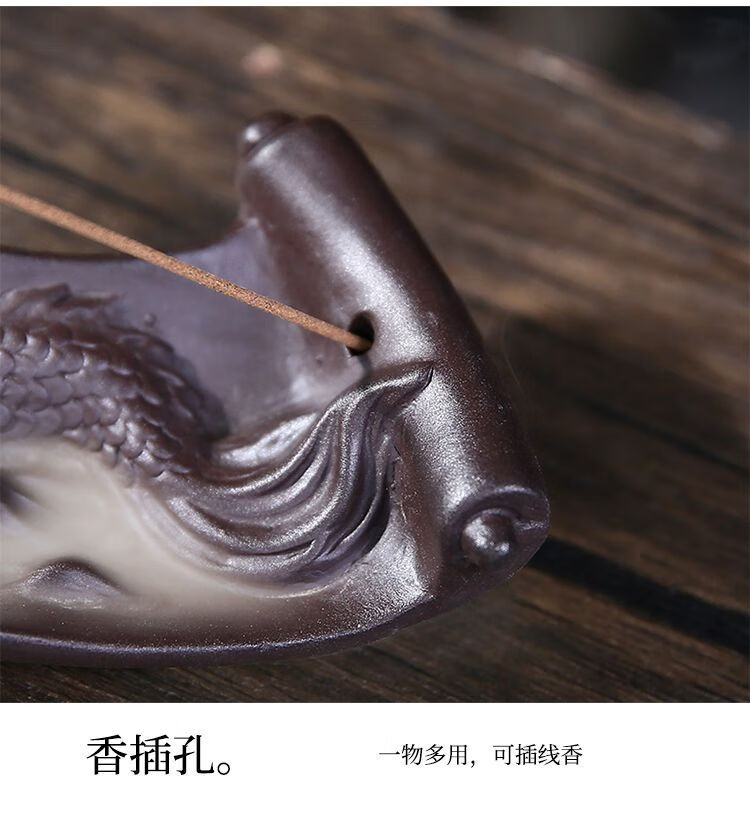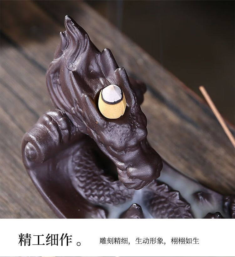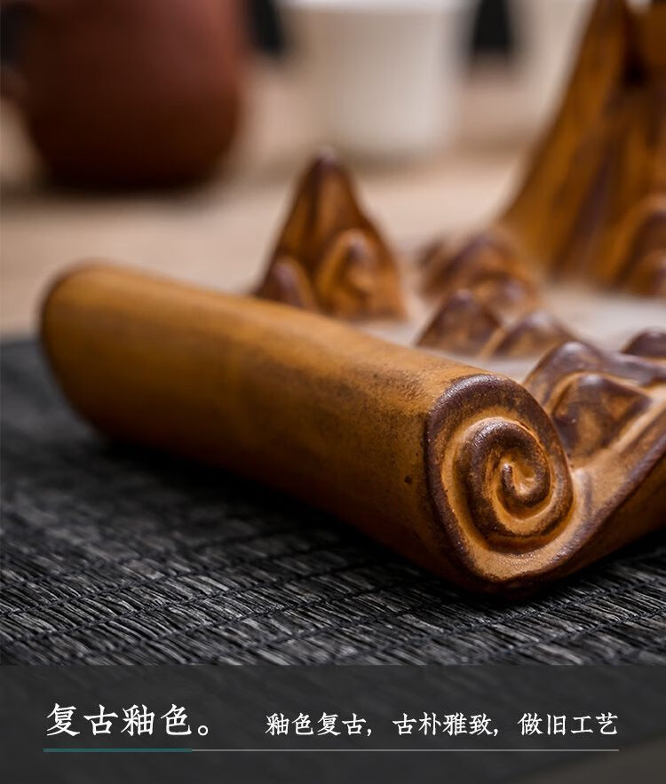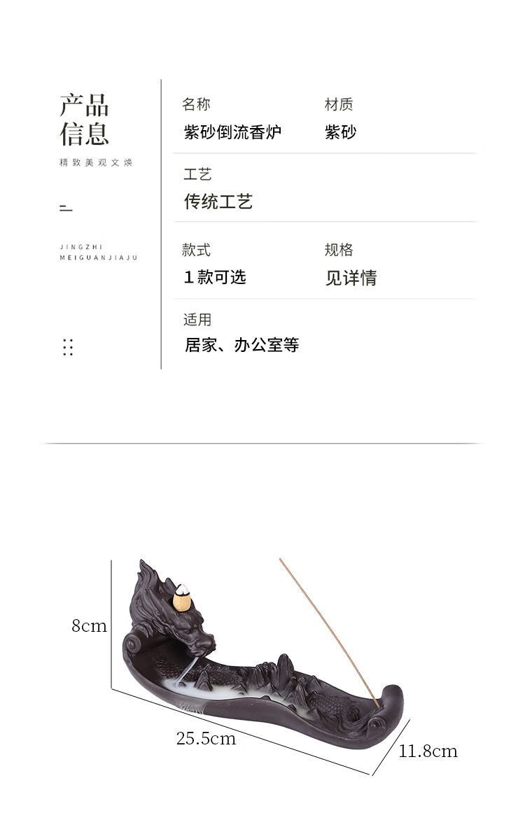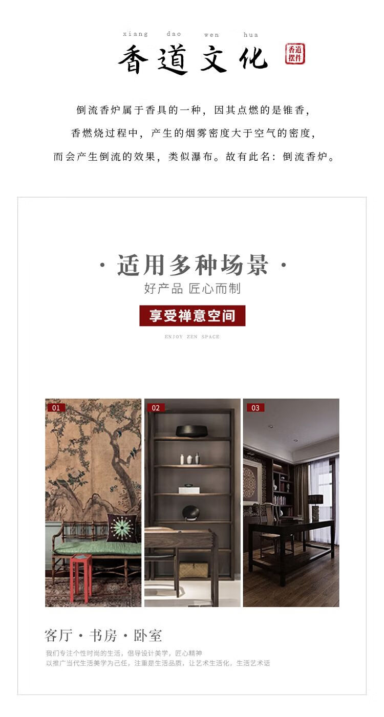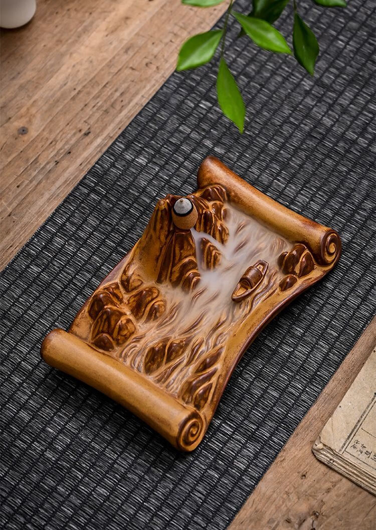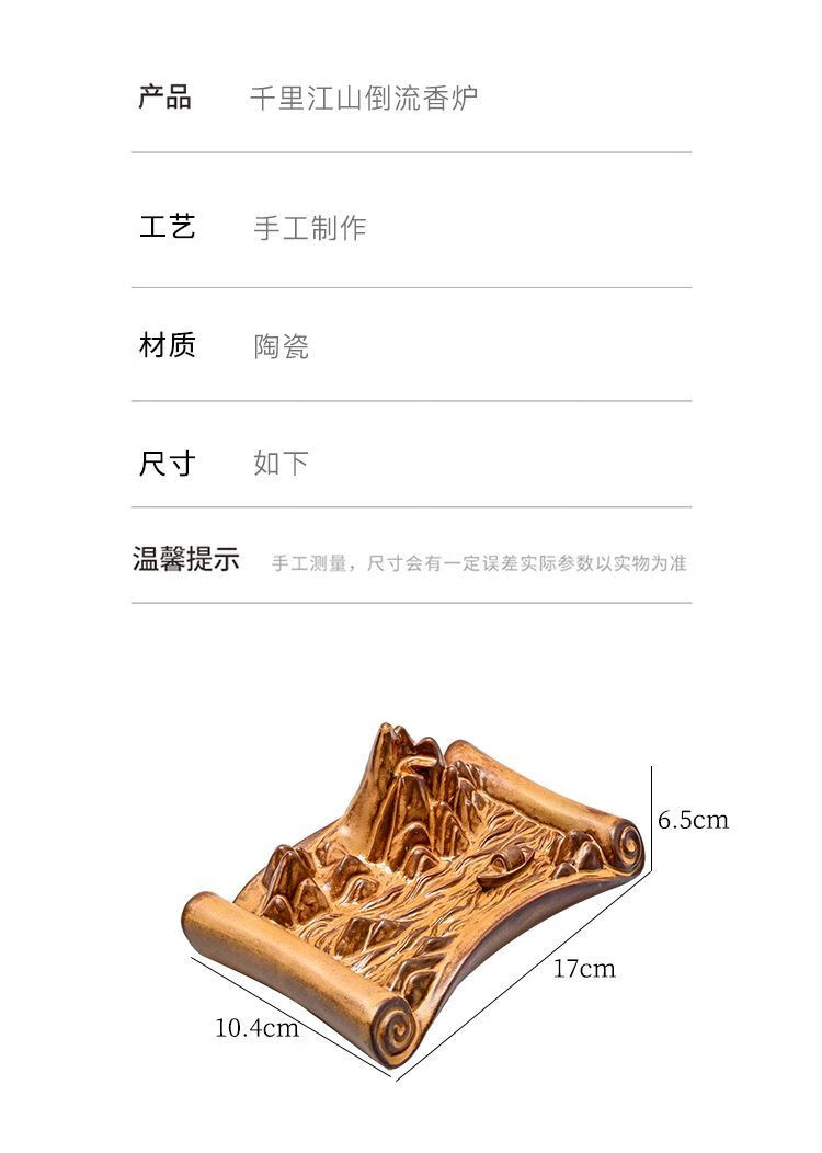 OYKTN盘香倒流香炉高山流水创意摆件紫砂线香炉禅意家用卧香熏炉线香插 浪涛山境 人工随机装-约50颗混合花香+镊子