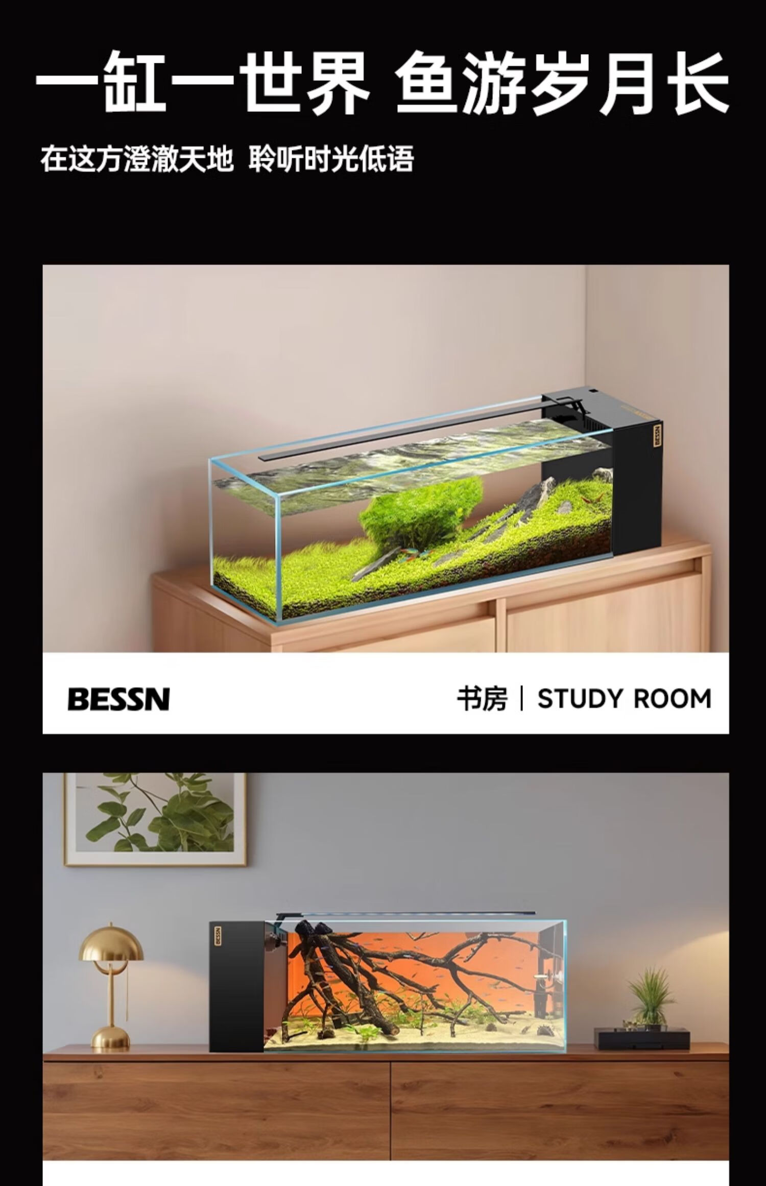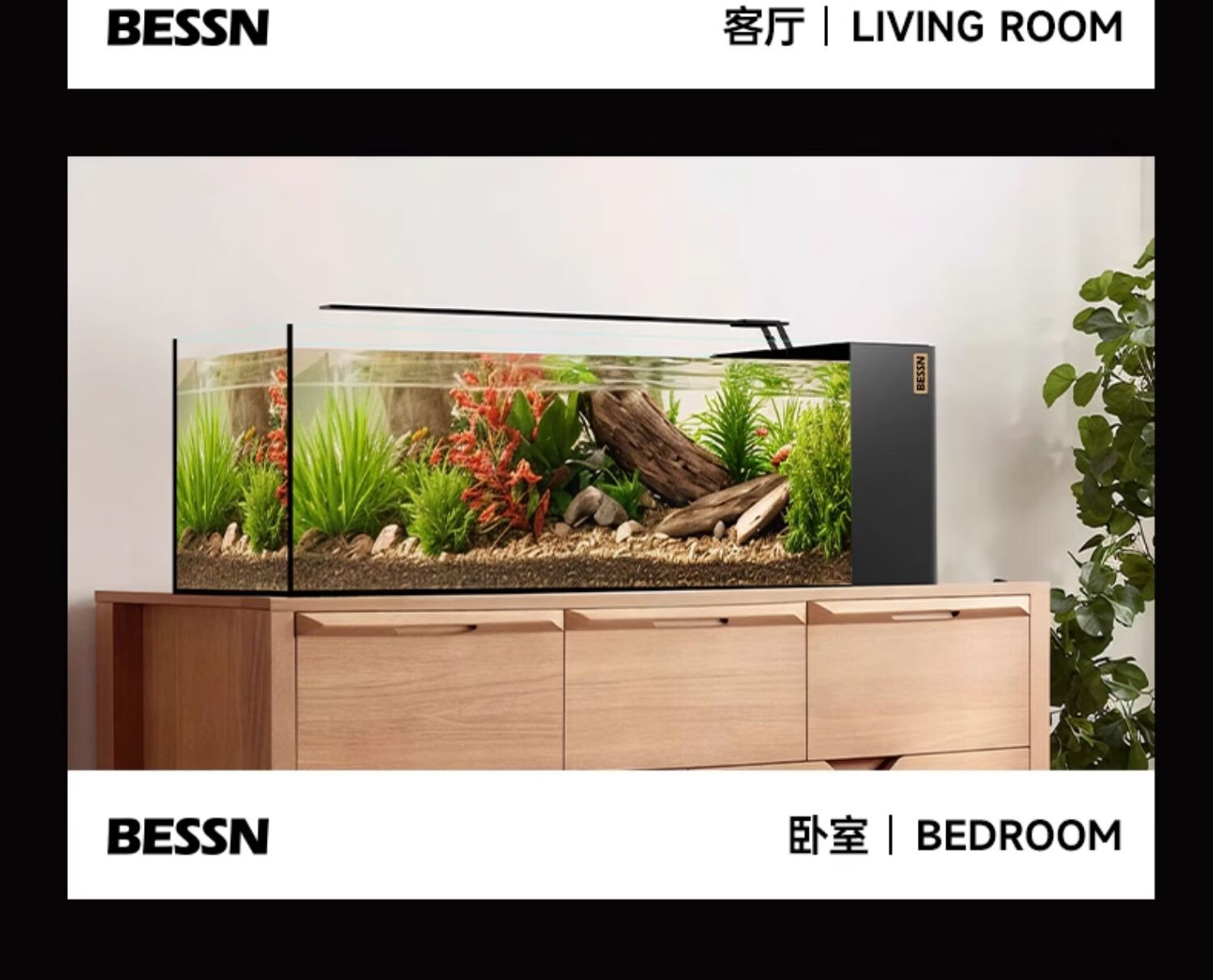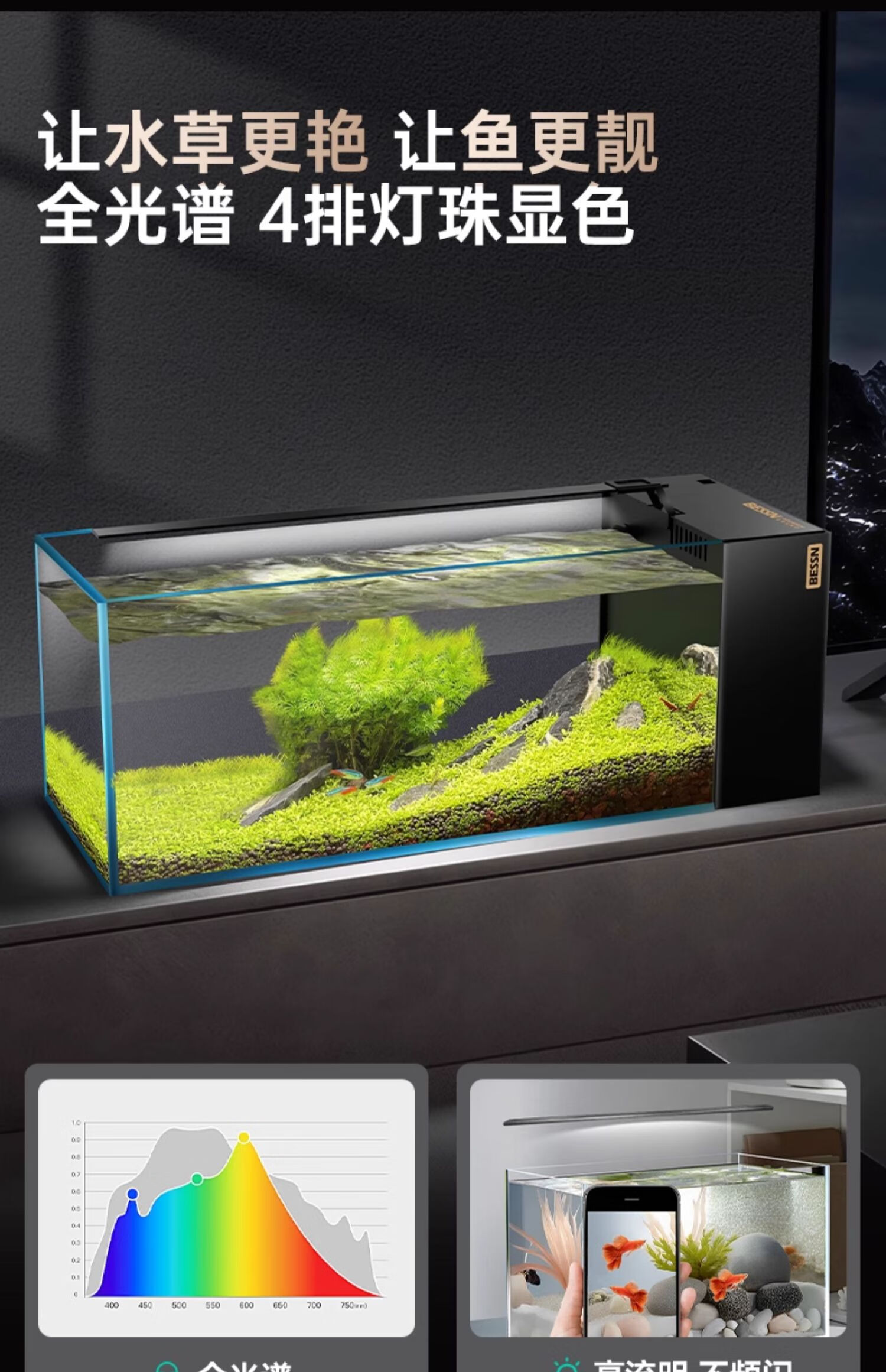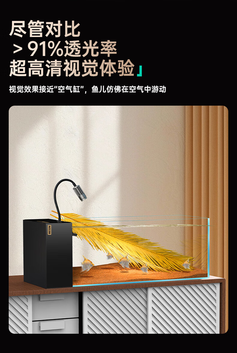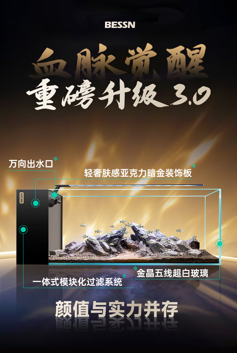 BESSN贝森25年新款侧滤金晶五线超白玻璃鱼缸血脉觉醒80*30*30cm基础款