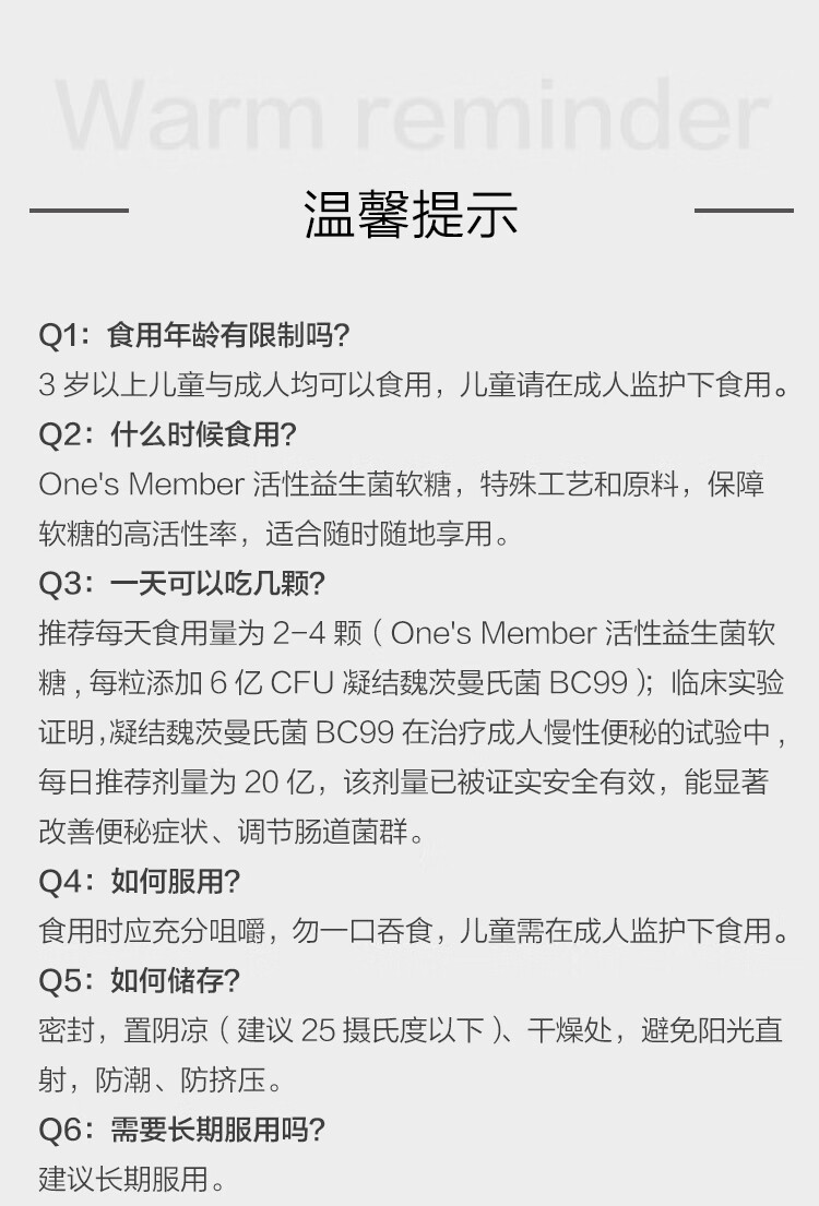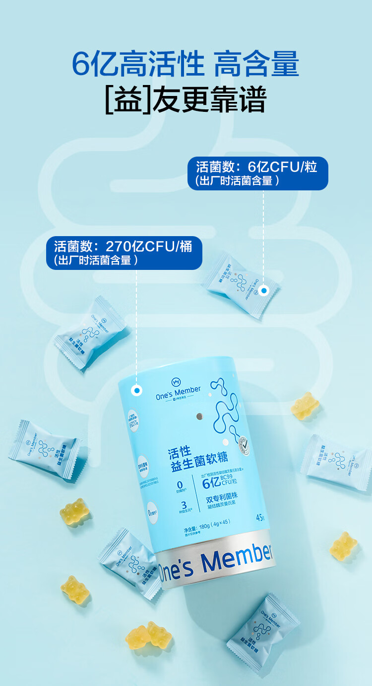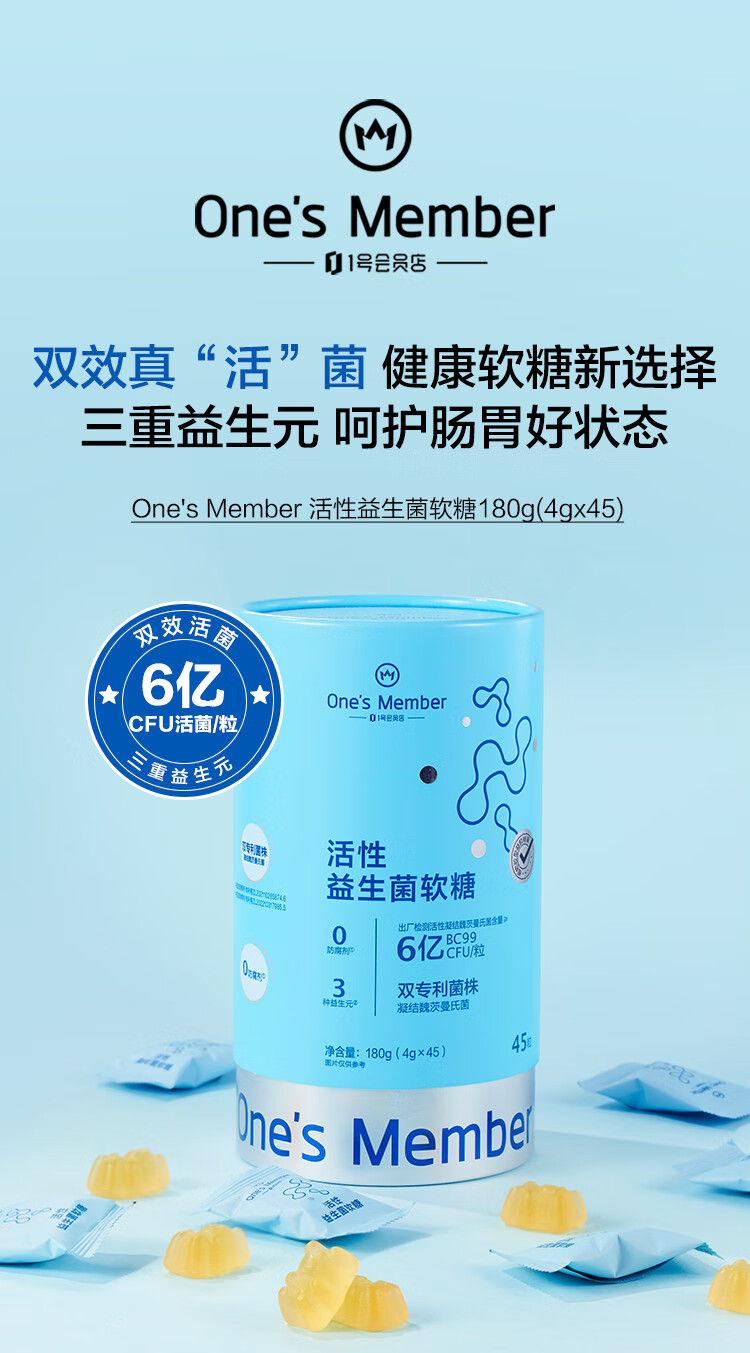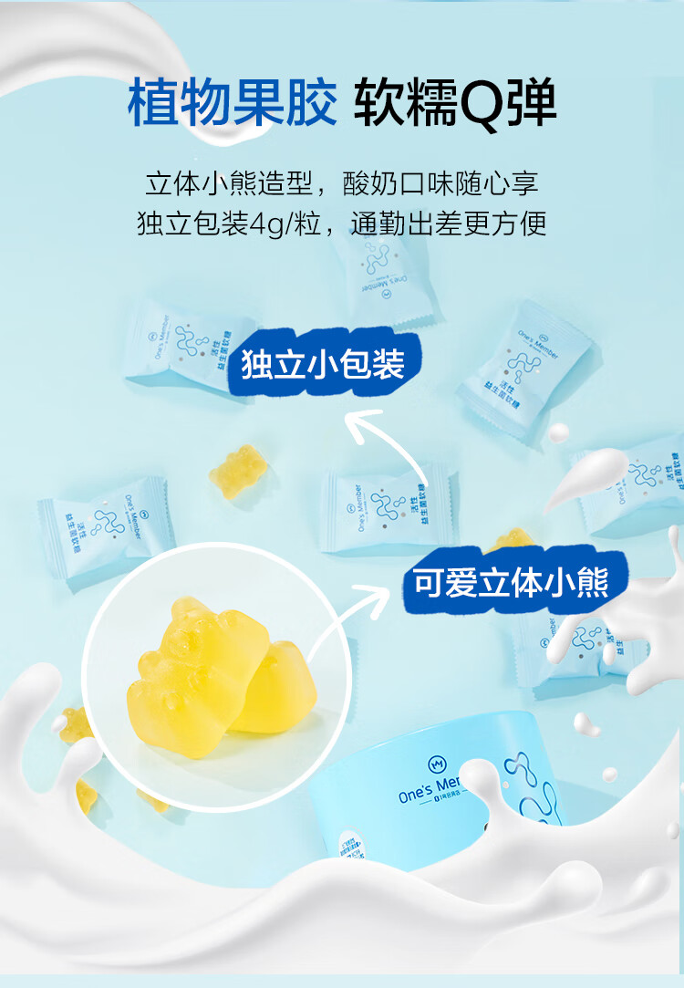 1号会员店(One's Member)活性益生菌呵护肠动力噗噗舒畅消化Q弹轻盈软糖 酸奶味 45粒