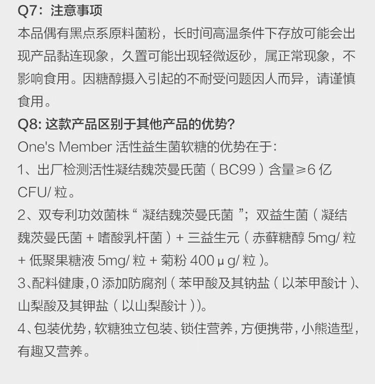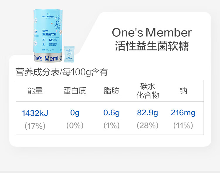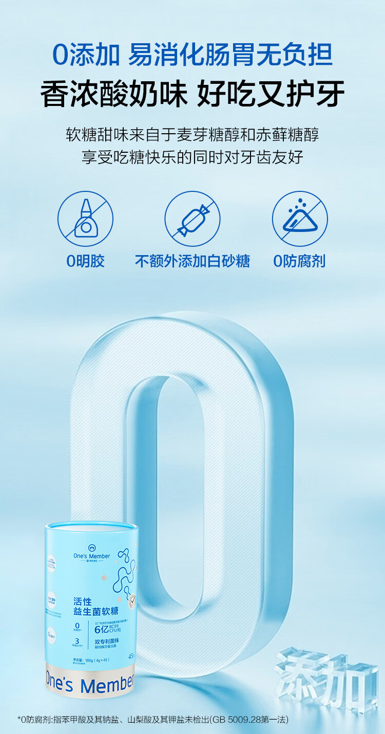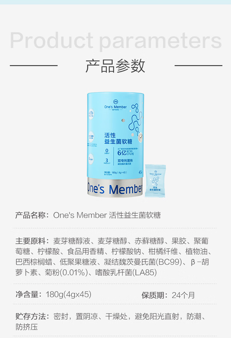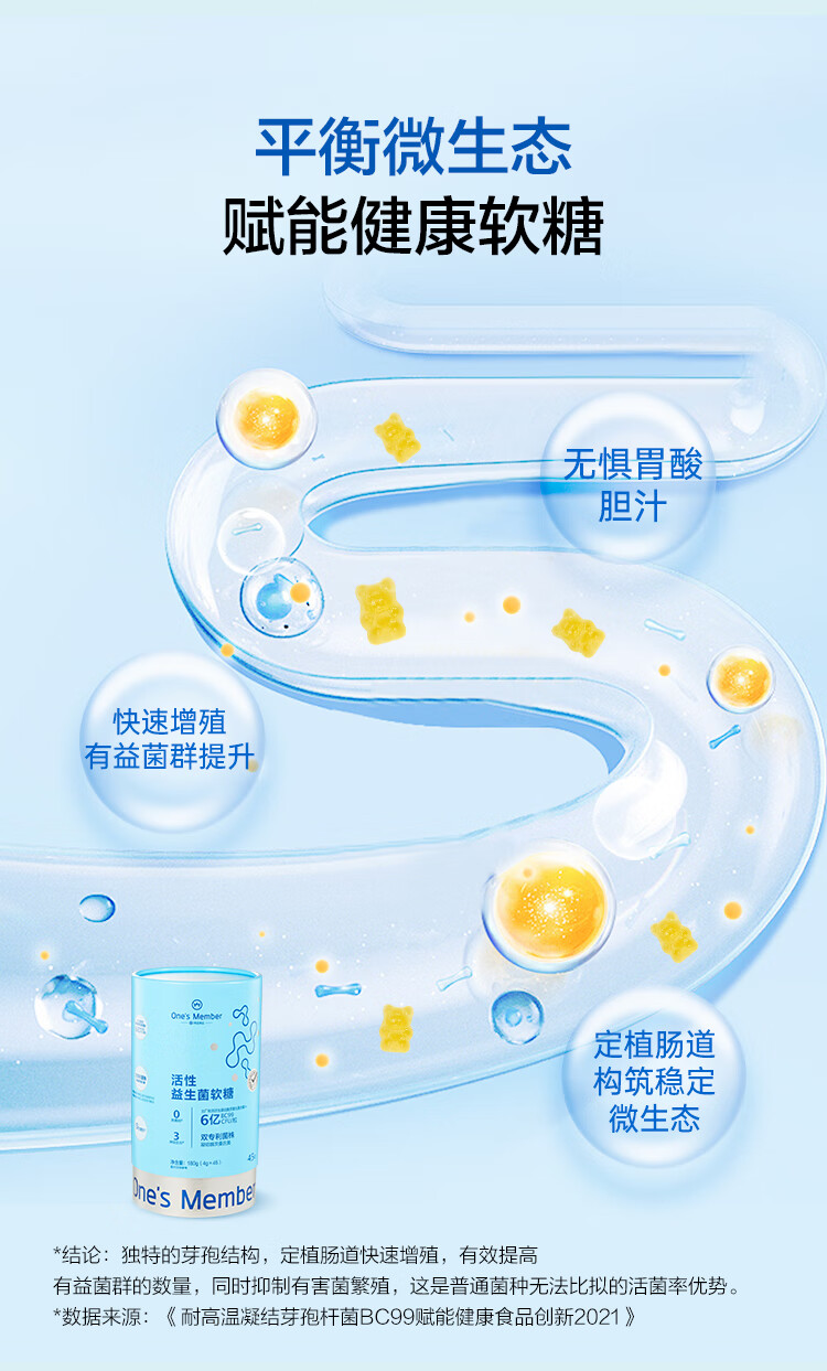 1号会员店(One's Member)活性益生菌呵护肠动力噗噗舒畅消化Q弹轻盈软糖 酸奶味 45粒