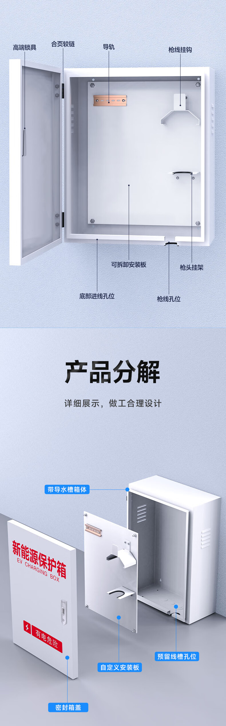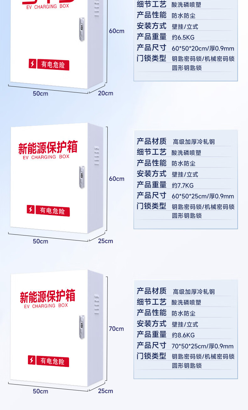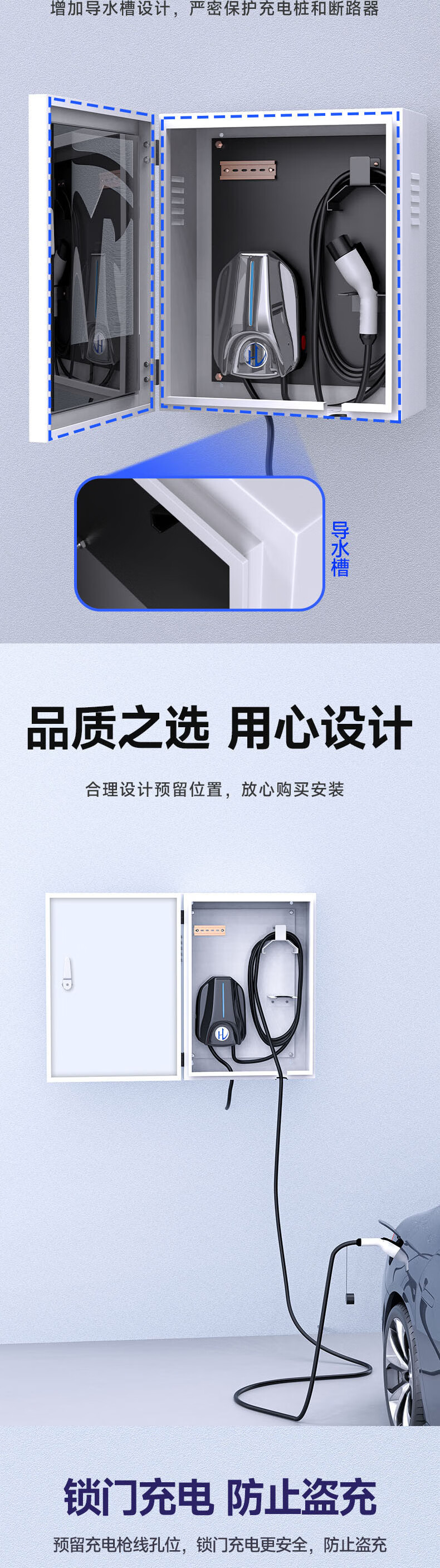 皇驰充电桩保护箱新能源汽车比亚迪小米埃安通用室外立柱式壁挂式家用防水配电箱钥匙锁芯60cm