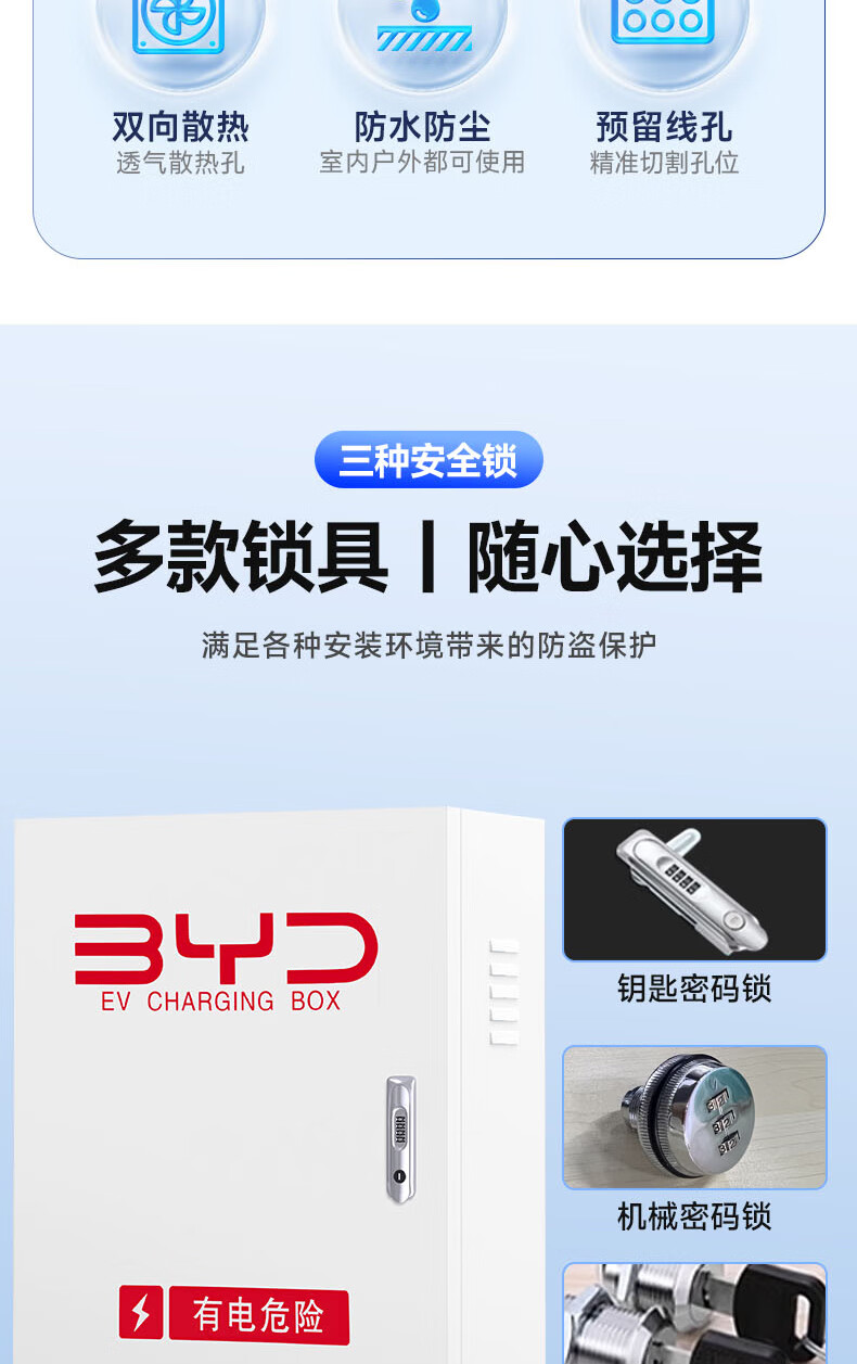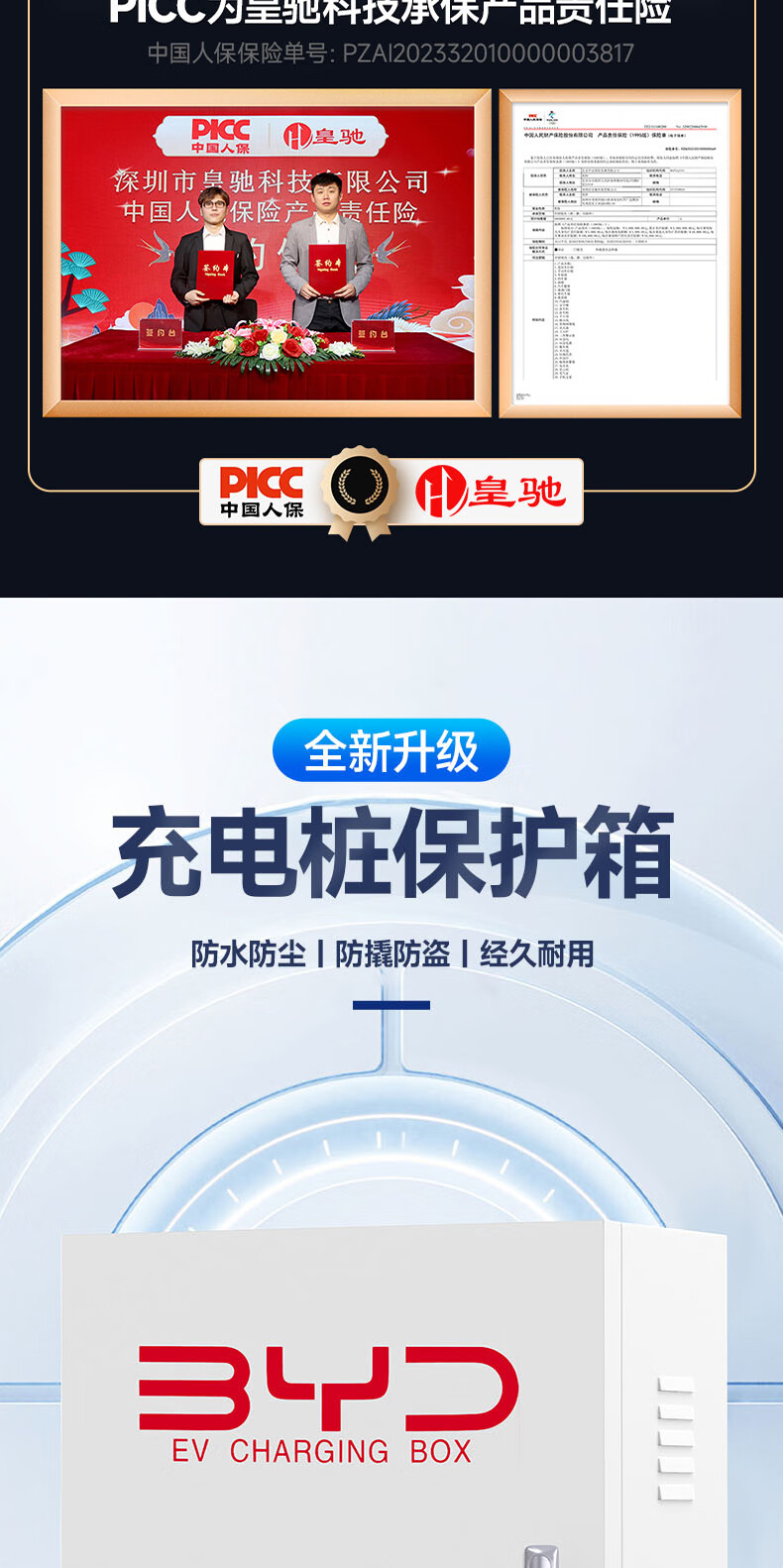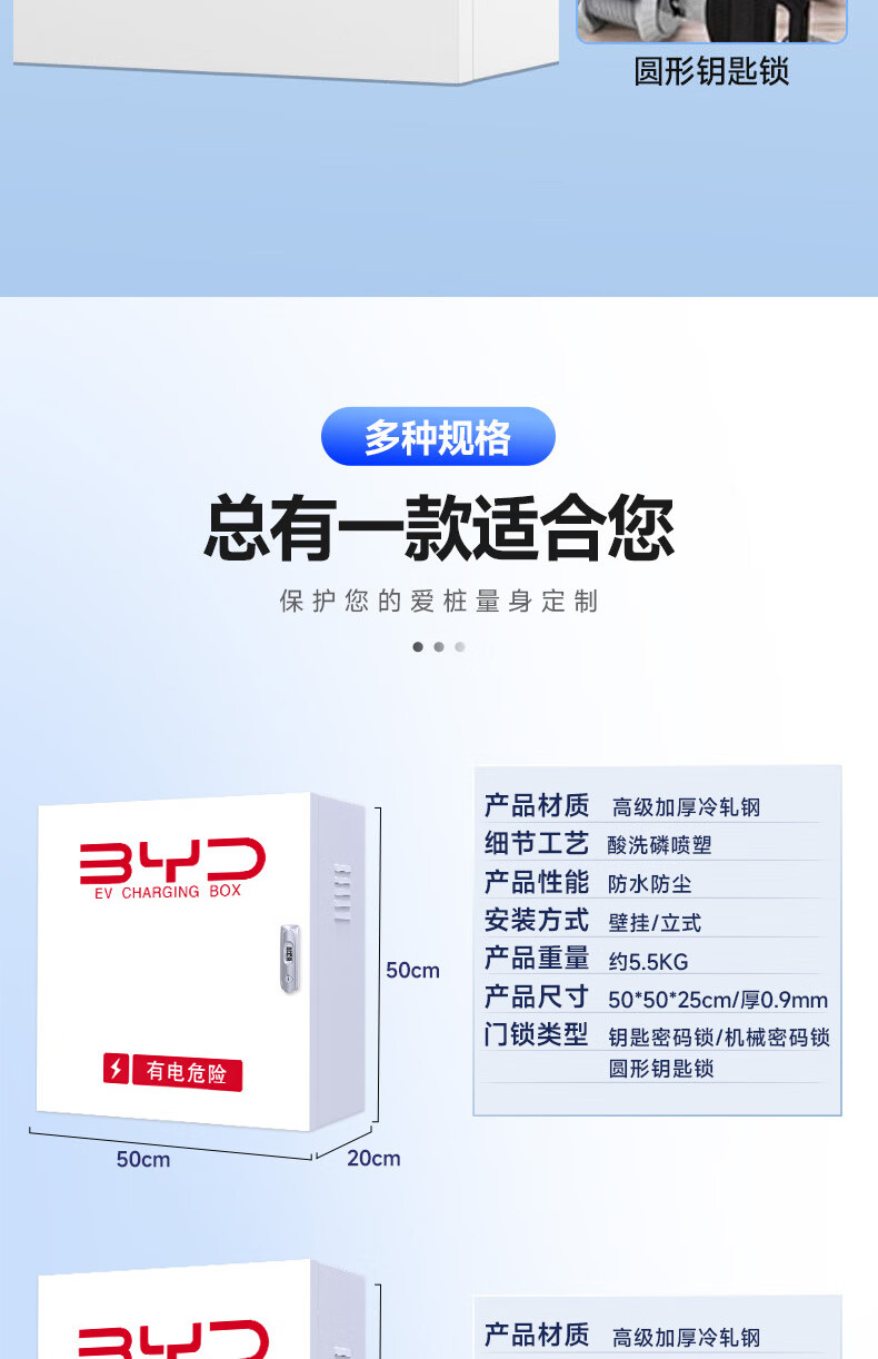 皇驰充电桩保护箱新能源汽车比亚迪小米埃安通用室外立柱式壁挂式家用防水配电箱钥匙锁芯60cm