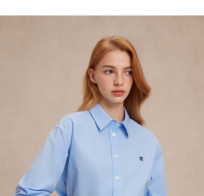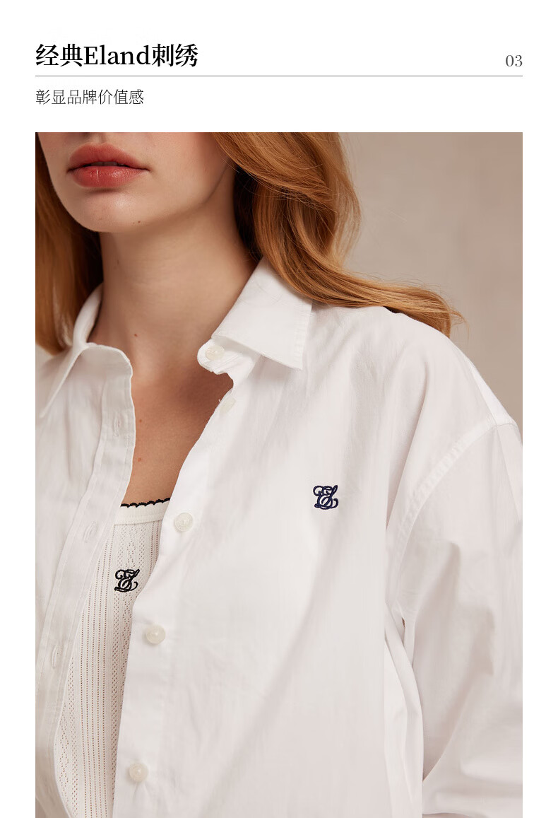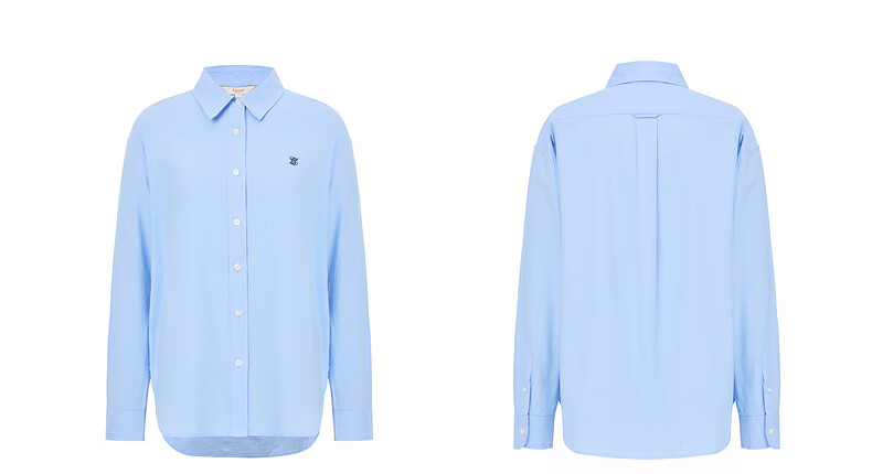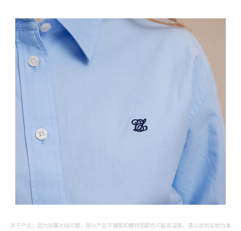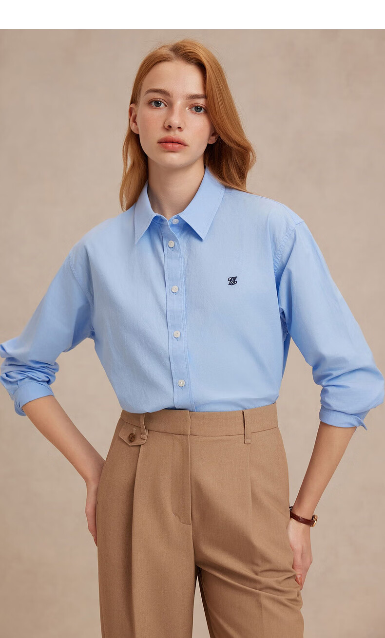 ELAND【100%棉】衣恋衬衫女单排扣宽松通勤长袖上衣2025夏季新款 蓝色(50)Blue S /160