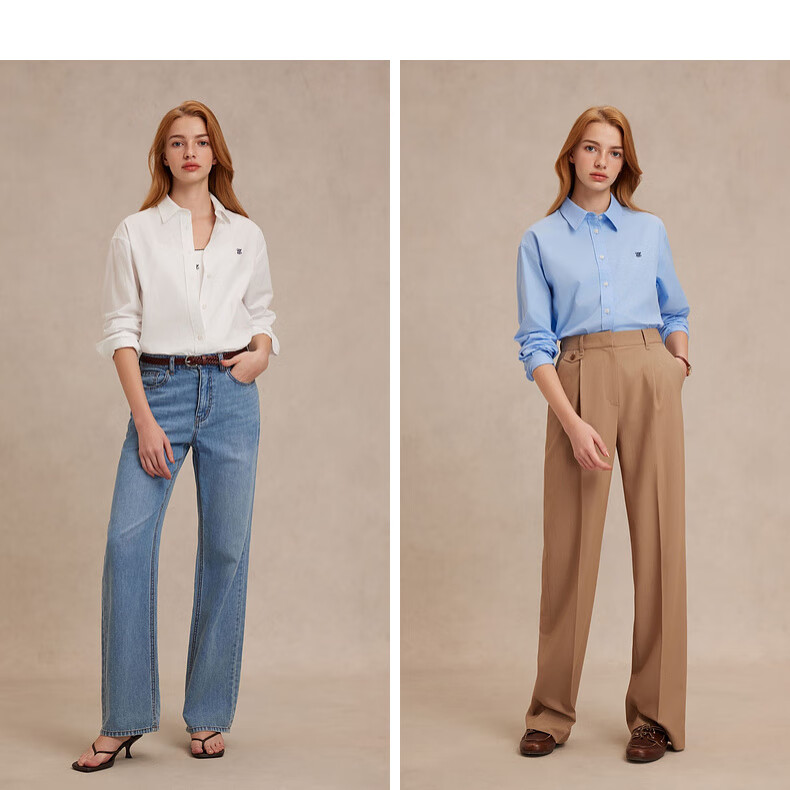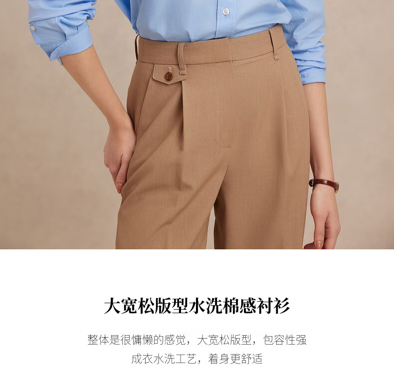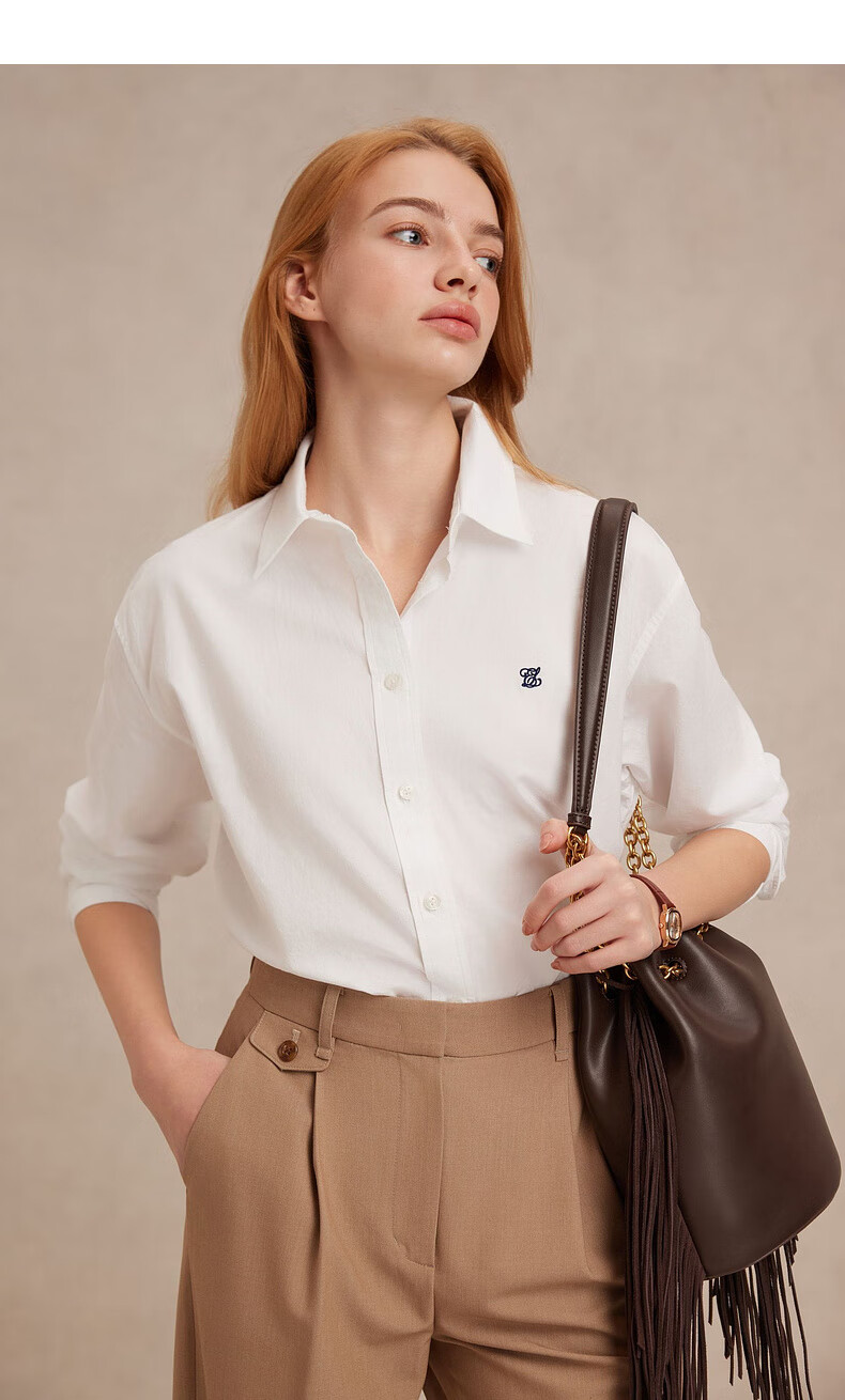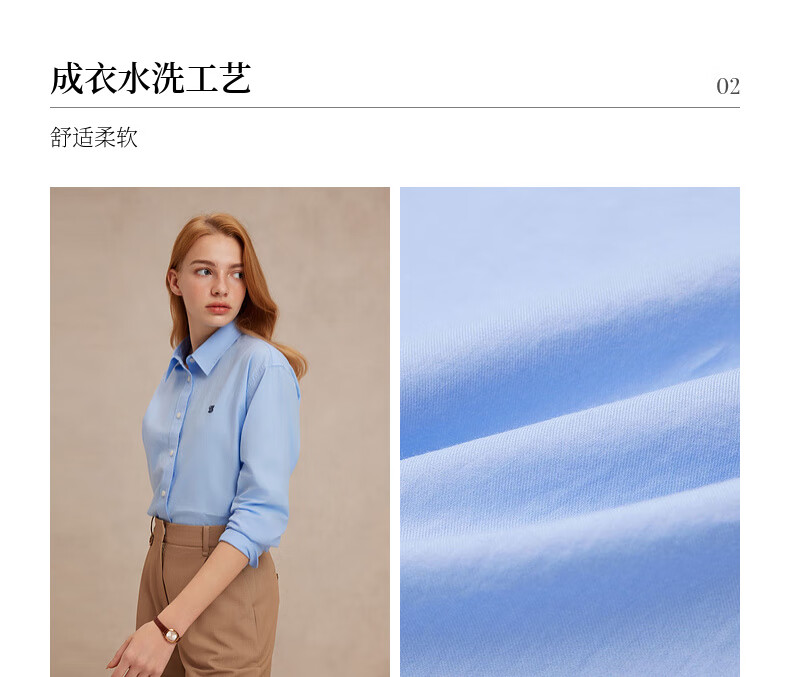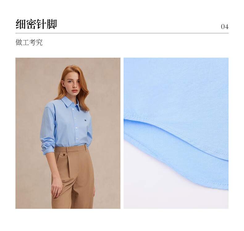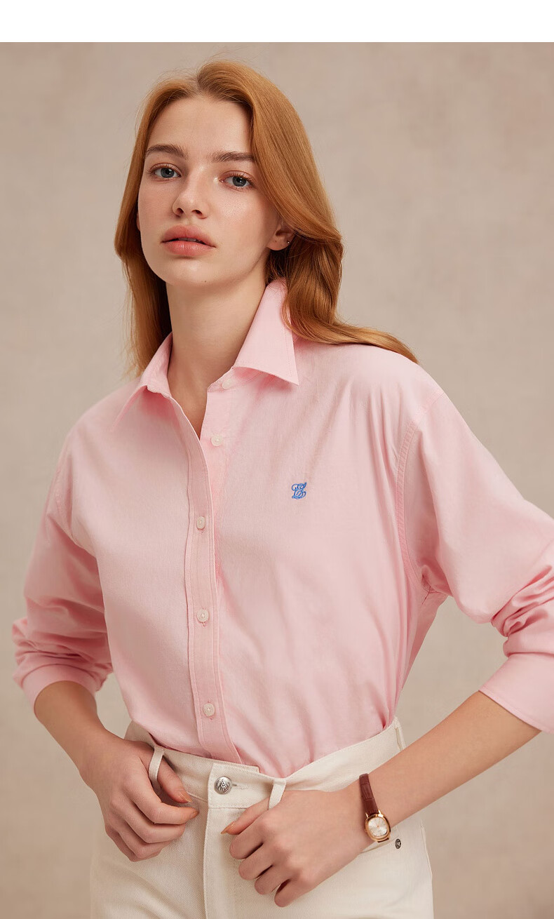 ELAND【100%棉】衣恋衬衫女单排扣宽松通勤长袖上衣2025夏季新款 蓝色(50)Blue S /160