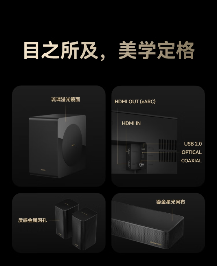 华为悦彰家庭影院 7.1.4 星穹声场 鲸鳍超重低音 回音壁家庭影院 投影仪电视游戏音箱 Mate TV好搭档