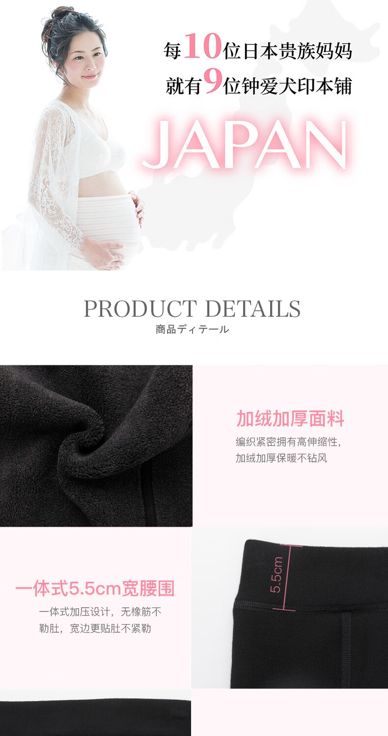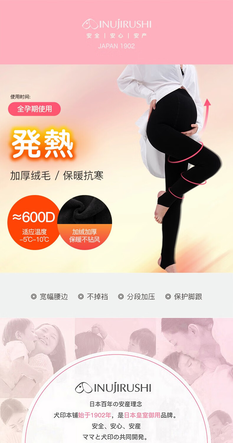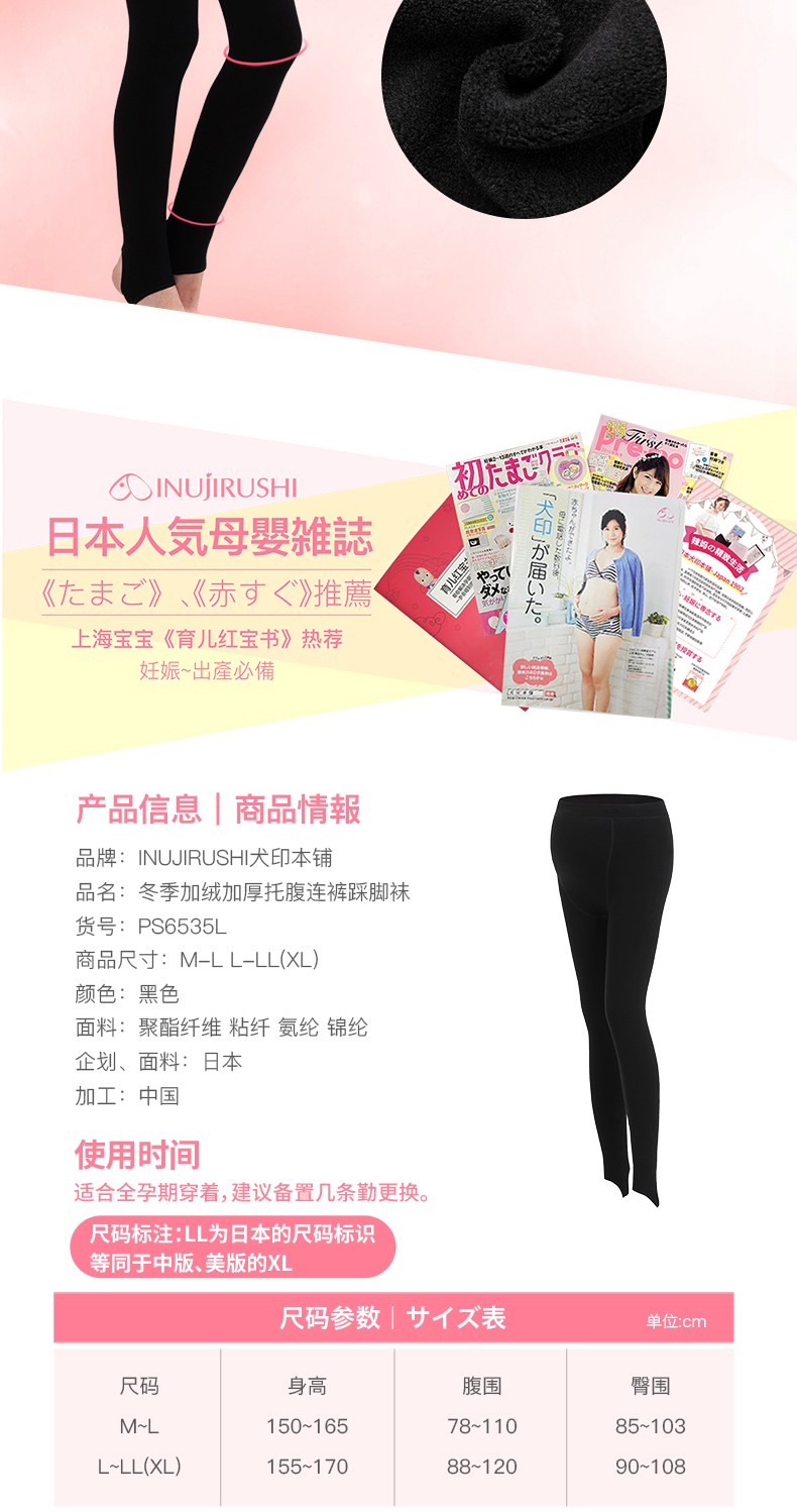犬印本铺(INUjIRUSHI)秋冬孕妇打底裤加绒加厚新款托腹连裤踩脚袜 黑色 (L-LL)