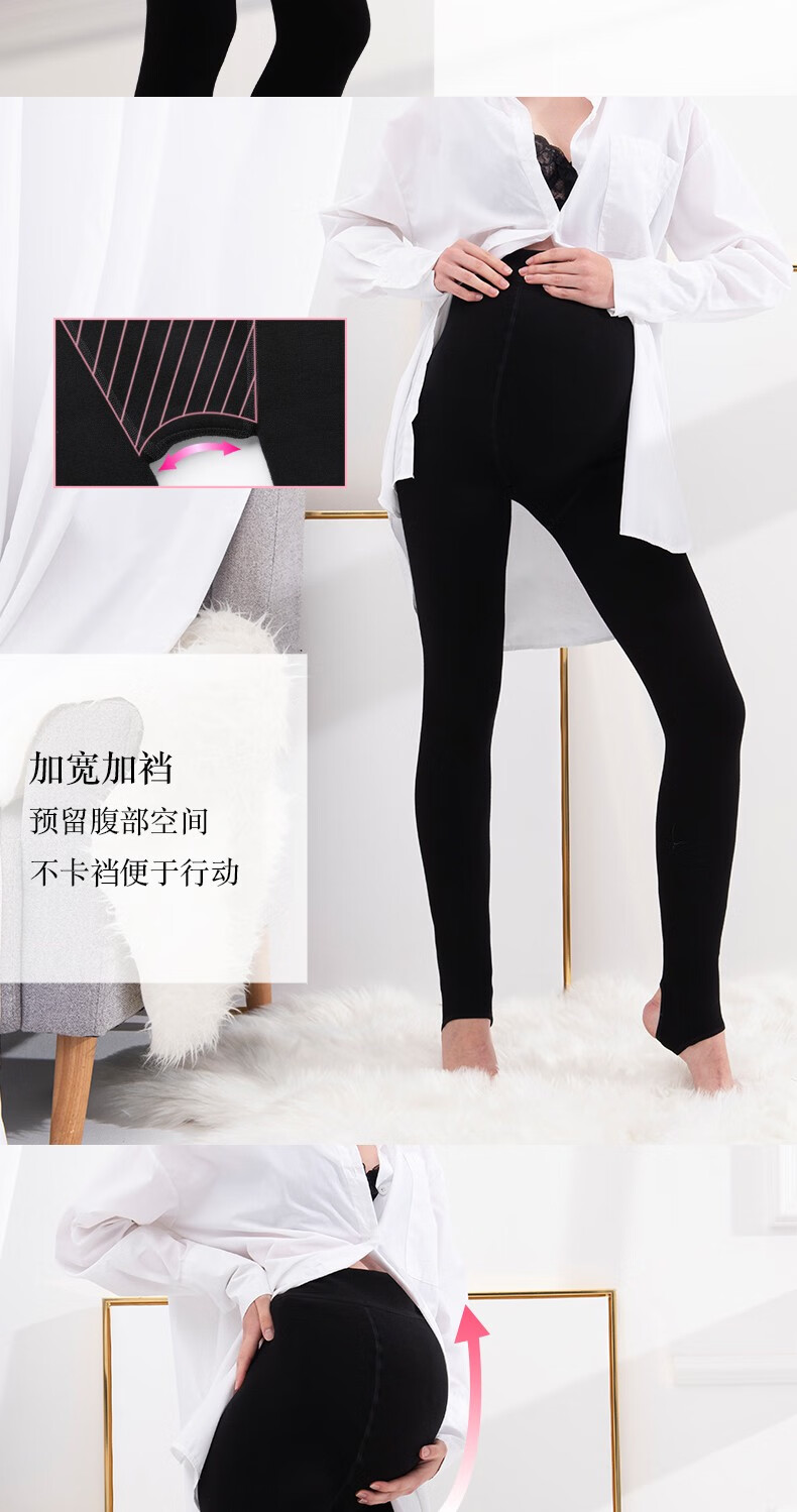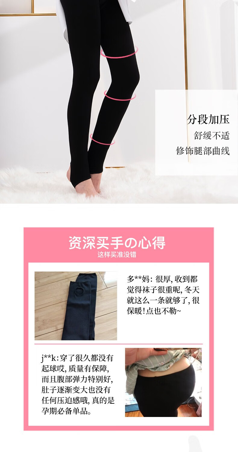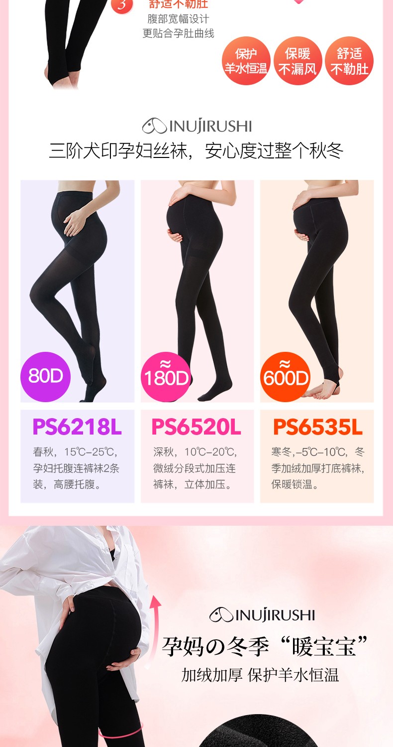 犬印本铺(INUjIRUSHI)秋冬孕妇打底裤加绒加厚新款托腹连裤踩脚袜 黑色 (L-LL)