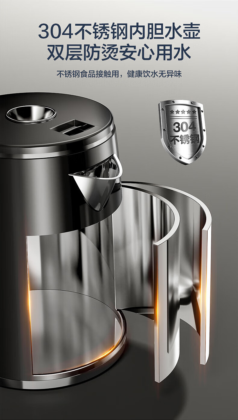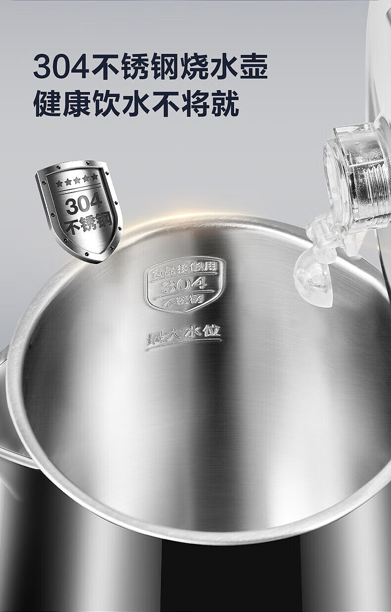 美的(Midea) 电热水壶 热水壶 家用大容量不锈钢烧水壶双层防烫 一体无缝内胆电水壶开水壶 1.5L 【304不锈钢恒温保温一体】-最新款
