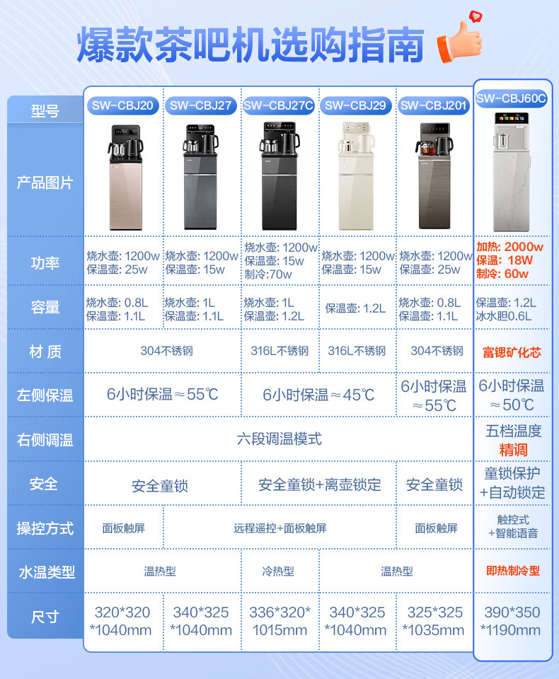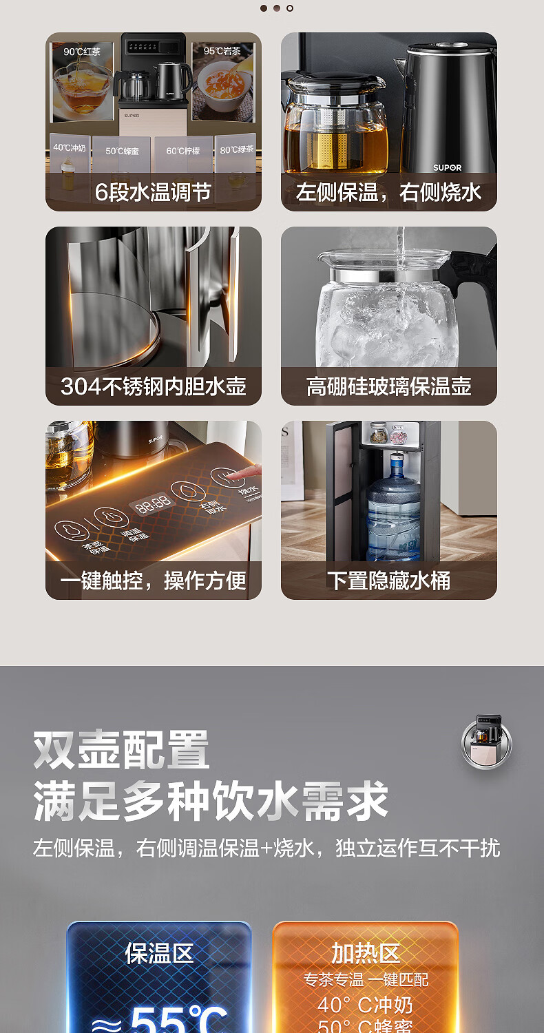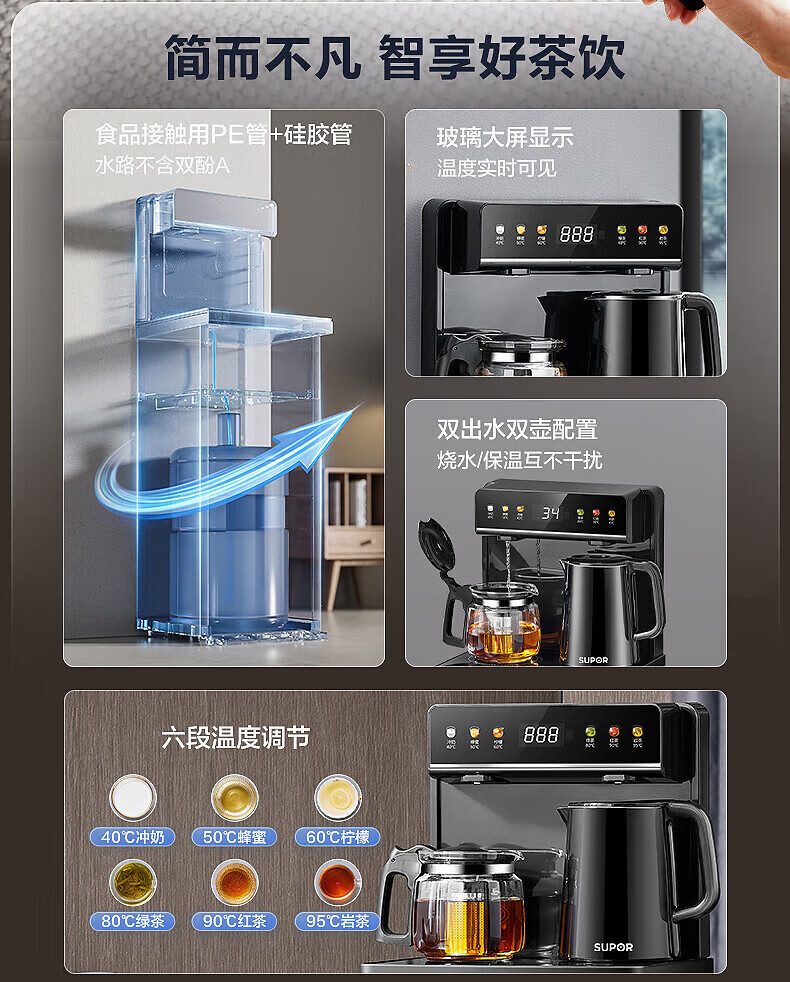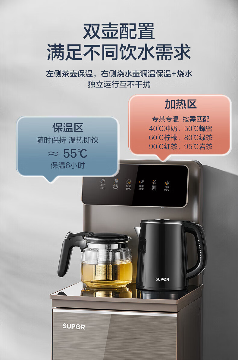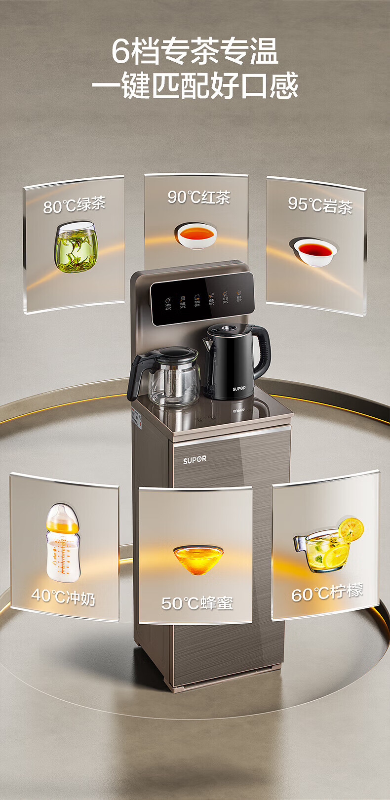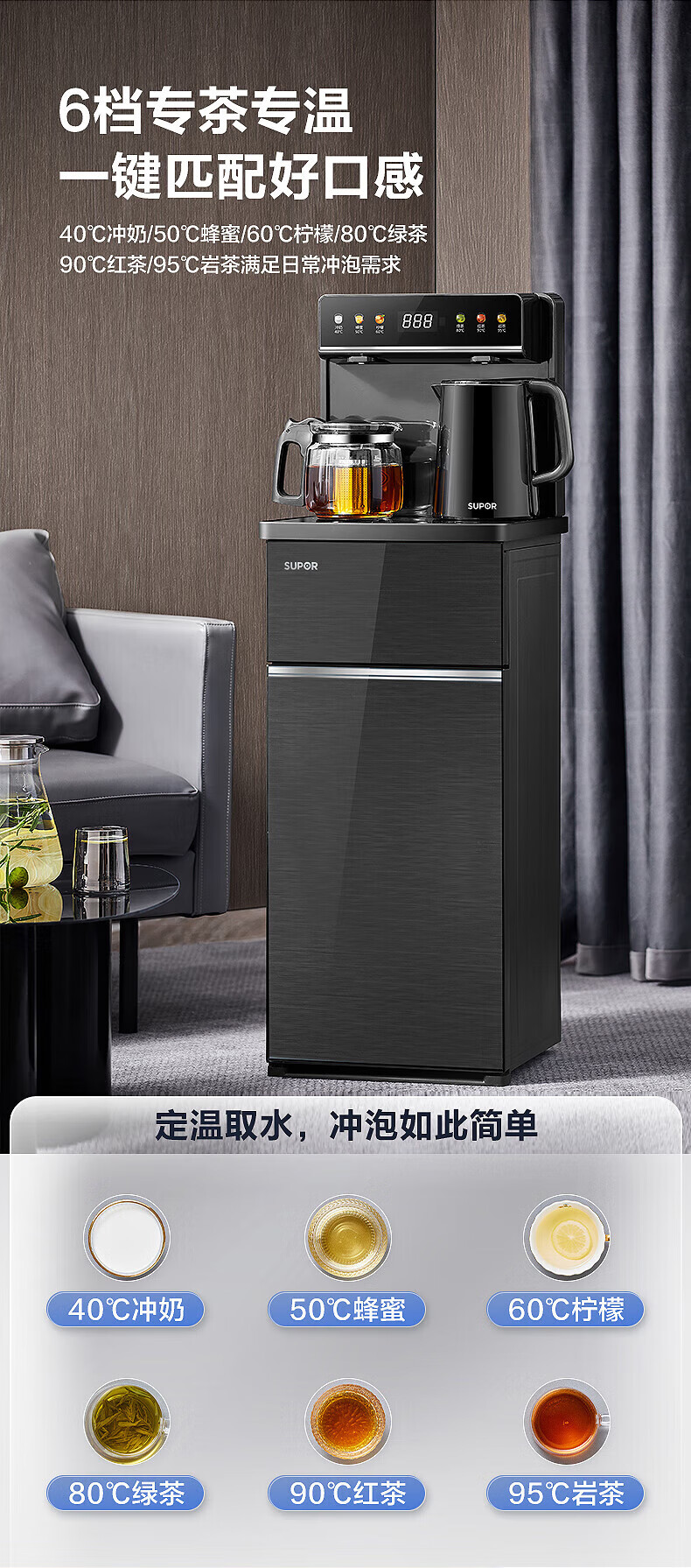 苏泊尔(SUPOR)茶吧机 家用高端客厅用饮水机下置式 新款智能茶吧柜饮水机一体 饮水烧水一体机立式水吧台 【人气爆款】6段水温调节丨智能触控丨 温热型