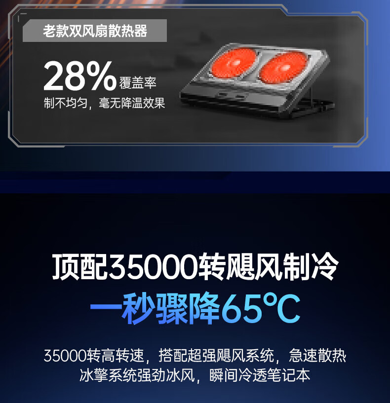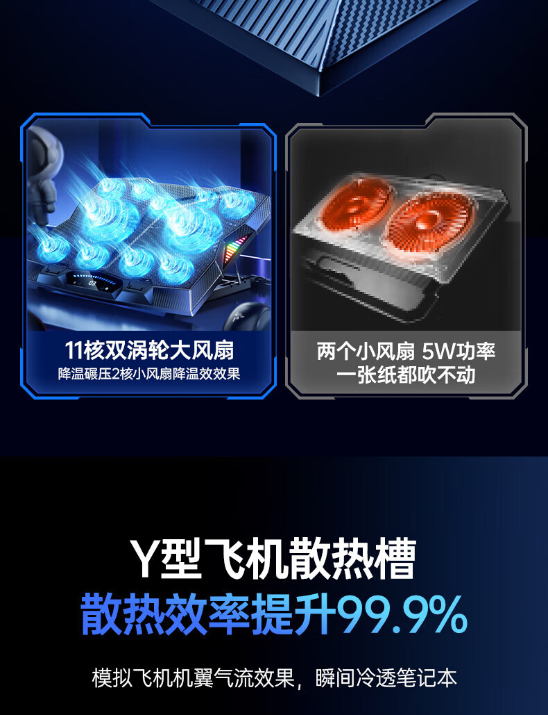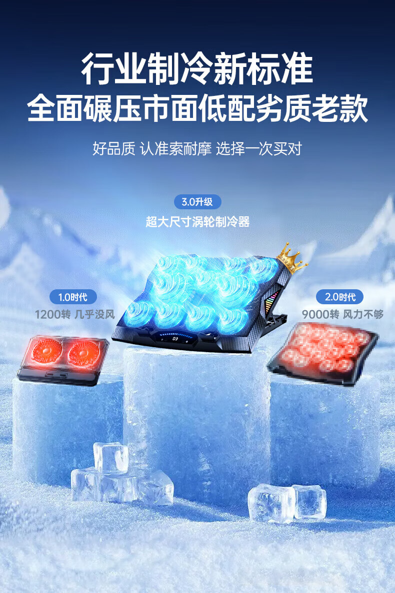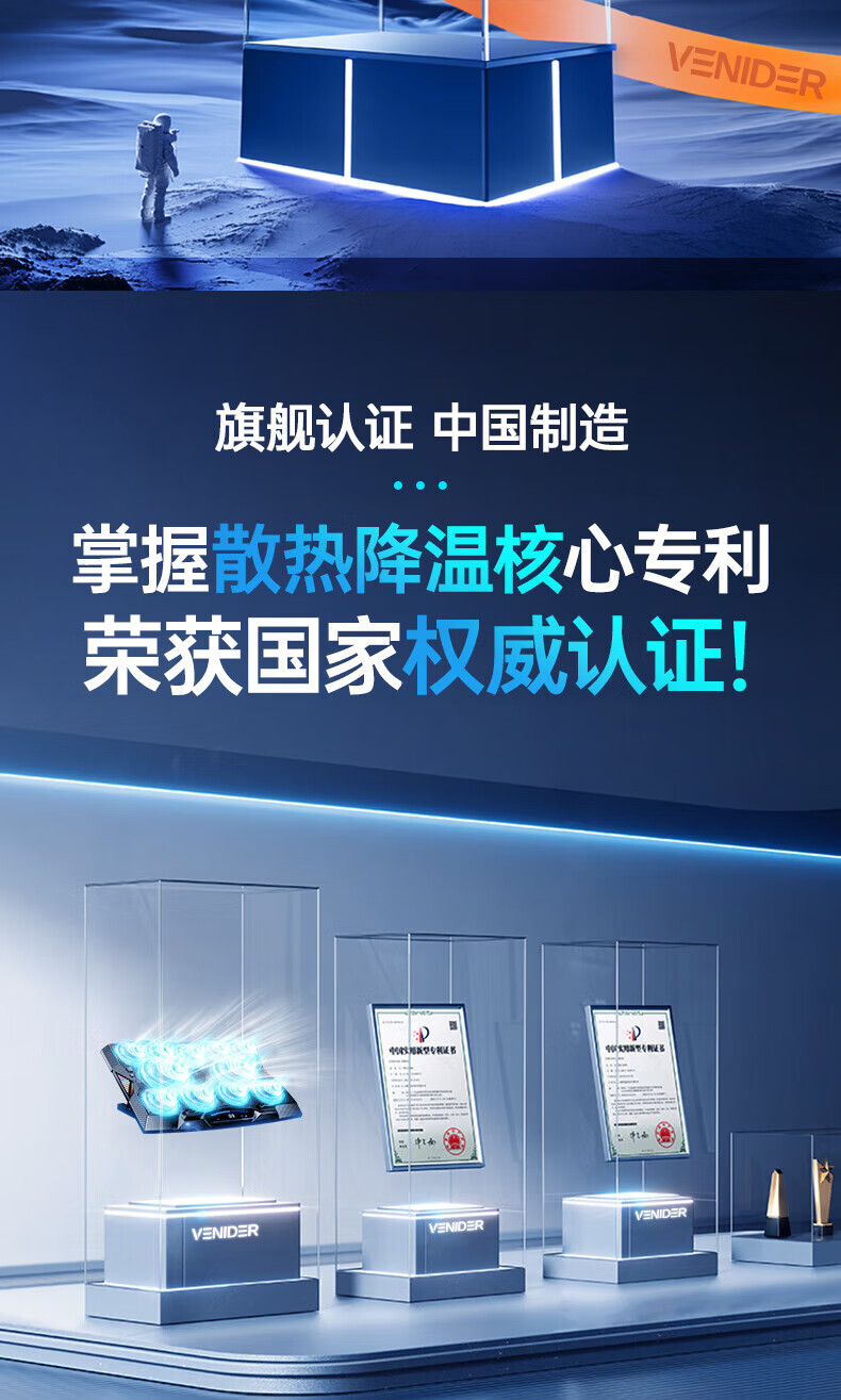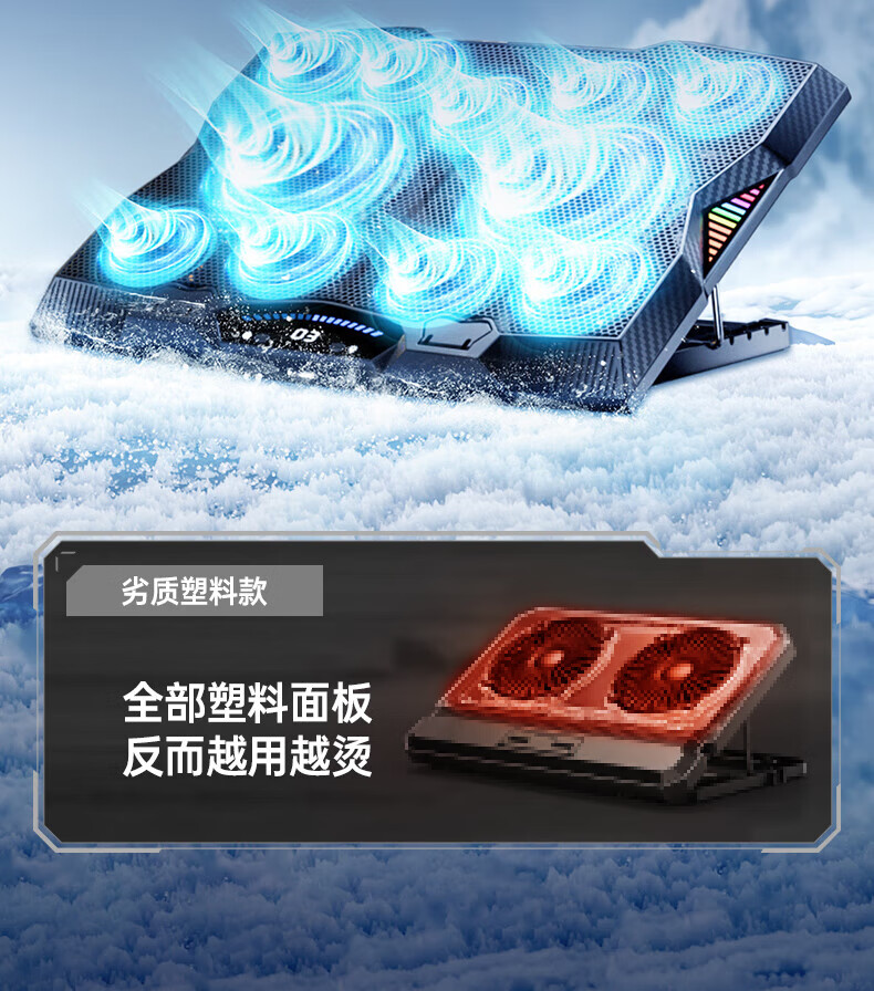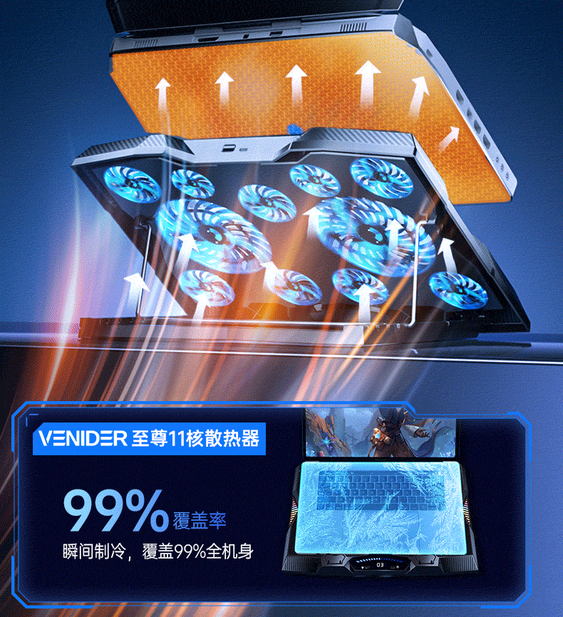 VENIDER【秒降65℃】笔记本散热器游戏本降温神器手提平板电脑桌支架风压式水冷风扇适用联想外星人拯救者