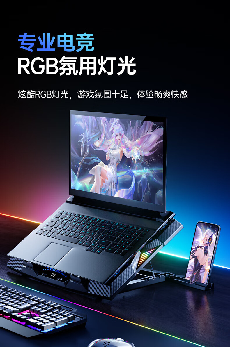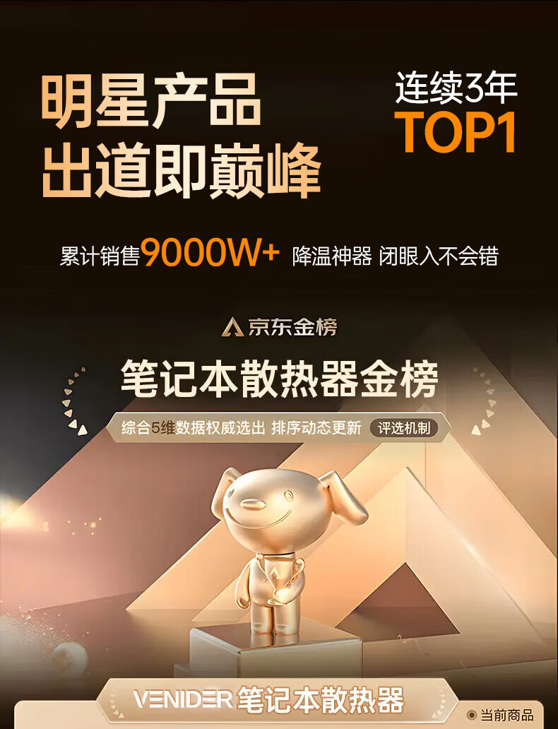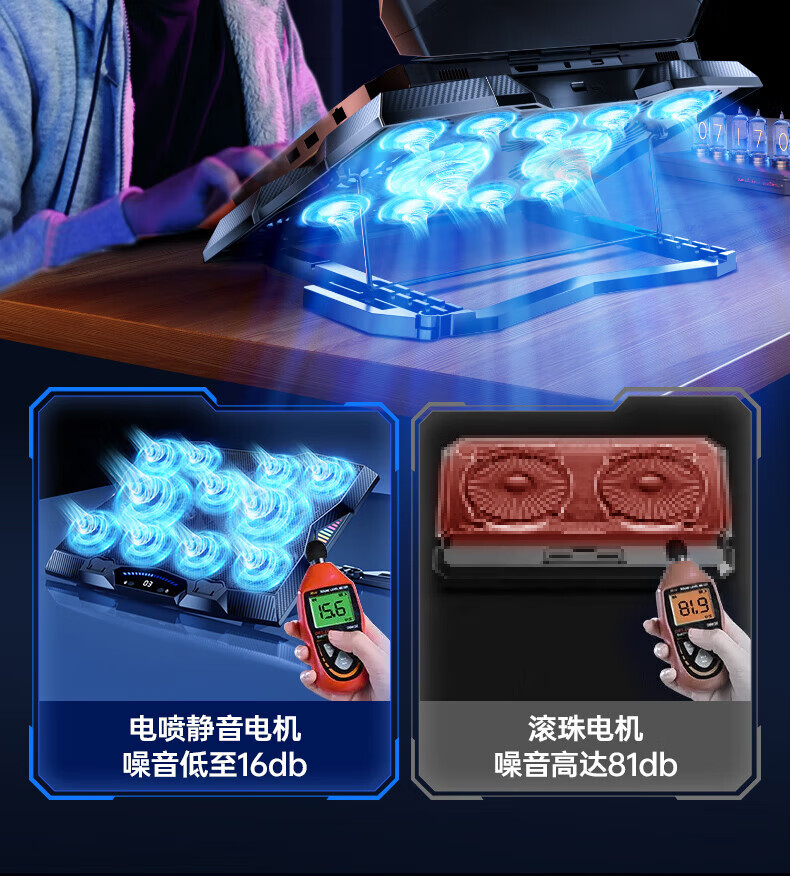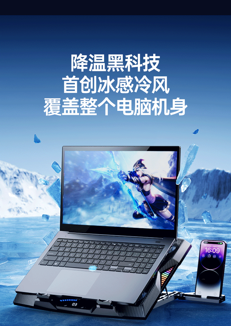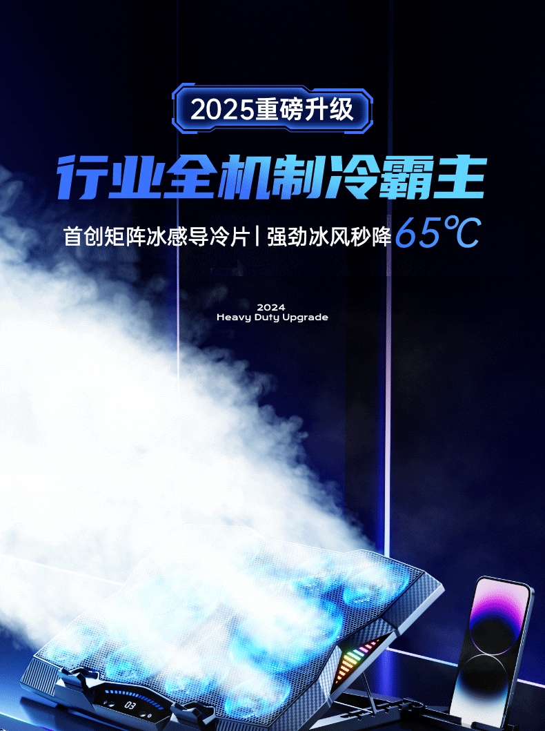 VENIDER【秒降65℃】笔记本散热器游戏本降温神器手提平板电脑桌支架风压式水冷风扇适用联想外星人拯救者