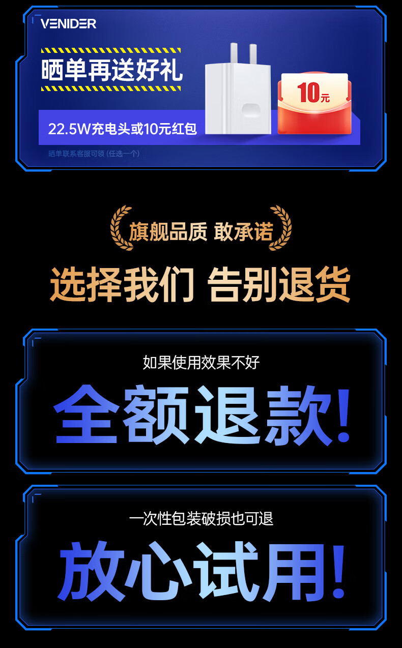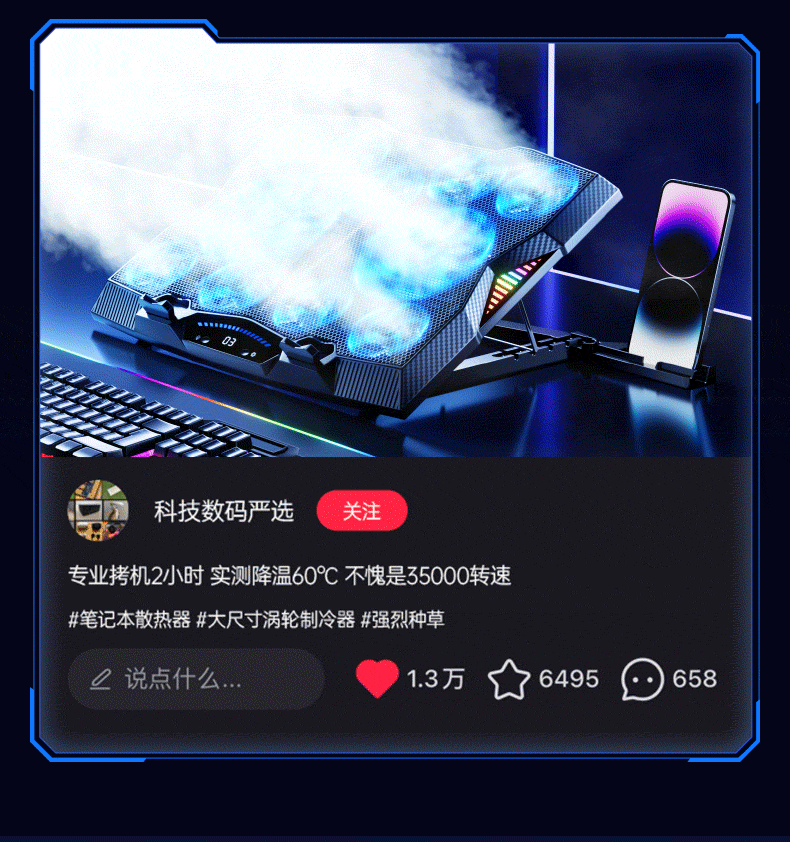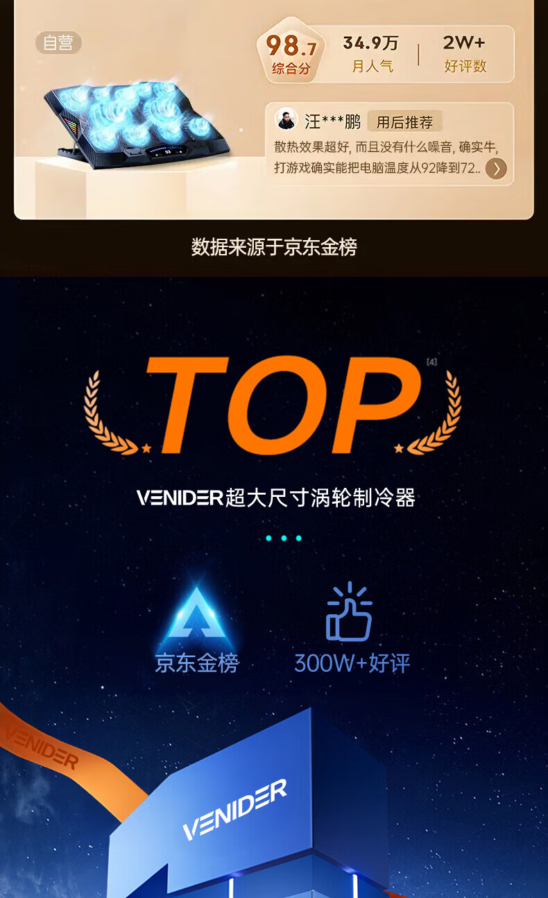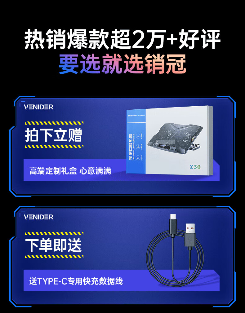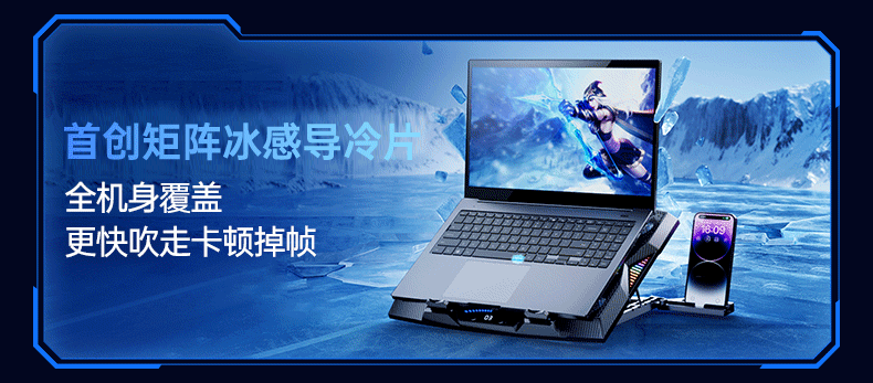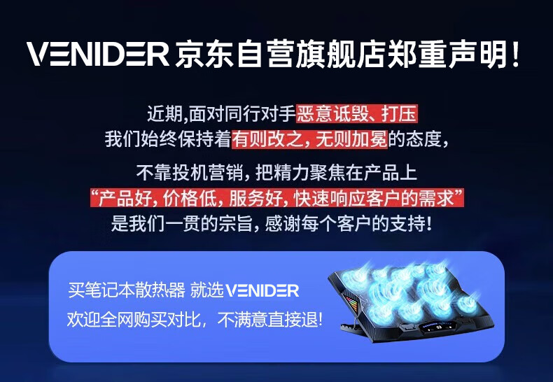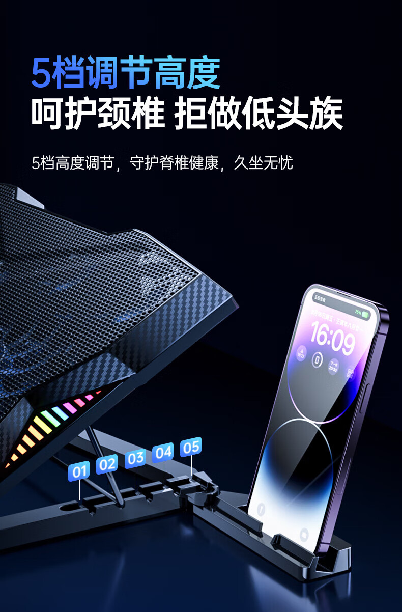 VENIDER【秒降65℃】笔记本散热器游戏本降温神器手提平板电脑桌支架风压式水冷风扇适用联想外星人拯救者