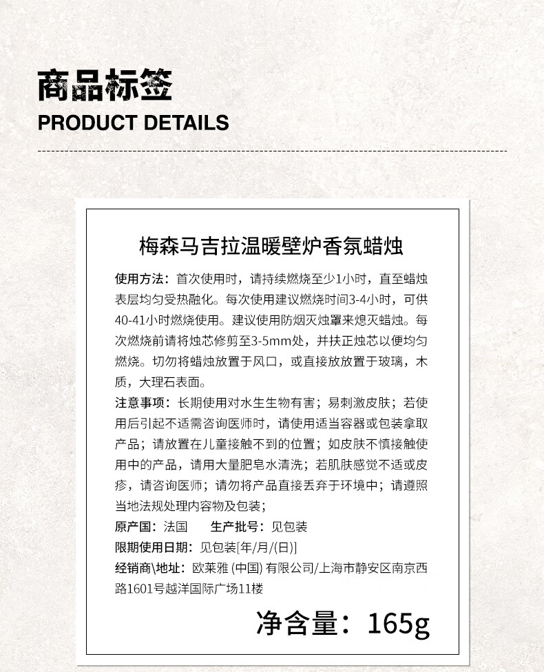 梅森马吉拉温暖壁炉香氛蜡烛70g 木质调香薰蜡烛家居送礼 生日礼物送女友