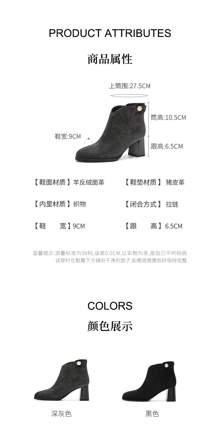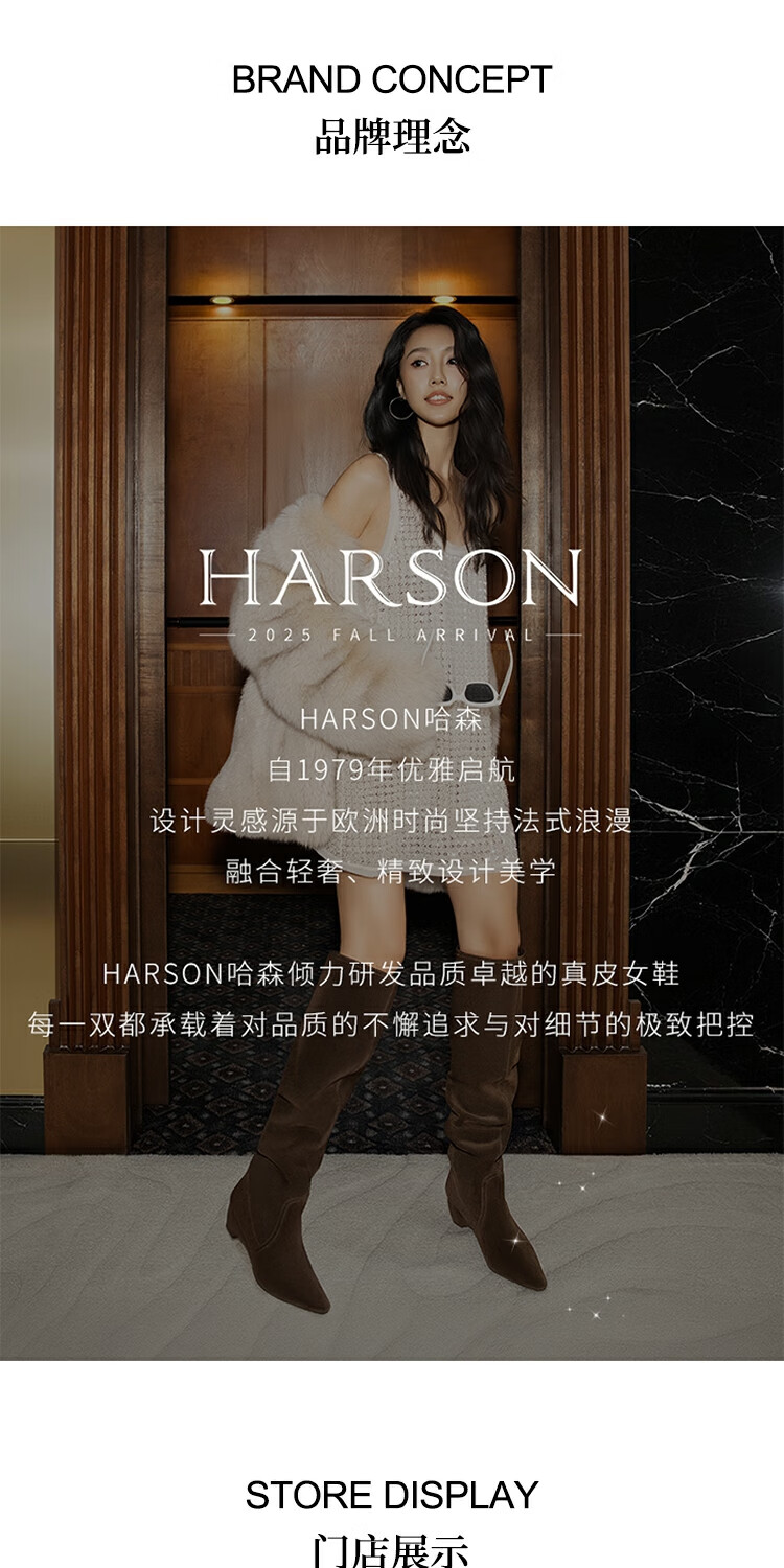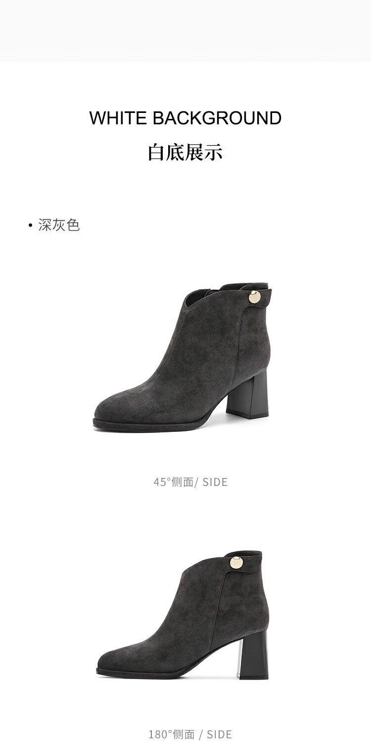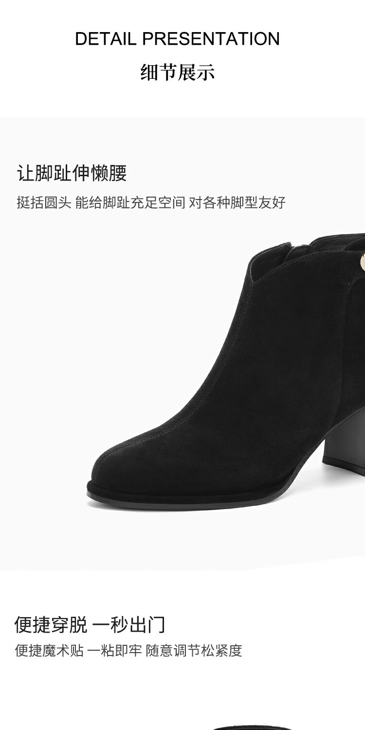 哈森(Harson)【小金豆】25冬新款休闲百搭高跟羊反绒时装靴HA257139 黑色 羊反绒面革 34